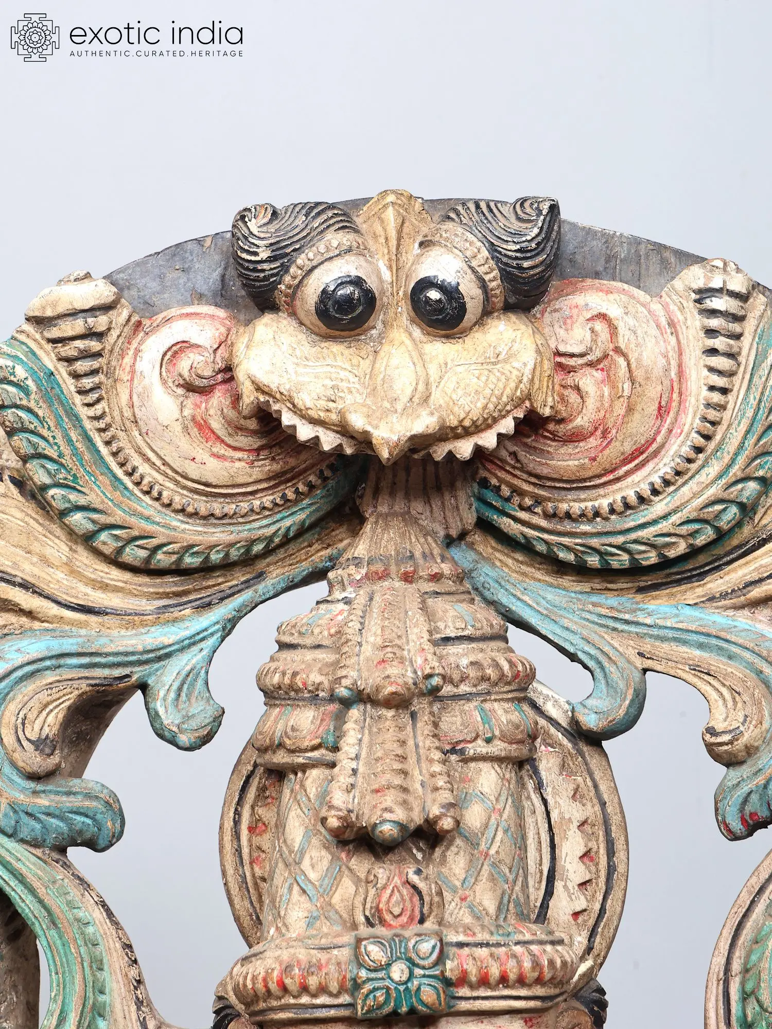 30" Large Devi Maa Saraswati Statue Seated on Kirtimukha Throne | Wood Carving