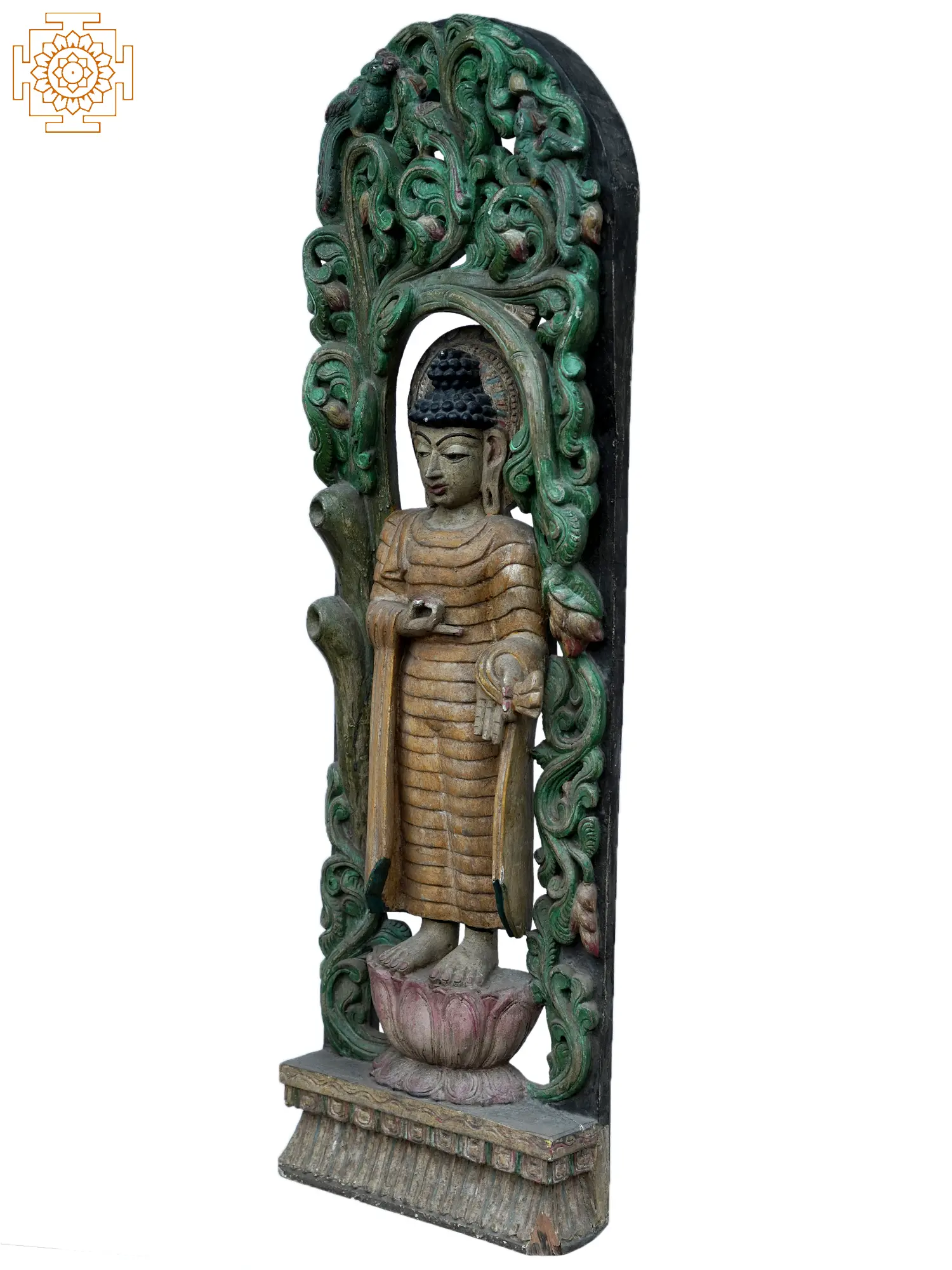6" Brass Bodhi Tree Buddha on Wooden Pedestal | Indian Handcrafted Idol