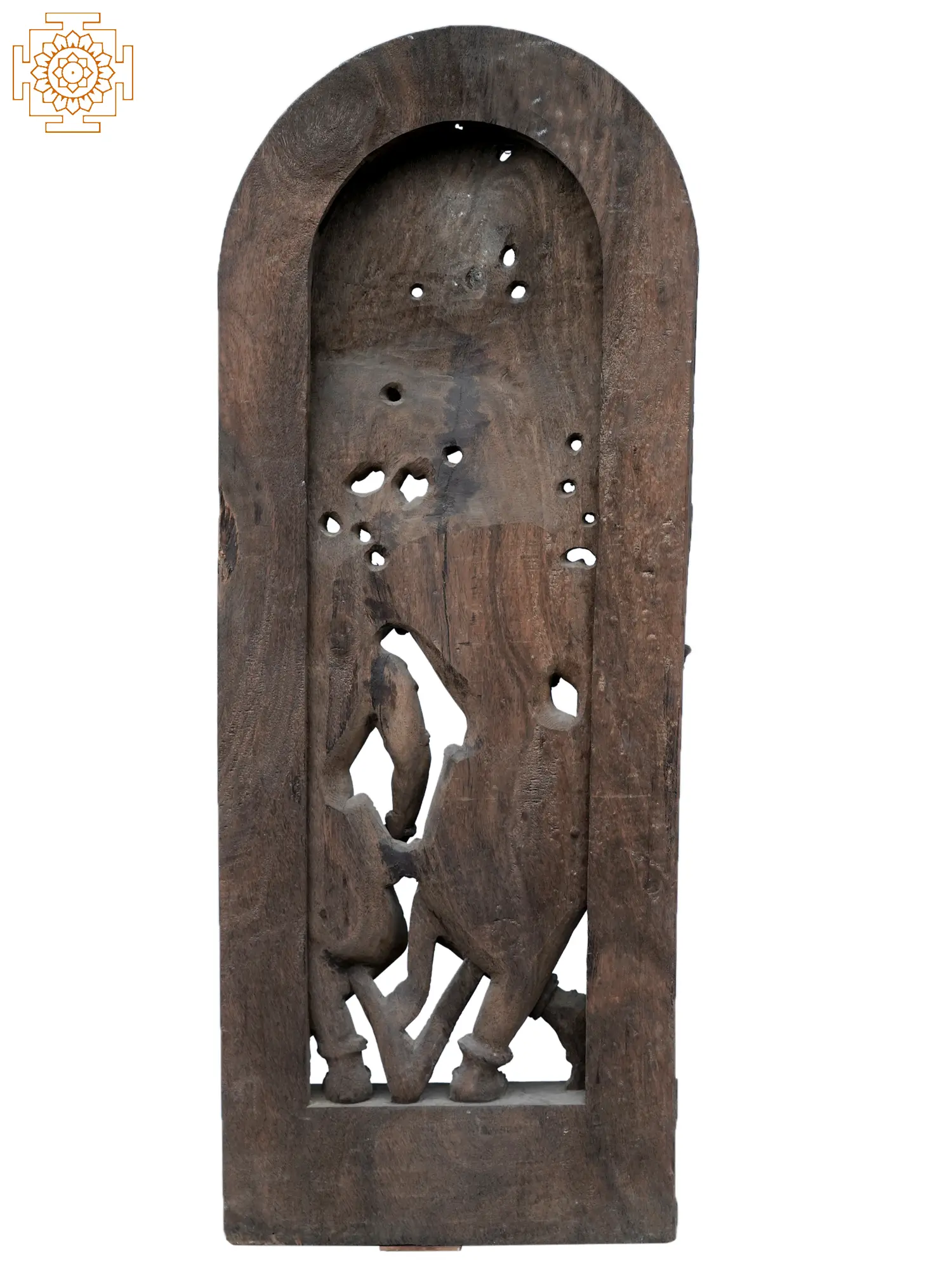 58" Large Venugopal Krishna | Wood Carved Colorful Wall Hanging Panel