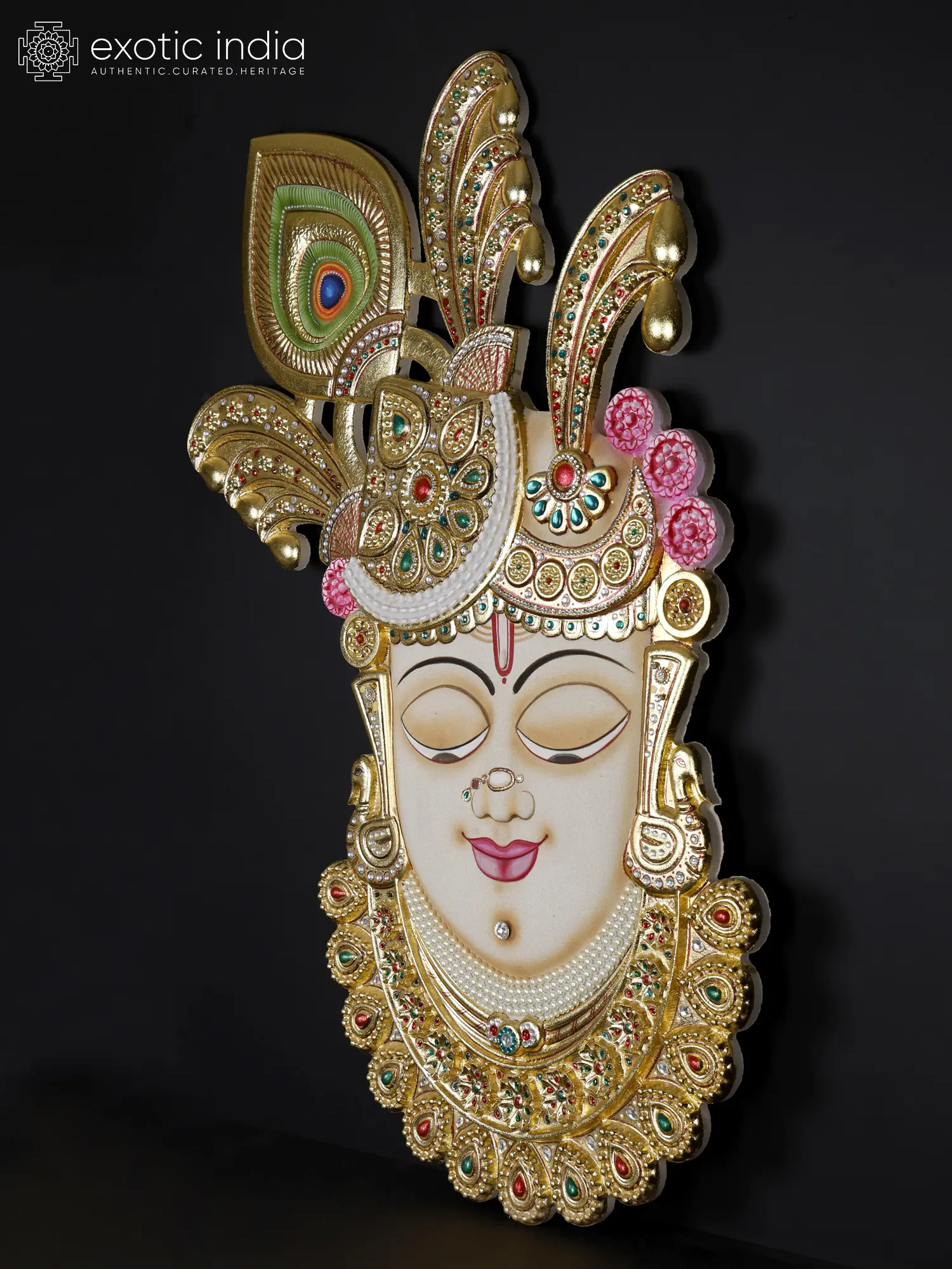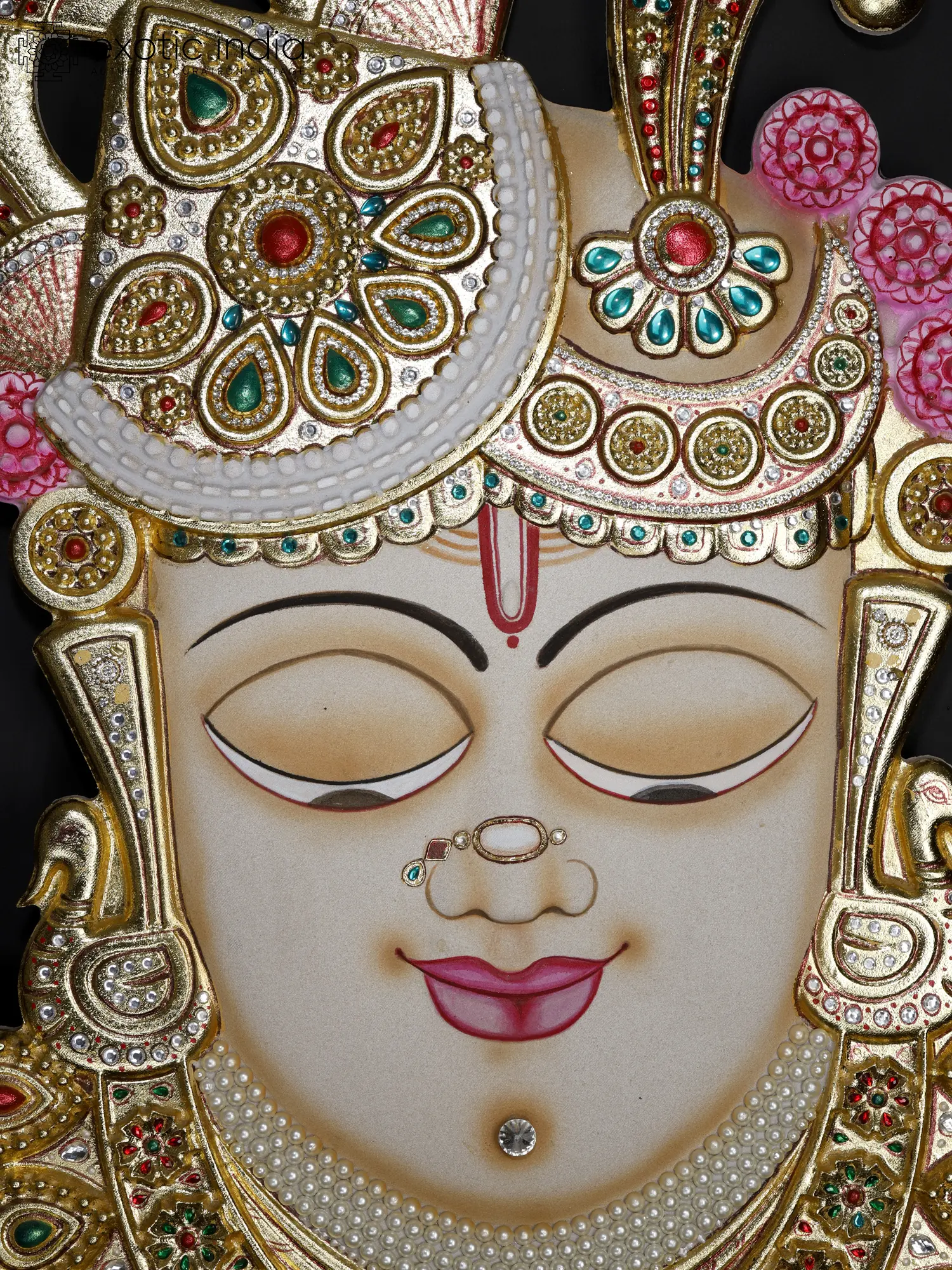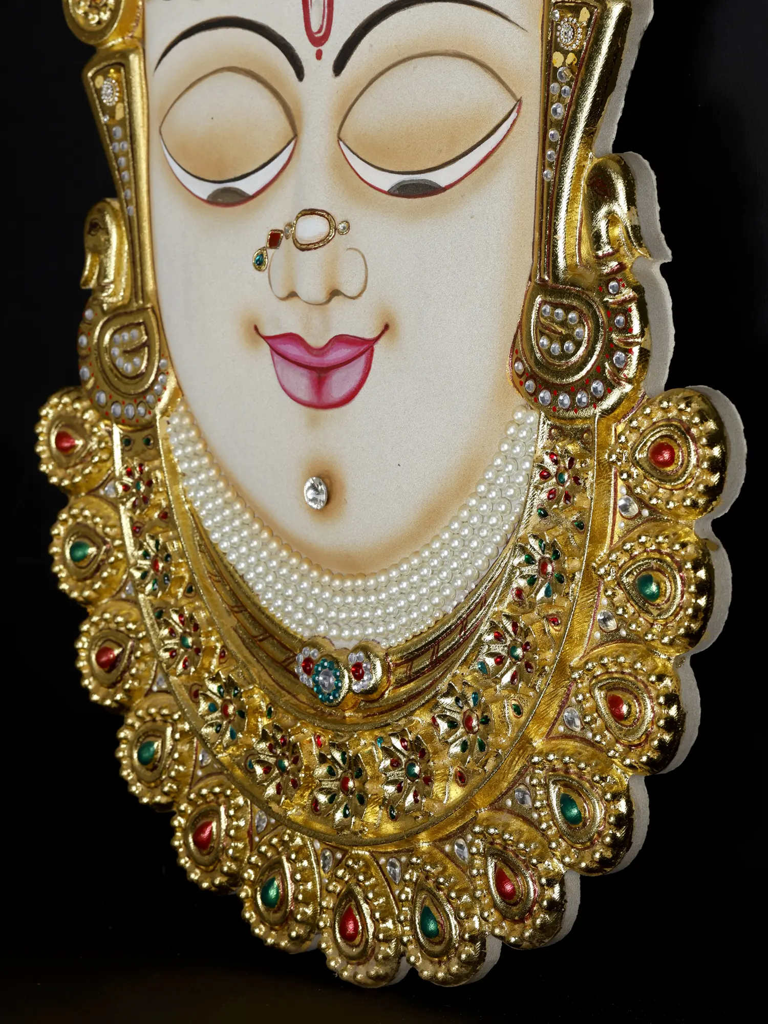 The fragrant beauty of Srinathji is elevated by the intricate details of ornamentation, with each jewel and pearl highlighted artistically.