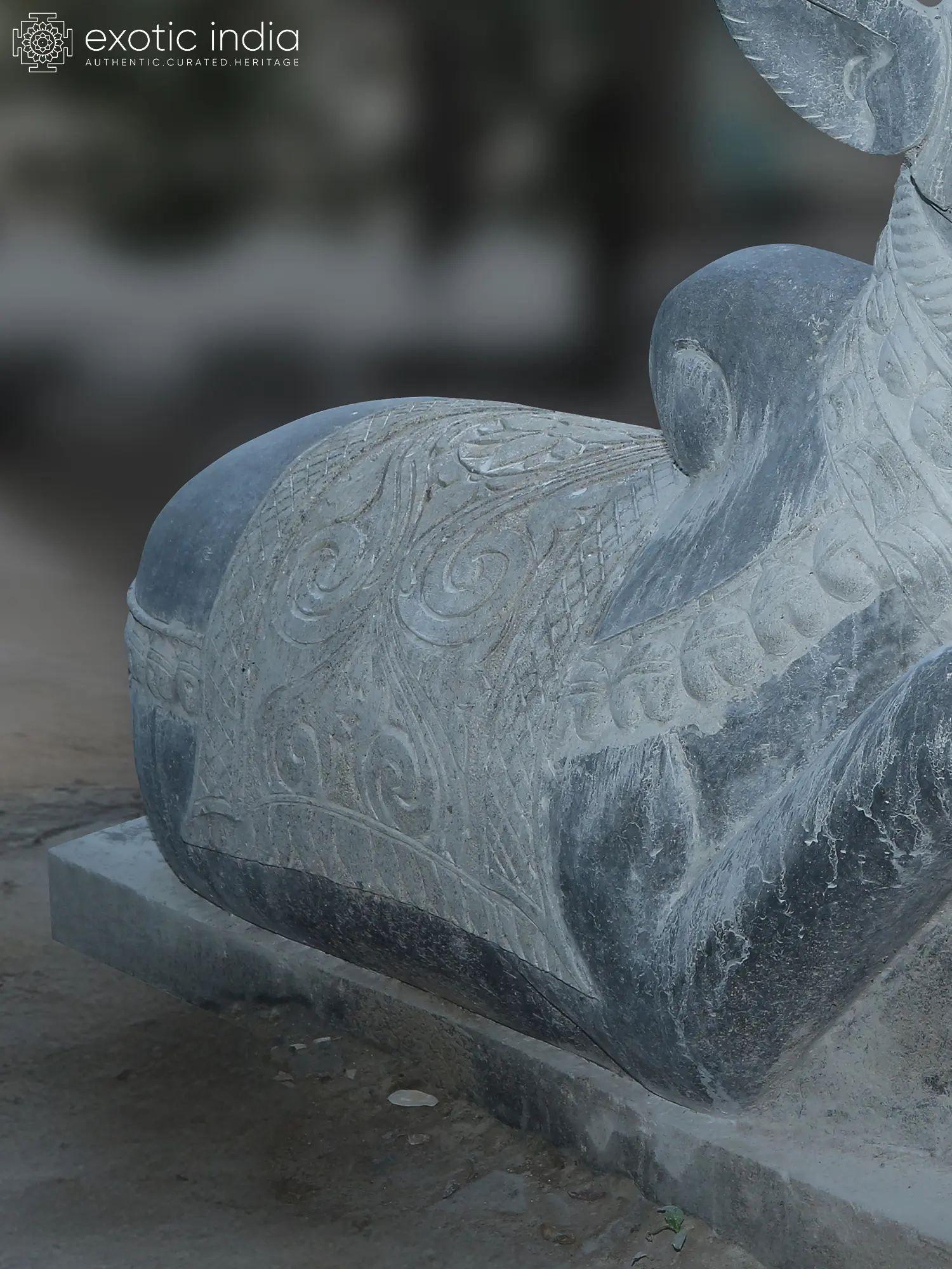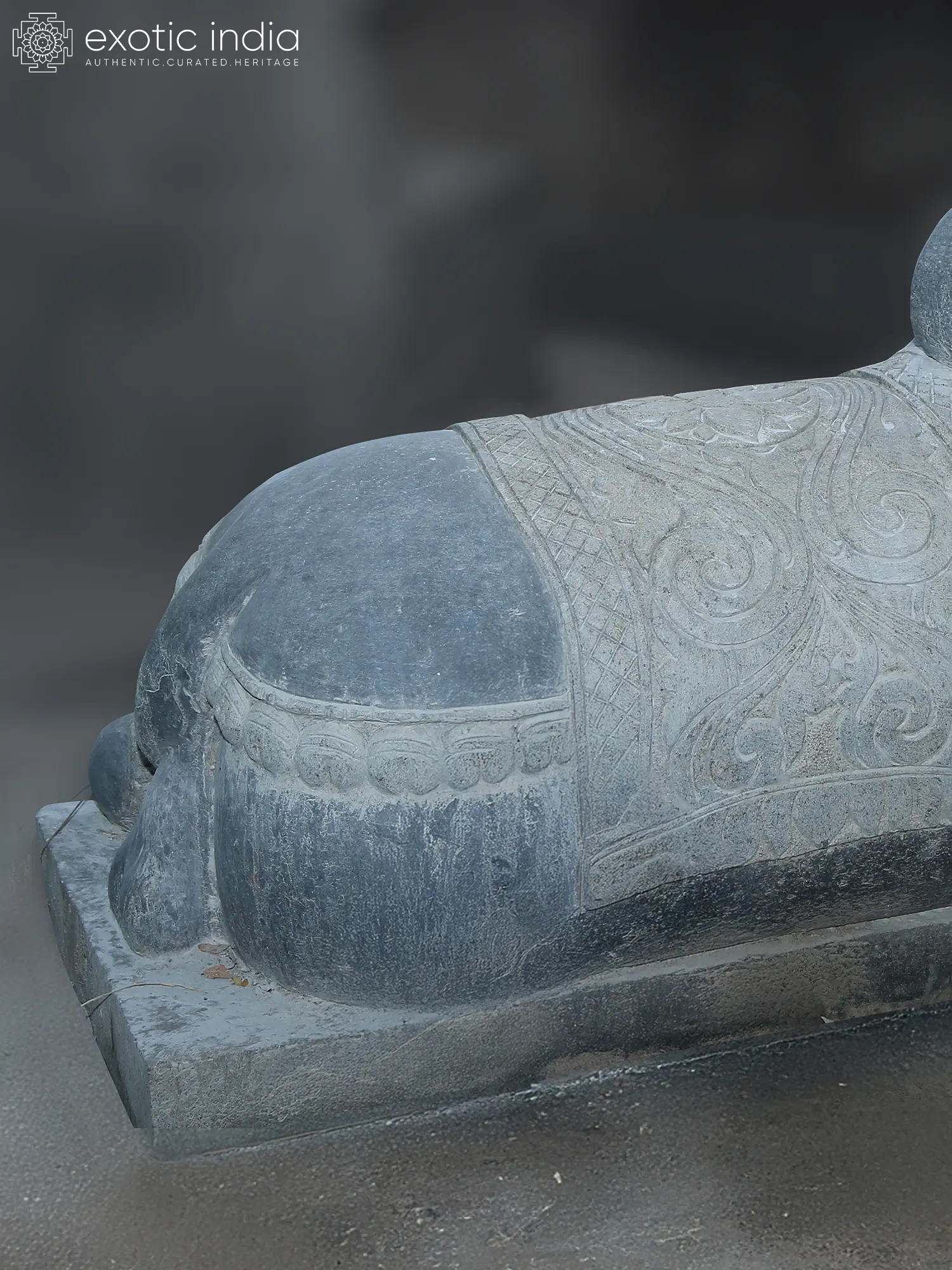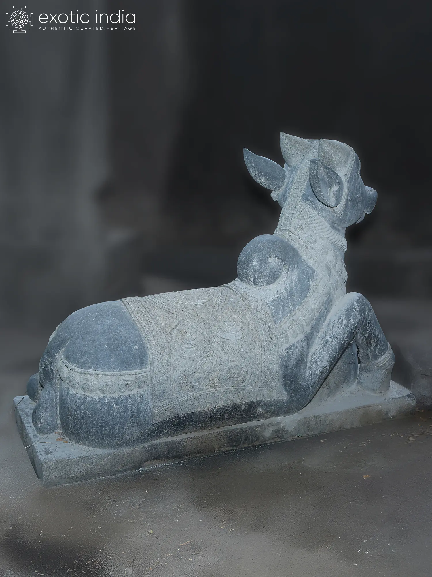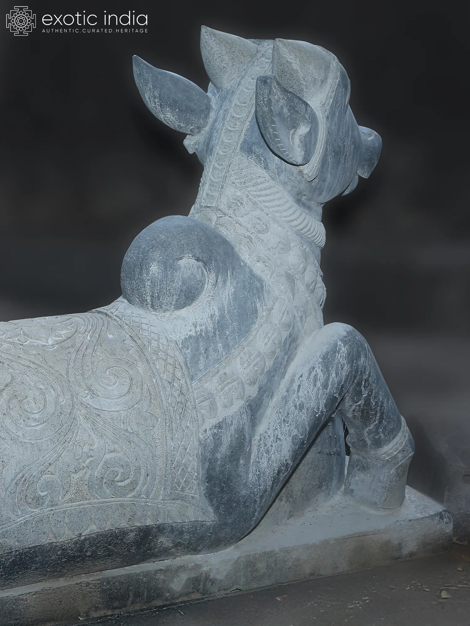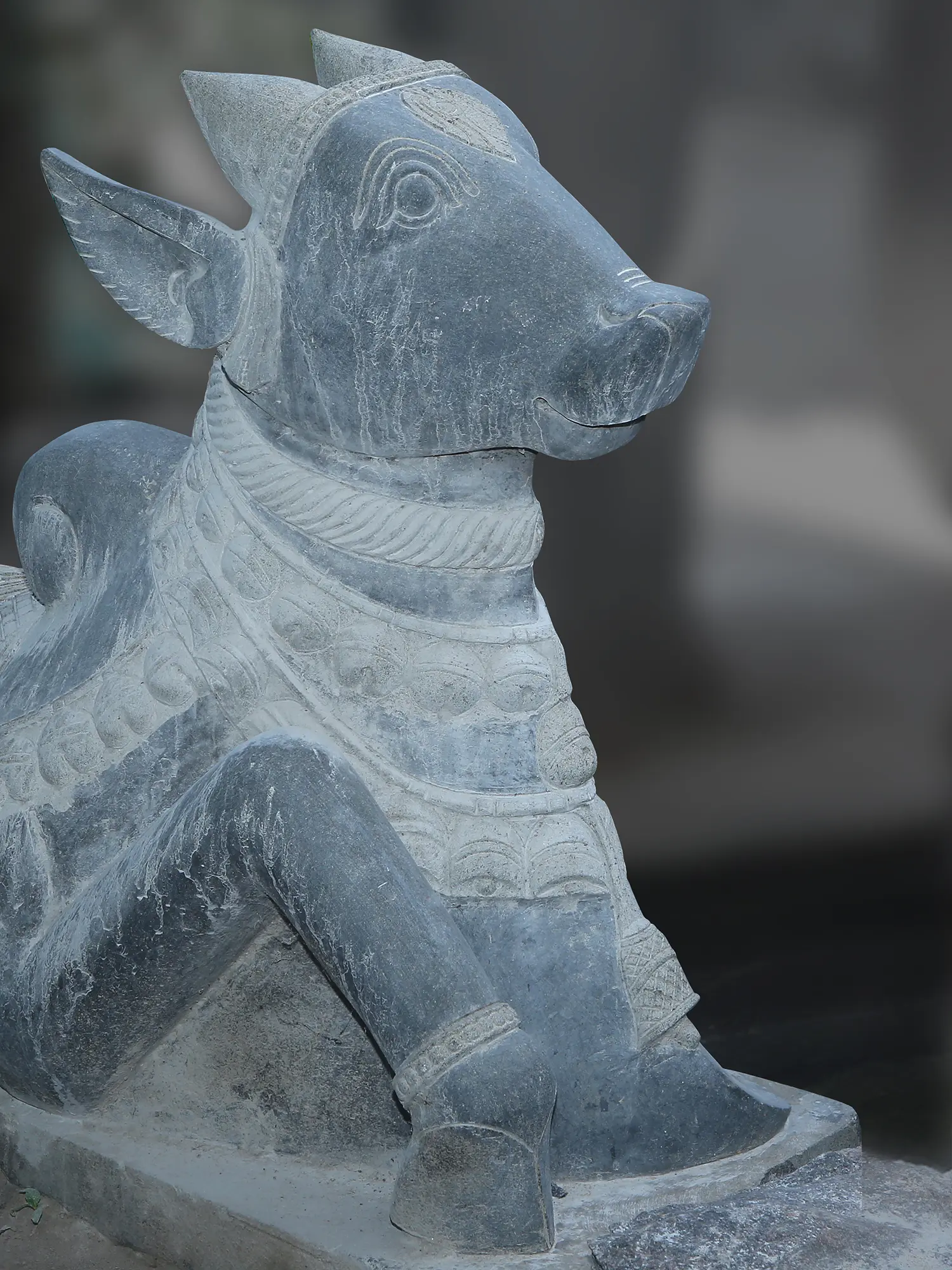 This Nandi Statue, crafted of black granite stone, captures the essence of Nandi, the sacred bull and devoted vahana (mount) of Lord Shiva.