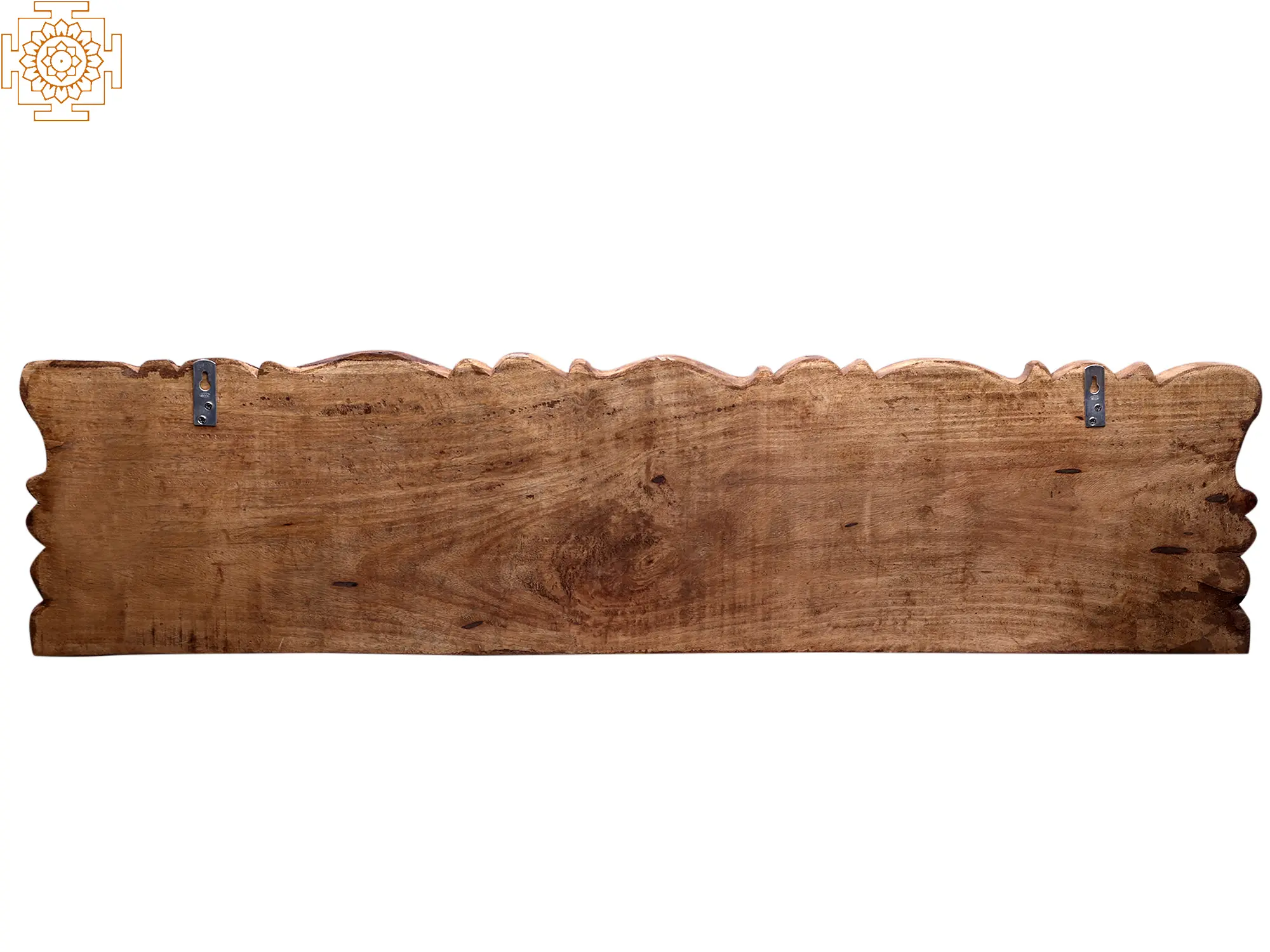 Crafted from solid wood, this panel is a testament to the skill of traditional artisans. The intricate details of each figure, from their adornments and weapons to their expressions and postures, are brought to life through careful carving. The decorative border, with its flowing lines and floral motifs, adds an elegant frame to the sacred figures, creating a harmonious blend of art and spirituality. The wood itself carries a natural warmth and texture that enhances the tactile and visual appeal of the piece. This panel is more than just a decorative item; it is a sacred artifact, imbued with the spiritual significance of the Dashavatara and the artistic heritage of its creators. It is designed to be a focal point in any room, inspiring contemplation and reverence.
