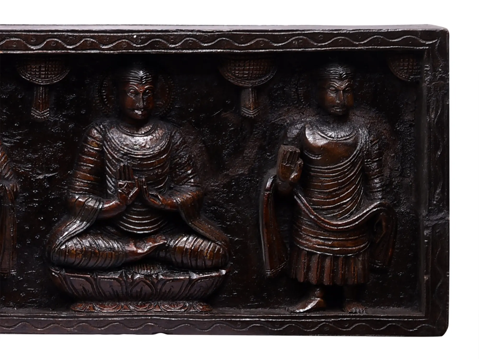 48" Large Wooden Gautam Buddha in Different Postures Wall Panel