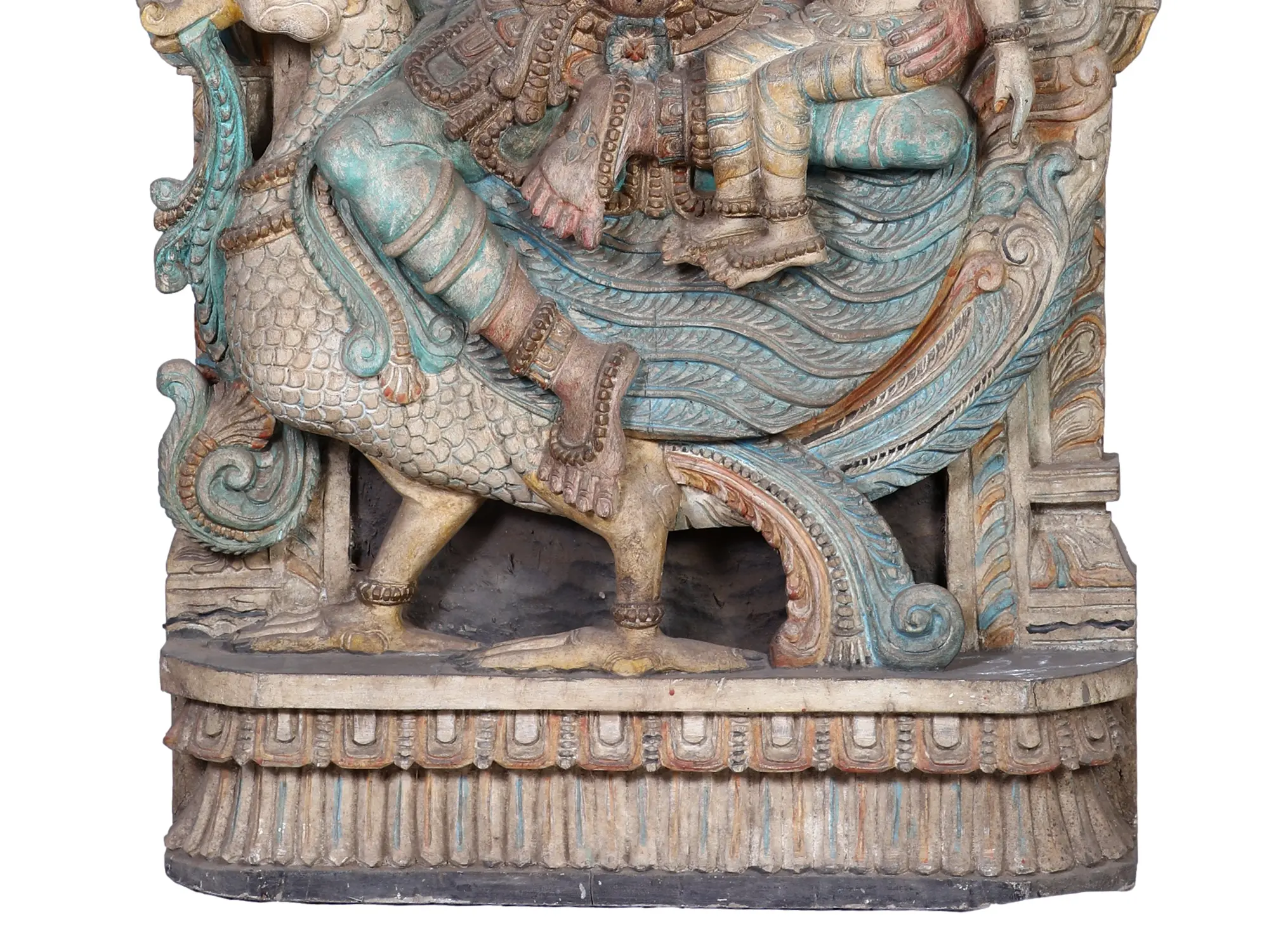 54" Large Lakshmi Ganesha Saraswati Colorful Wall Panel | Wood Carving