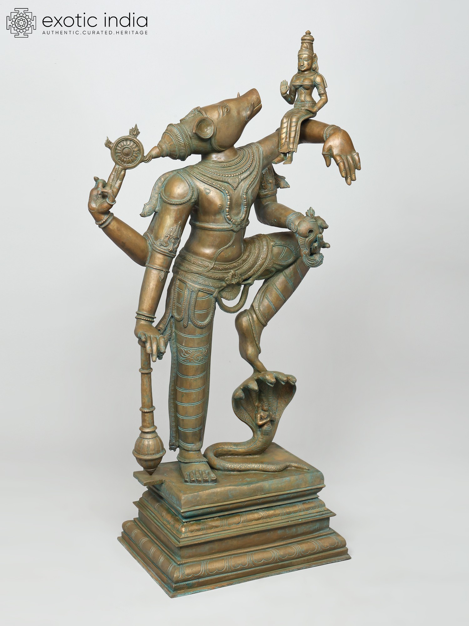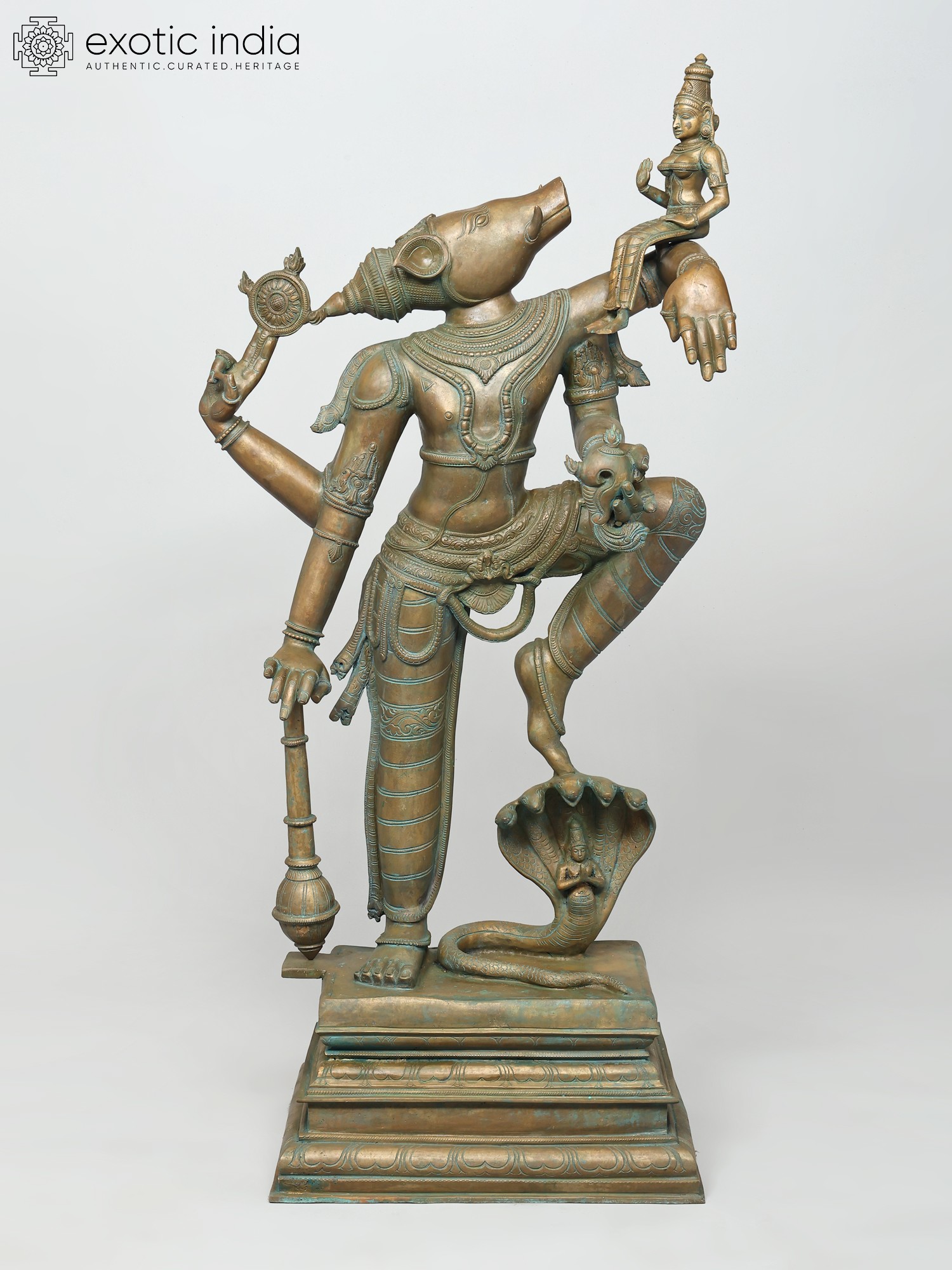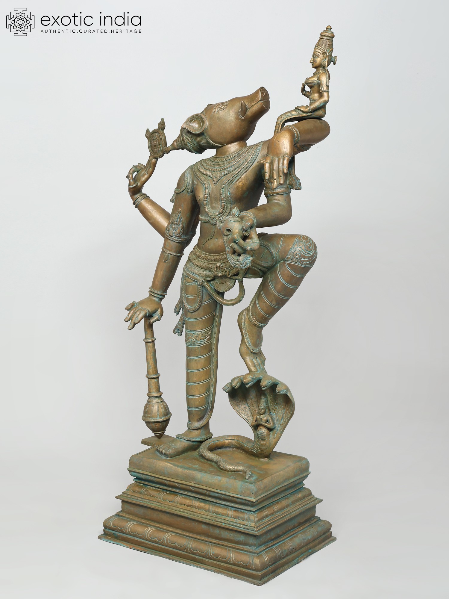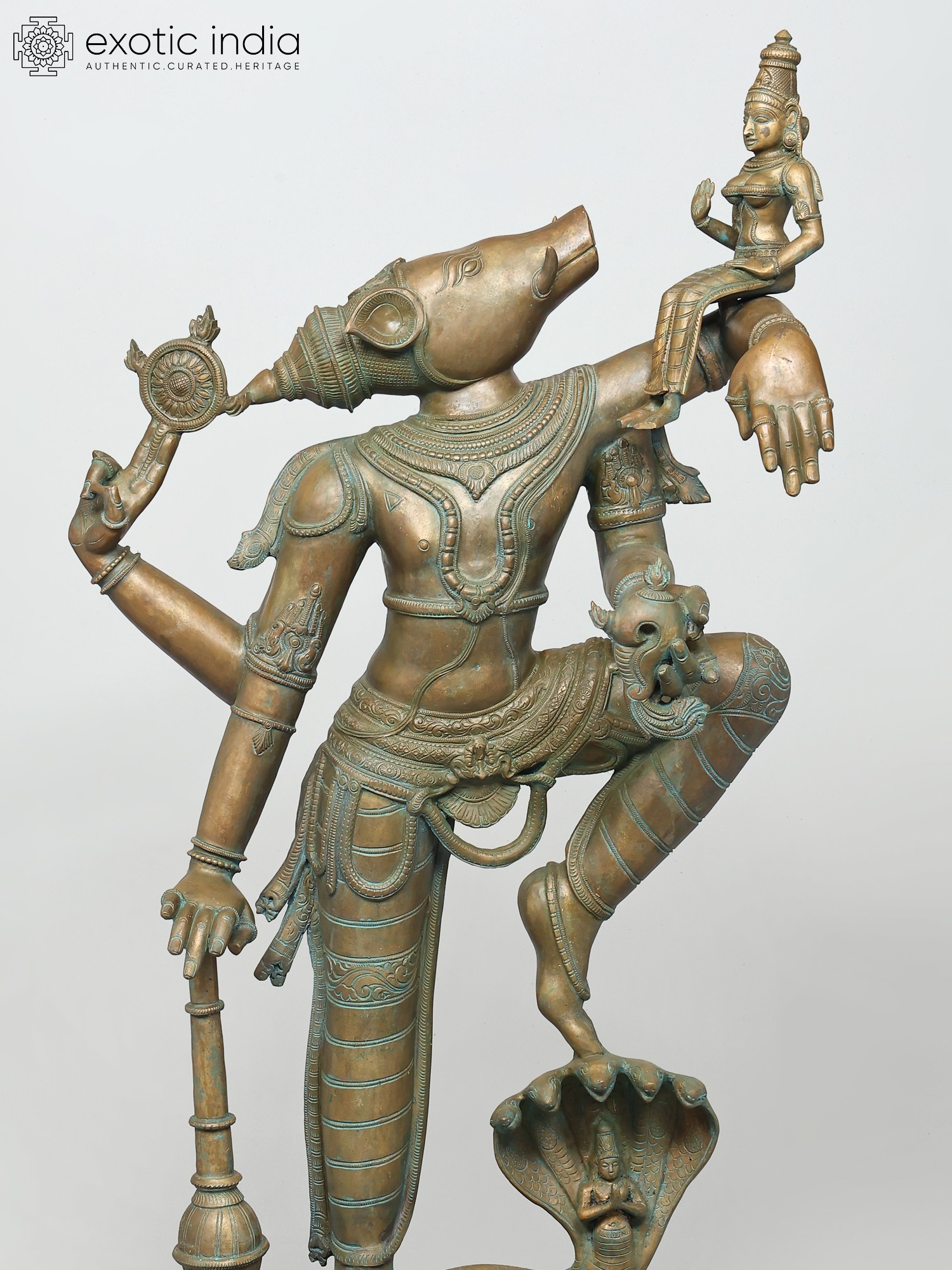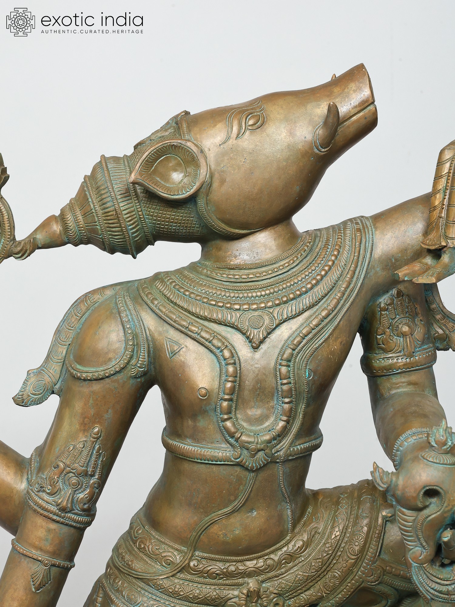 13'' Varaha Idol with Devi Lakshmi | Madhuchista Vidhana (Lost-Wax) | Panchaloha Bronze from Swamimalai