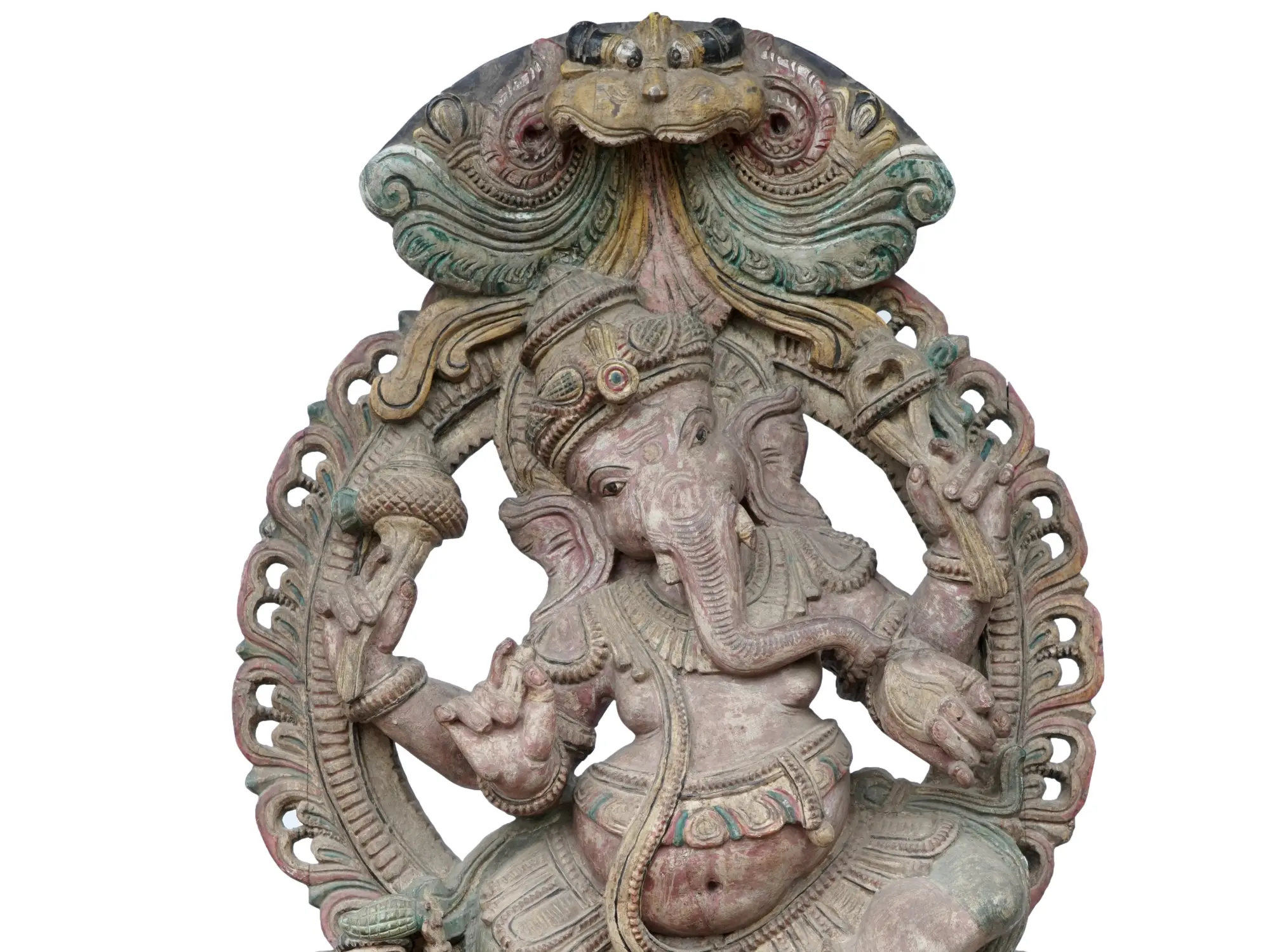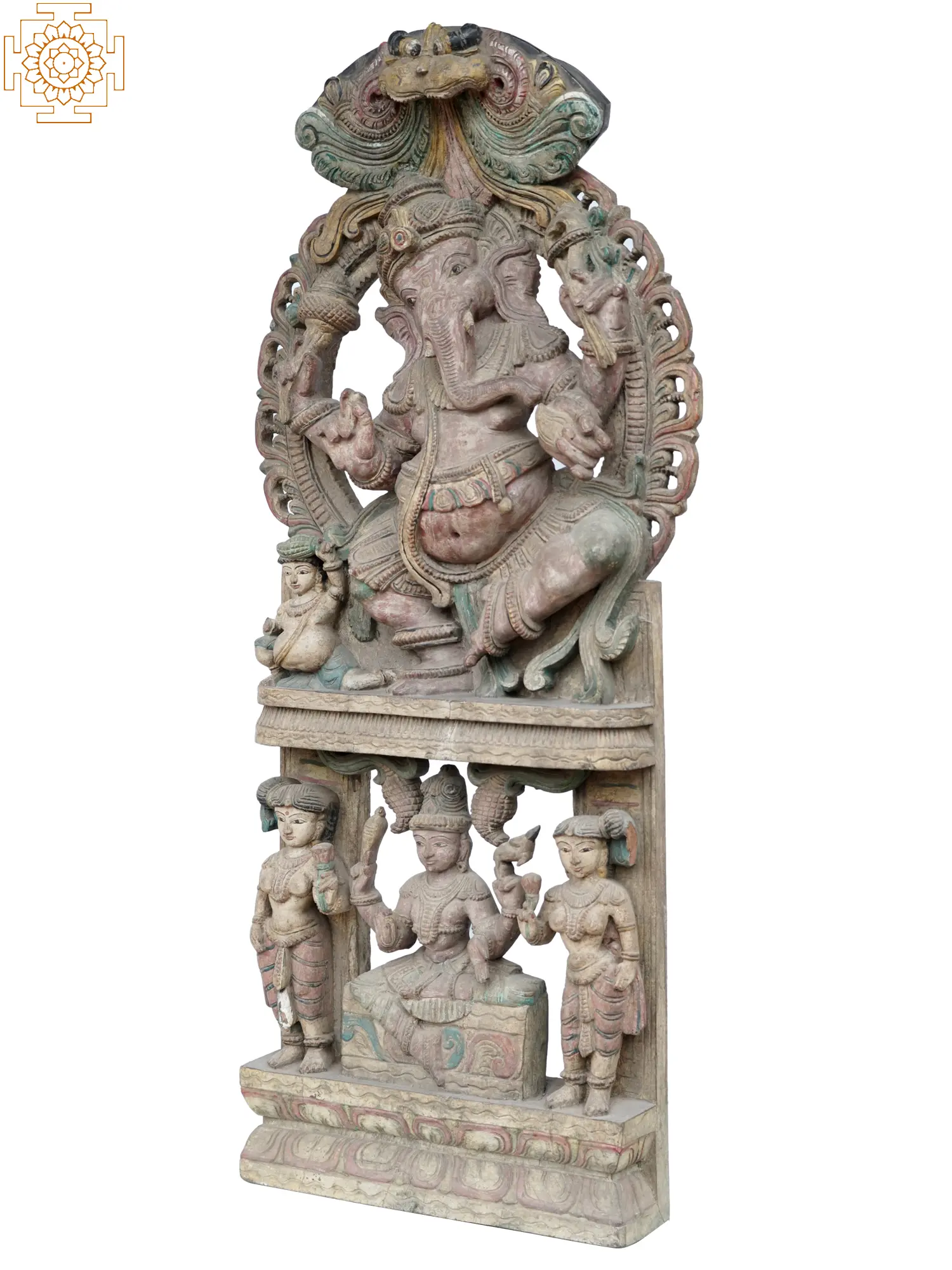 Wooden Sculpture of Lord Ganesha Plays the Shehnai