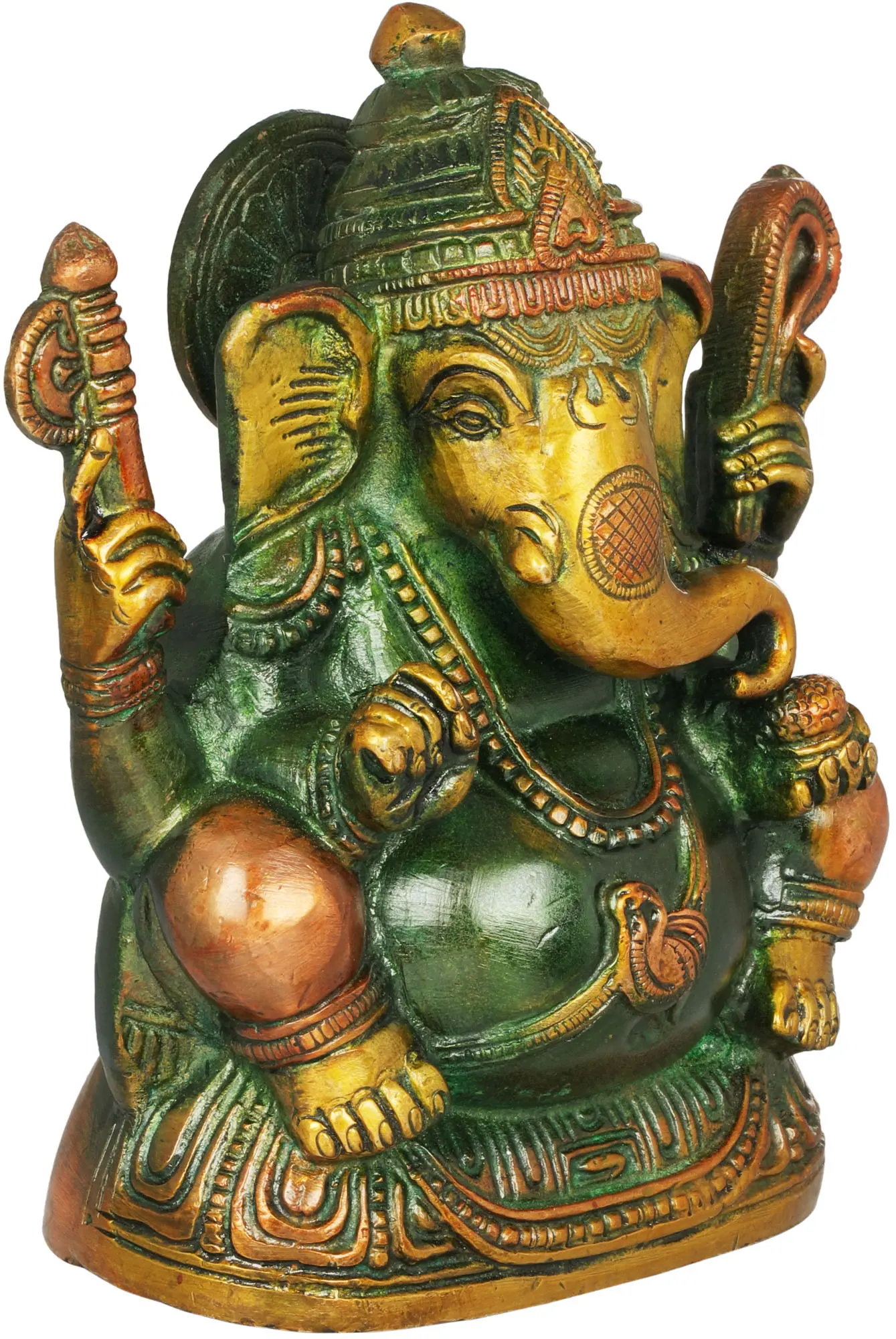 Emanating from the heart of sacred nature, our Bhagawan Ganesha in a captivating green hue is a transcendent masterpiece that resonates with the very essence of life. Just as the leaves sway in harmony with the wind, so does this exquisite representation of the remover of obstacles bringing balance and serenity to your sacred space. The green hue serves as a reminder of Ganesha's boundless compassion and his role as a guardian of both the material and spiritual realms. Just as the leaves absorb sunlight to nourish the tree, so does Bhagawan Ganesha in green illuminating your path with wisdom, dispelling the shadows of doubt and clearing your way to success.