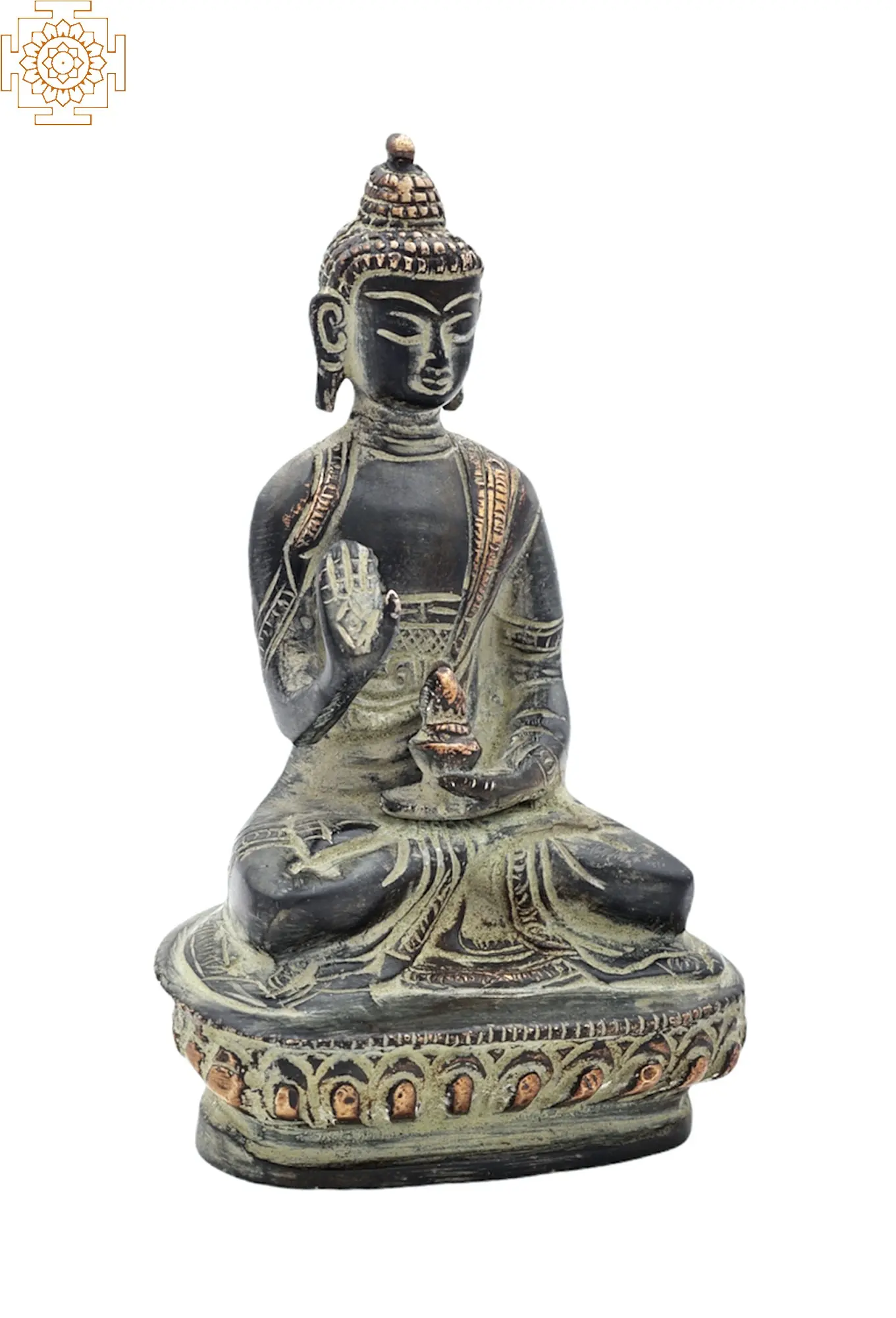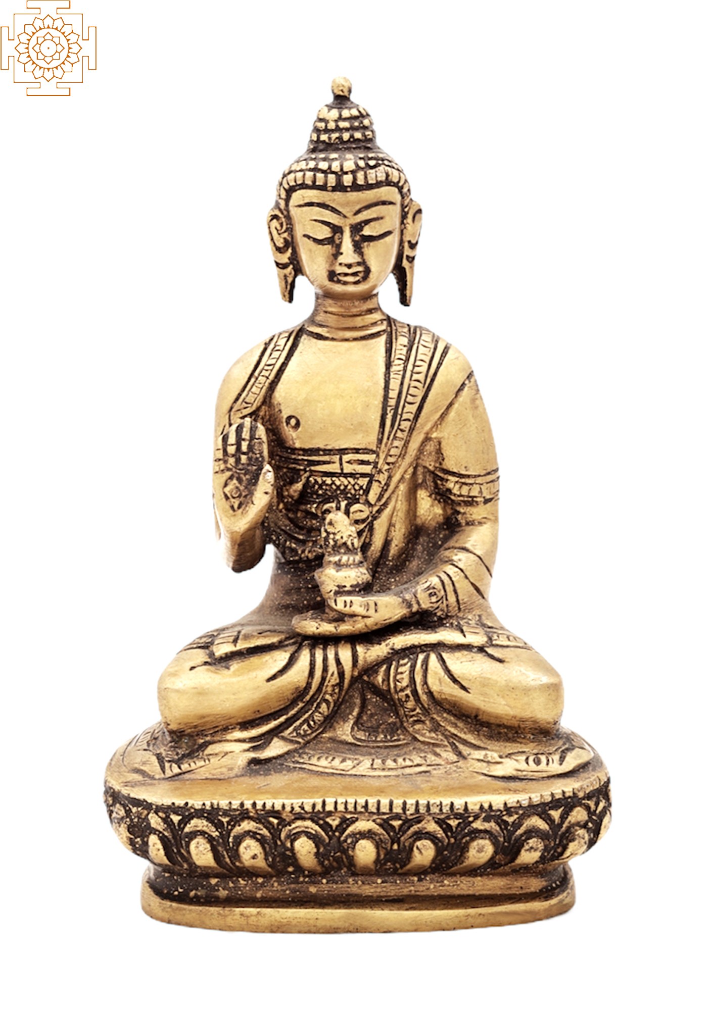 "Thousands of candles can be lit from a single candle, and the life of the candle will not be shortened." This aligns with the Blessing Buddha brass sculpture. Handcrafted with reverence, it captures the essence of Tibetan Buddhism. Seated in the Dhyana Mudra, his right-hand touches the earth, a gesture of enlightenment. On his left, he holds a bowl, symbolizing generosity. His eyes closed in meditation, Buddha radiates serenity. This sculpture reminds us to share the light of compassion and wisdom, for in doing so, our inner flame only grows brighter.