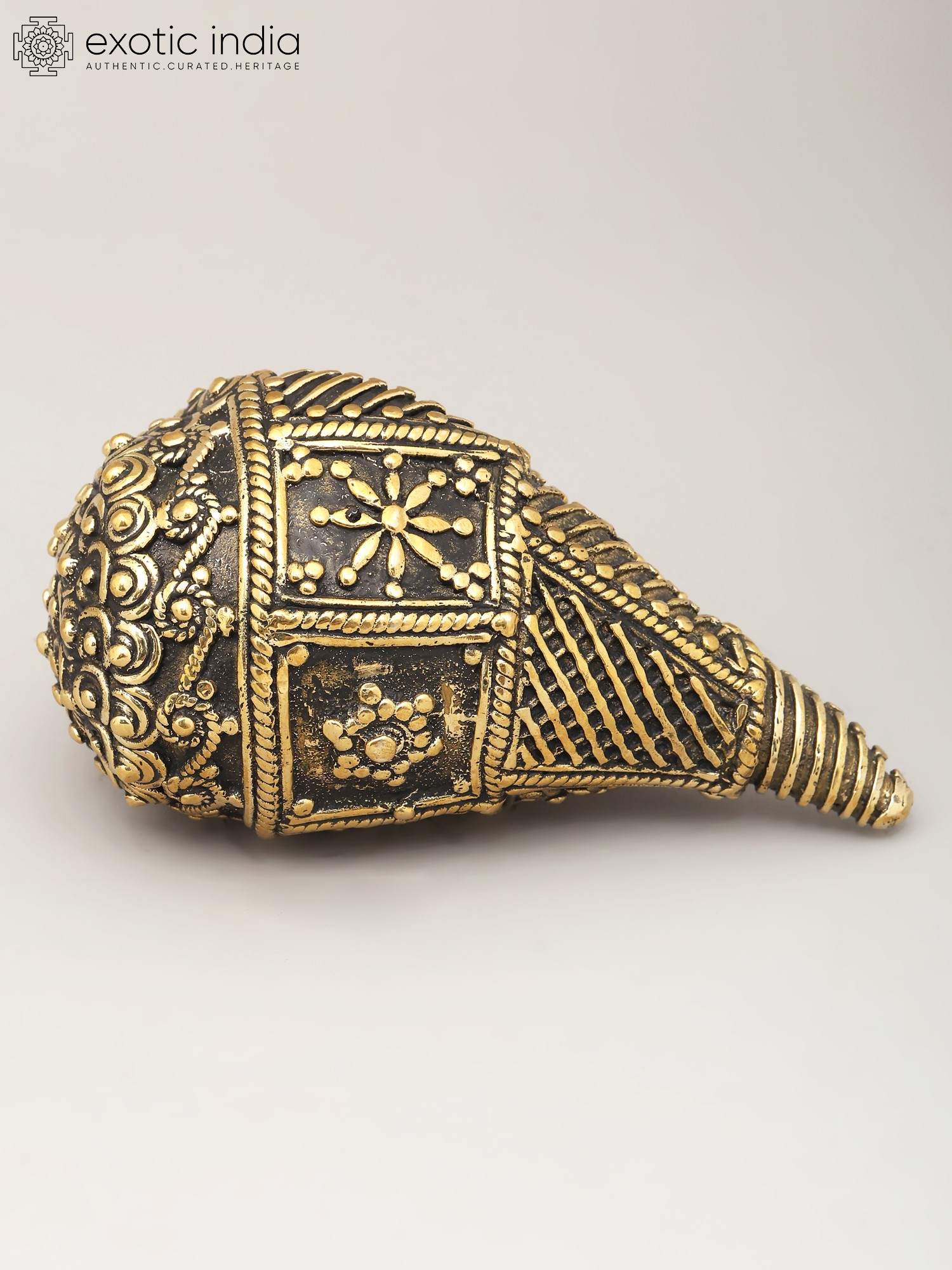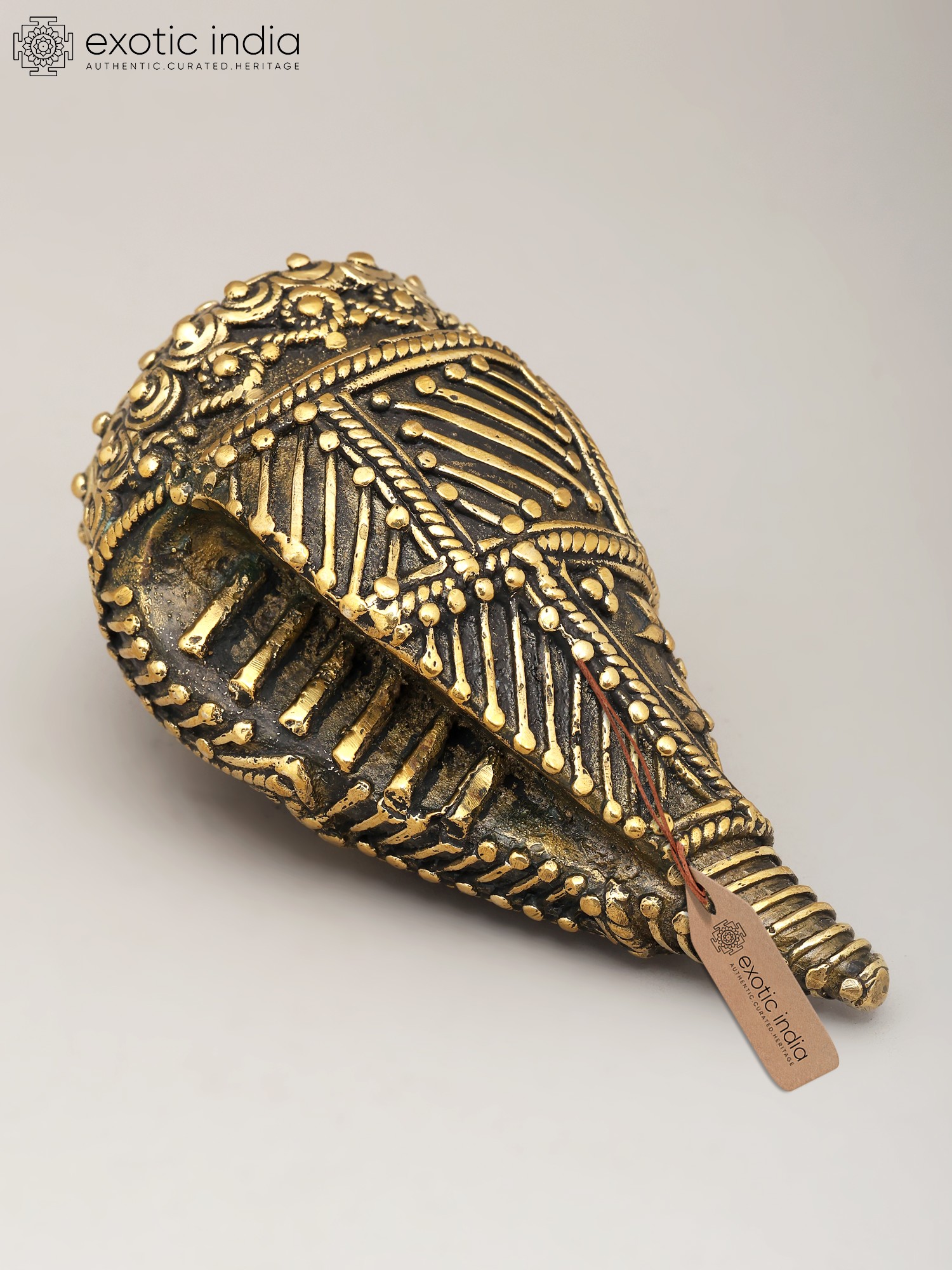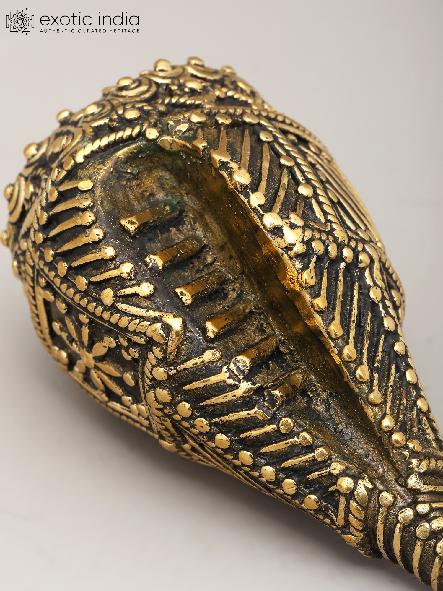 9" Surya Bhagawan Conch -Wall Hanging In Brass | Handmade | Made In India