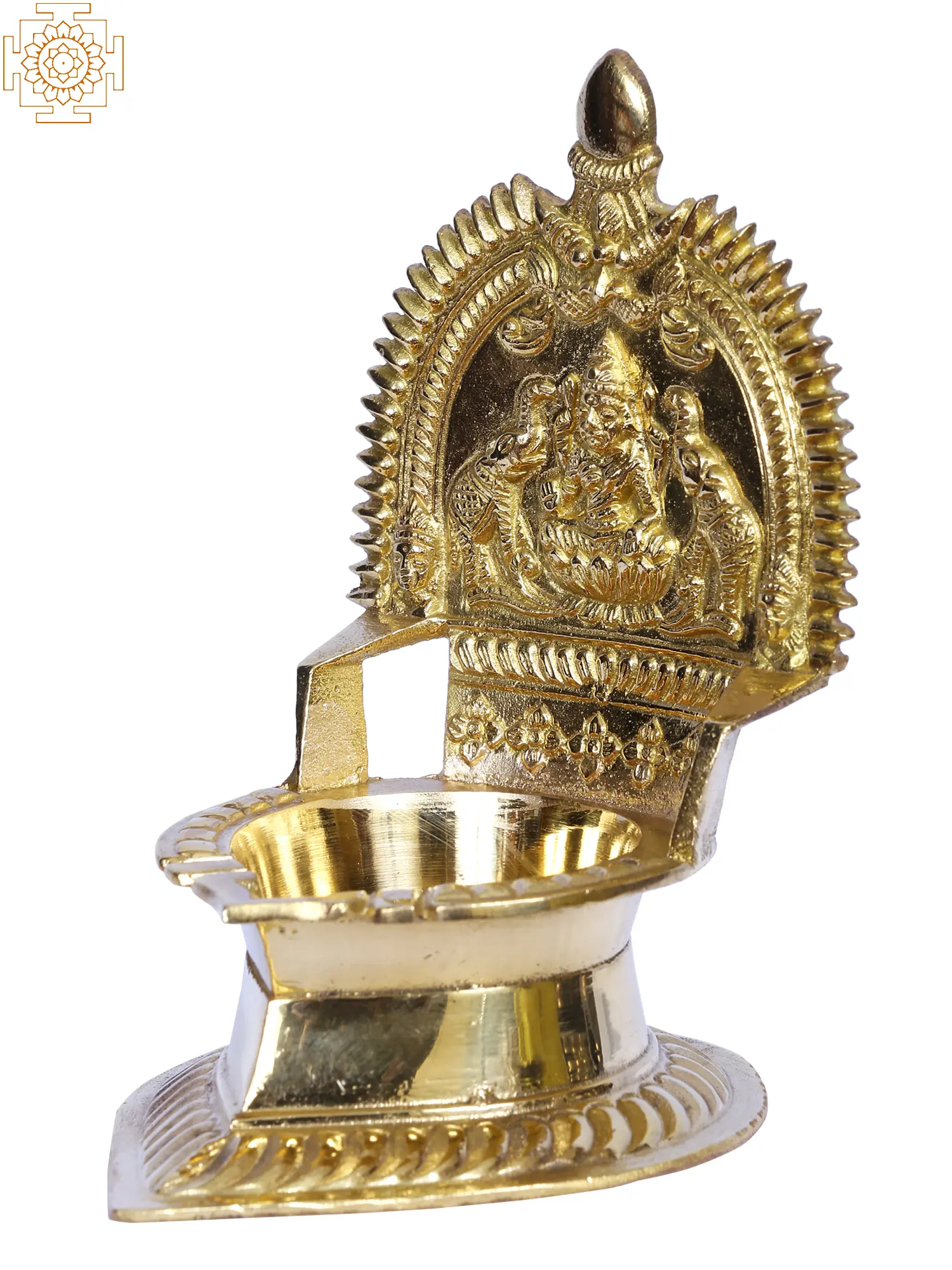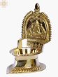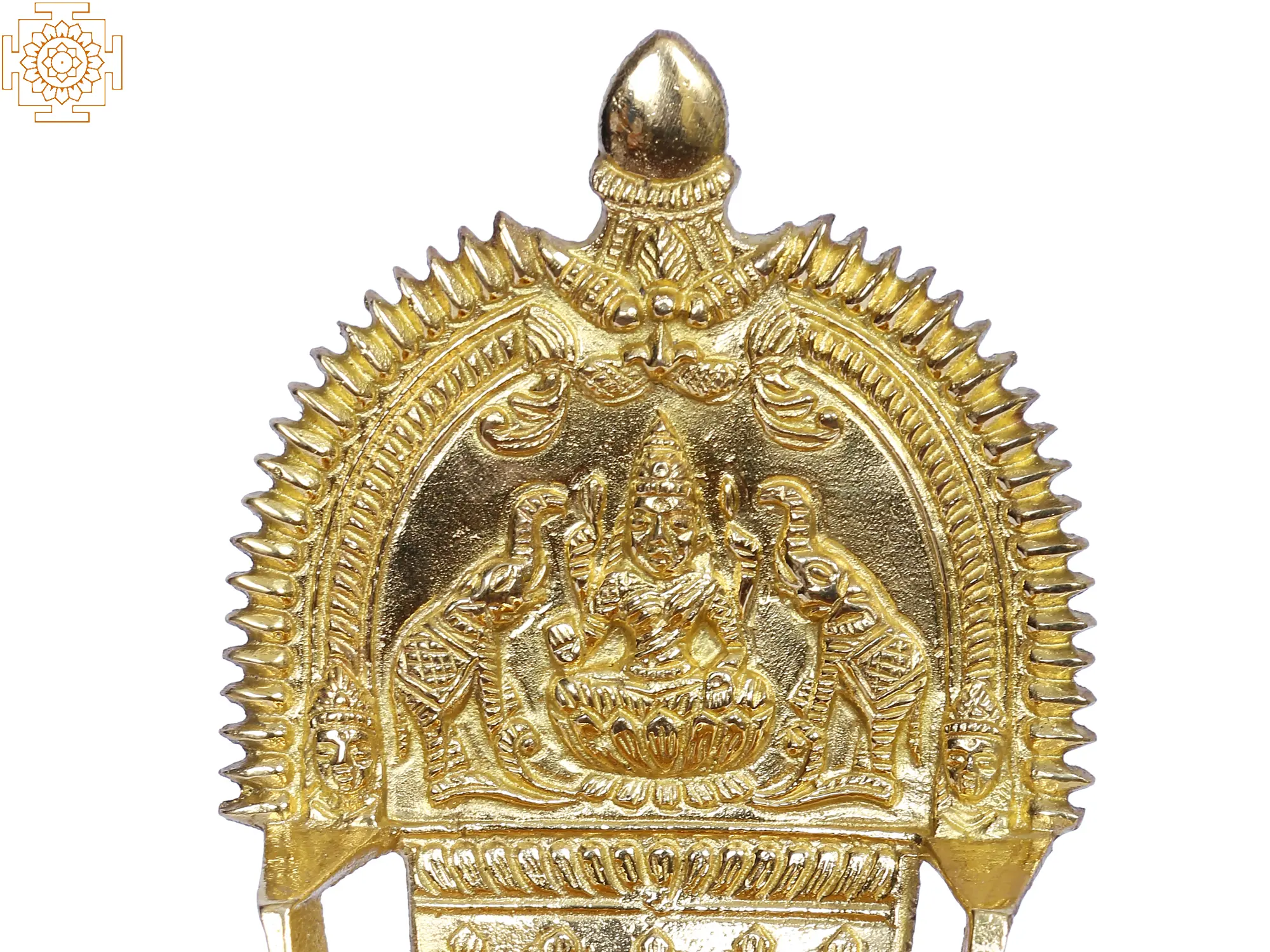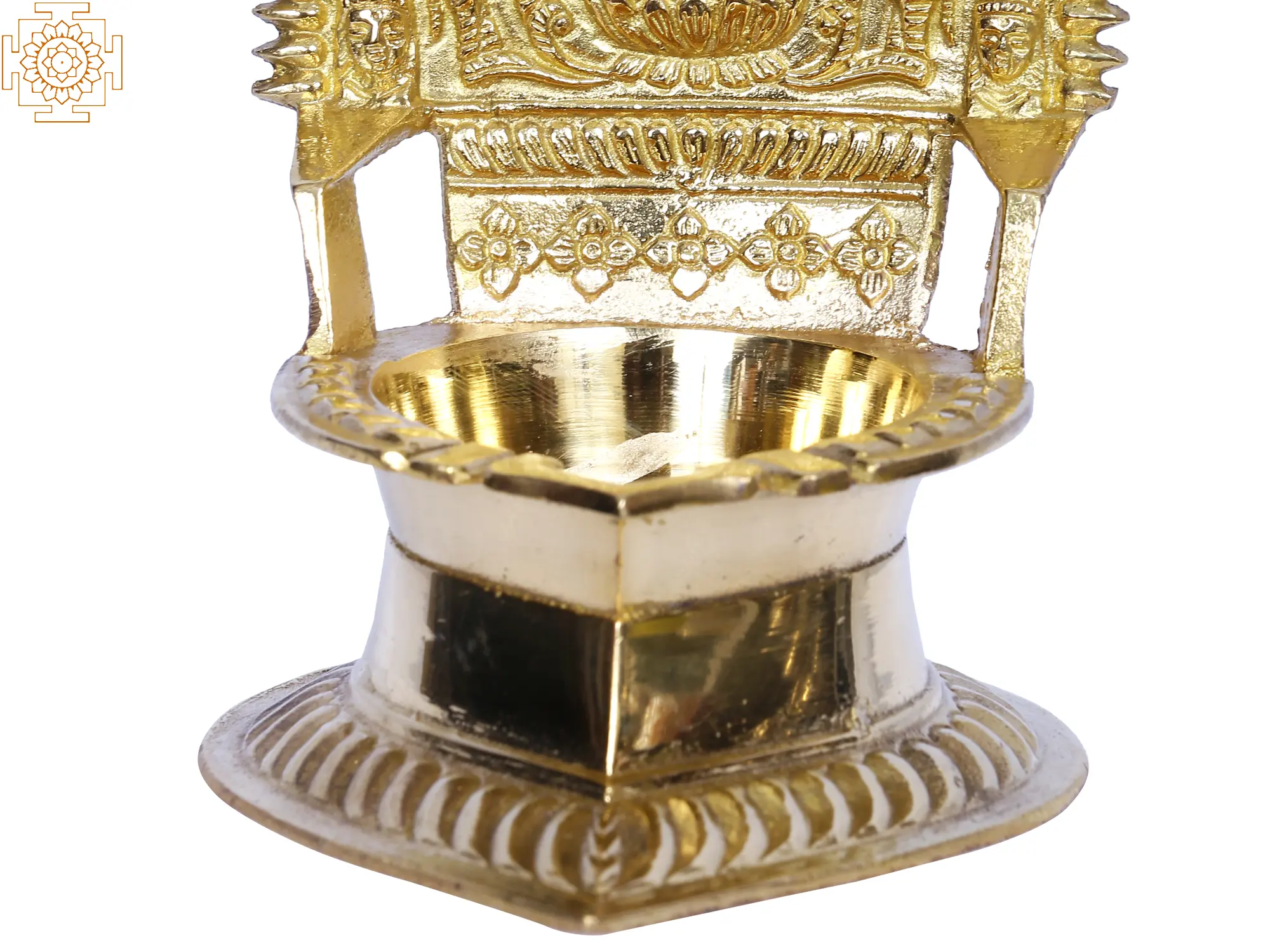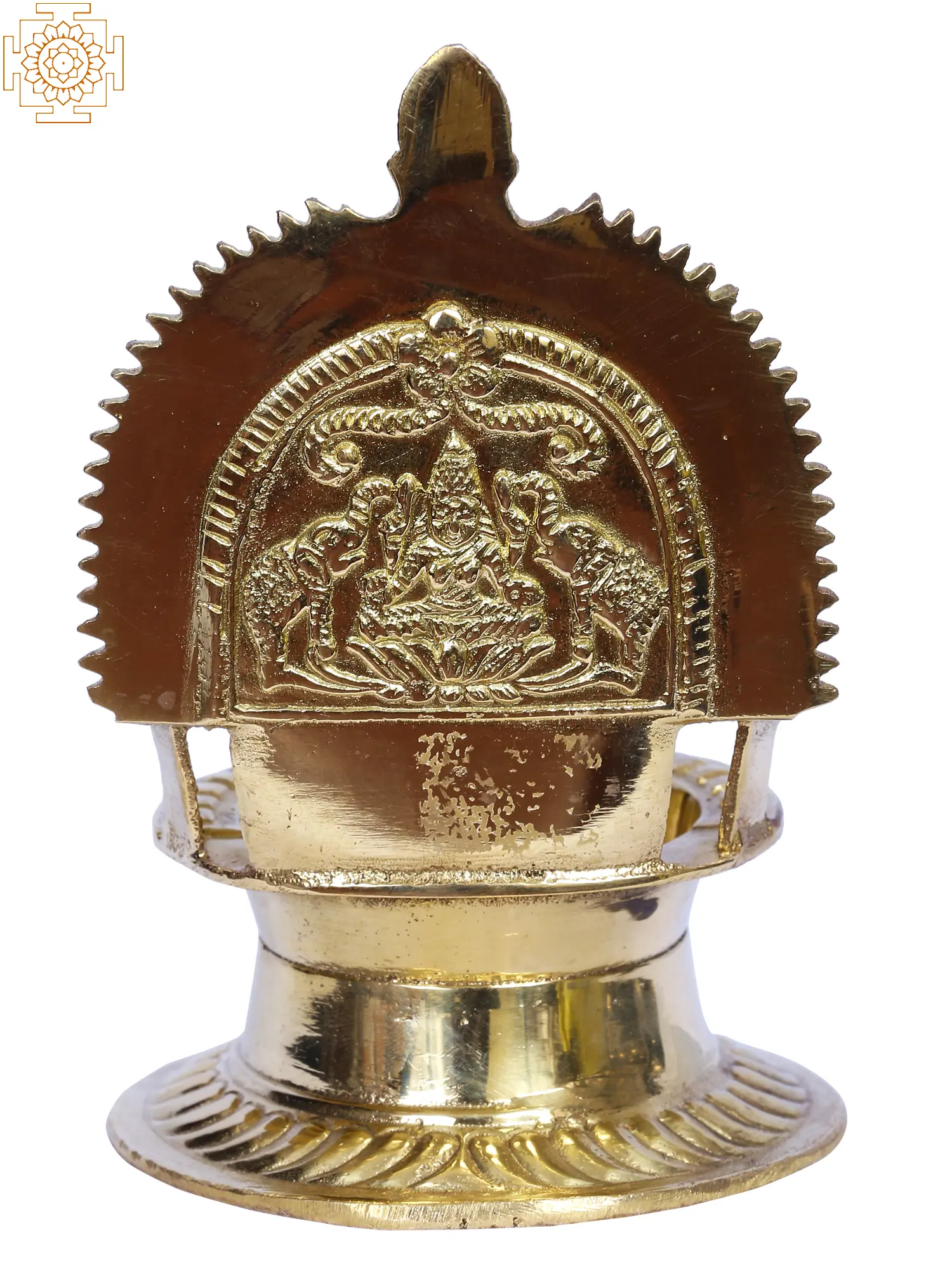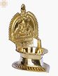 Many people worship Goddess Gajalakshmi, the divinity of health, riches, and grandeur. Ancient poets such as Kalidasa held her in great respect. She can be seen in several ceremonial items due to her regal position. This Gajalakshmi Deepam is made of brass with a gold finish. It has a long life because of the metal. The lamp's background depicts the goddess Gajalakshmi sitting under a Prabhavali of Kirtimukha and flower buds peering forth. The lamp's oil bowl is deep enough to hold enough oil to keep the wick burning all night. This is one of the most popular images of the goddess and it is believed that lighting this lamp twice a day brings good luck and prosperity to people’s homes.