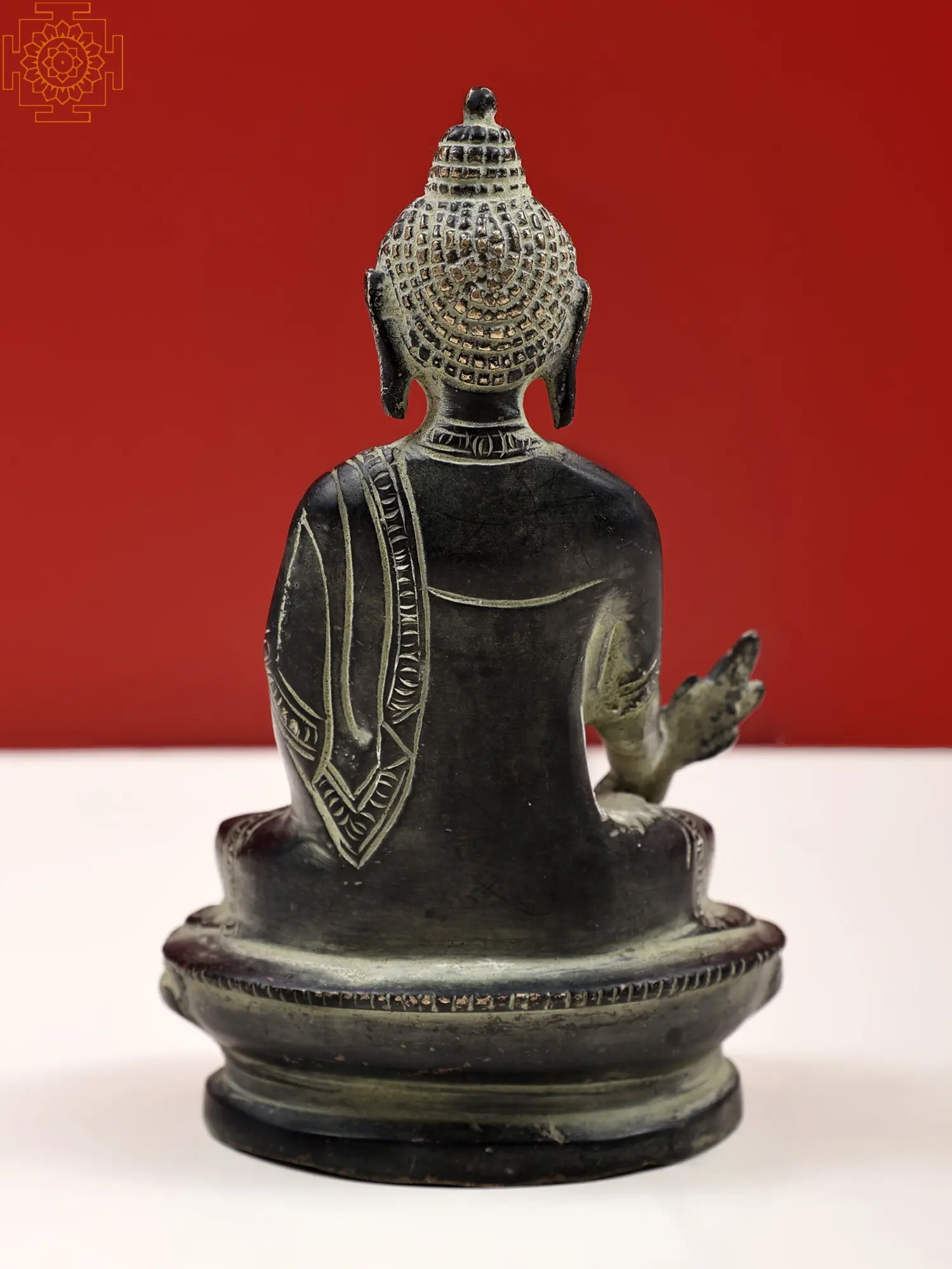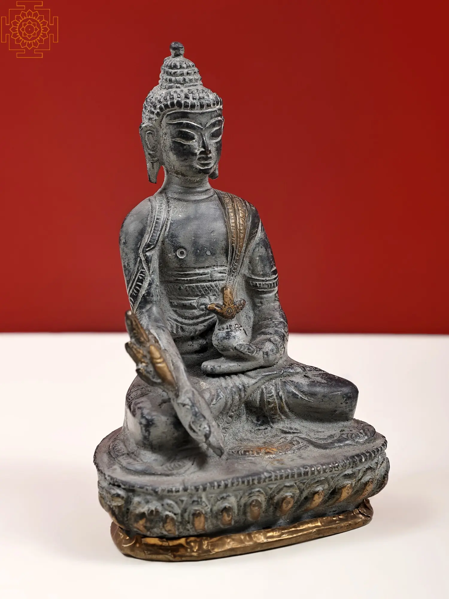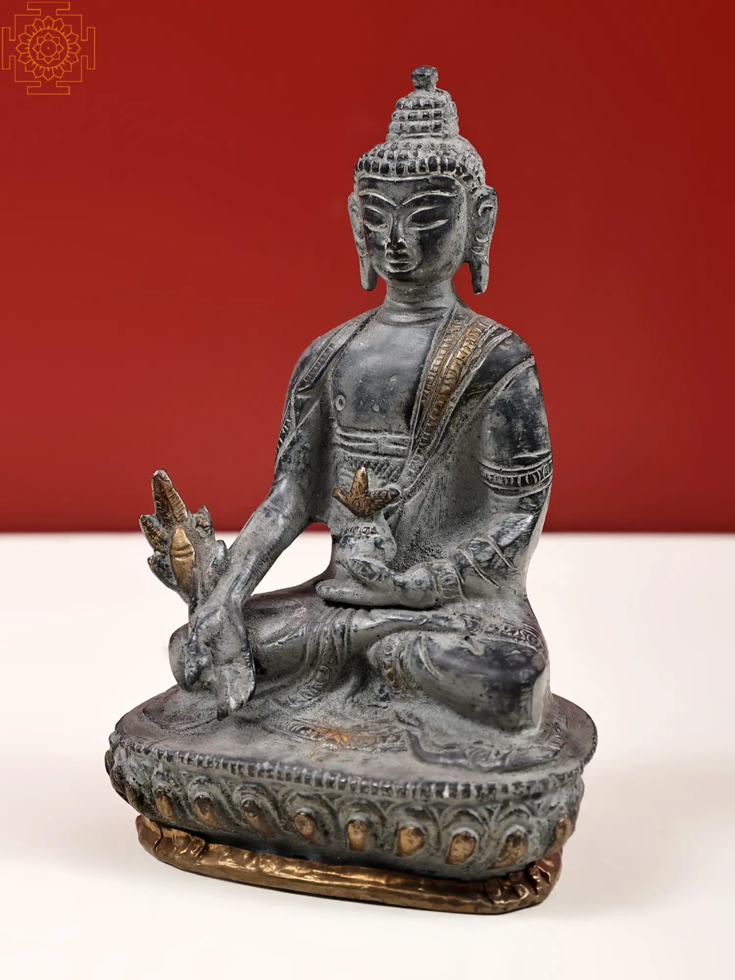 Medicine Buddha is popularly known as “Bhaisayaguru”. Often depicted seated in meditation (Dhyana Asana), his left hand holds a bowl of “Healing Nectar”, while his right hand holds the Myrobalan plant (also known as “Haritaki” or “Terminalia Chebula”), symbolising Lord Buddha’s role as the “Healer”. It is believed that by keeping the Medicine Buddha at home, the healing powers of the family members enhance and evil forces will not be able to infiltrate the household. Crafted in Brass, the sacred artwork invites you to find solace and relief from suffering through the divine blessings of the “Healing Buddha”.