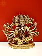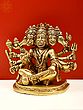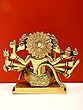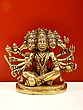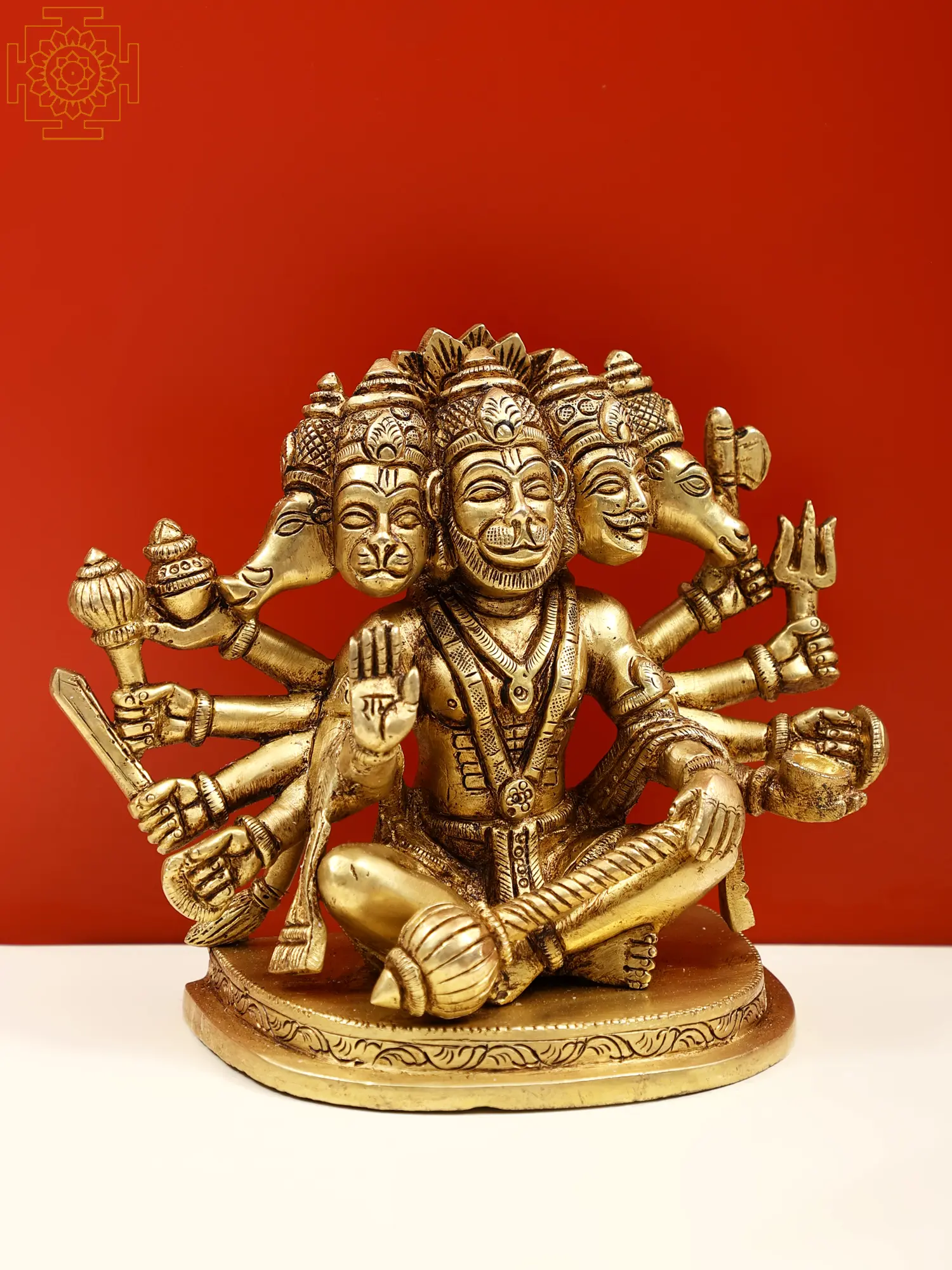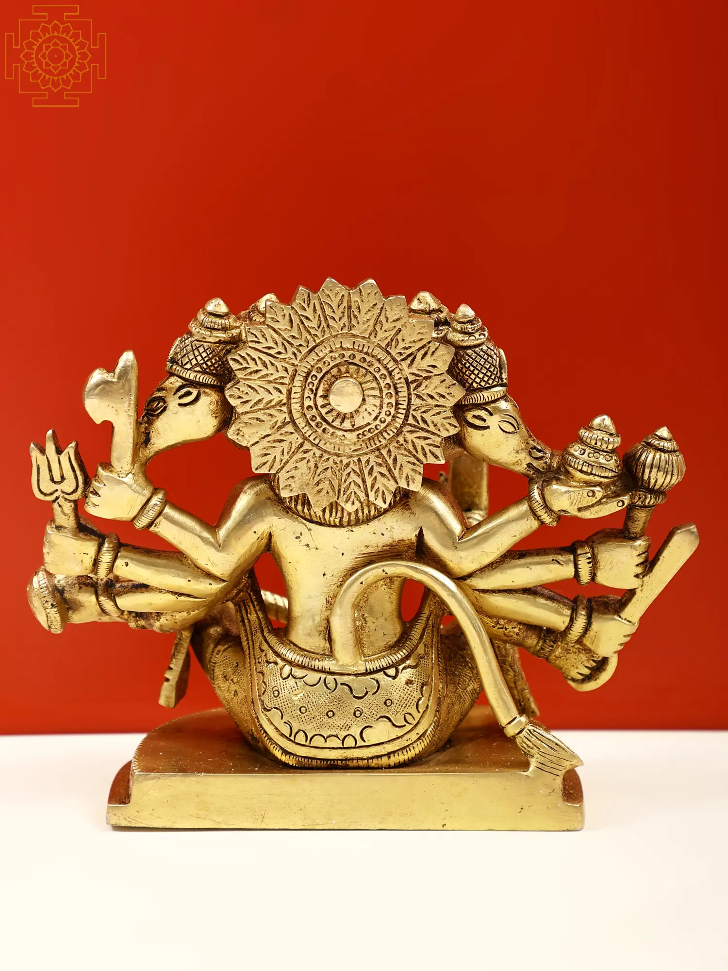 In this brass statue, Panchamukhi Hanuman sits, a celestial embodiment of divine prowess. His five faces, echoing the roars of Narasimha, the strength of Varaha, the grace of Garuda, the wisdom of Hayagriva, and the devotion of Hanuman, watch over all. With ten arms, He wields mighty weapons like – Gada, Axe, Sword, Trishul – each radiating an aura of protection and valour. His right hand, poised in “Abhaya Mudra”, bestows blessings upon those who seek his divine grace. Adorned in regal attire, he embodies unwavering courage and unwavering faith, a guardian and guide to those who worship him. Worshipping this form of Hanuman grants strength, courage, wisdom, and protection.