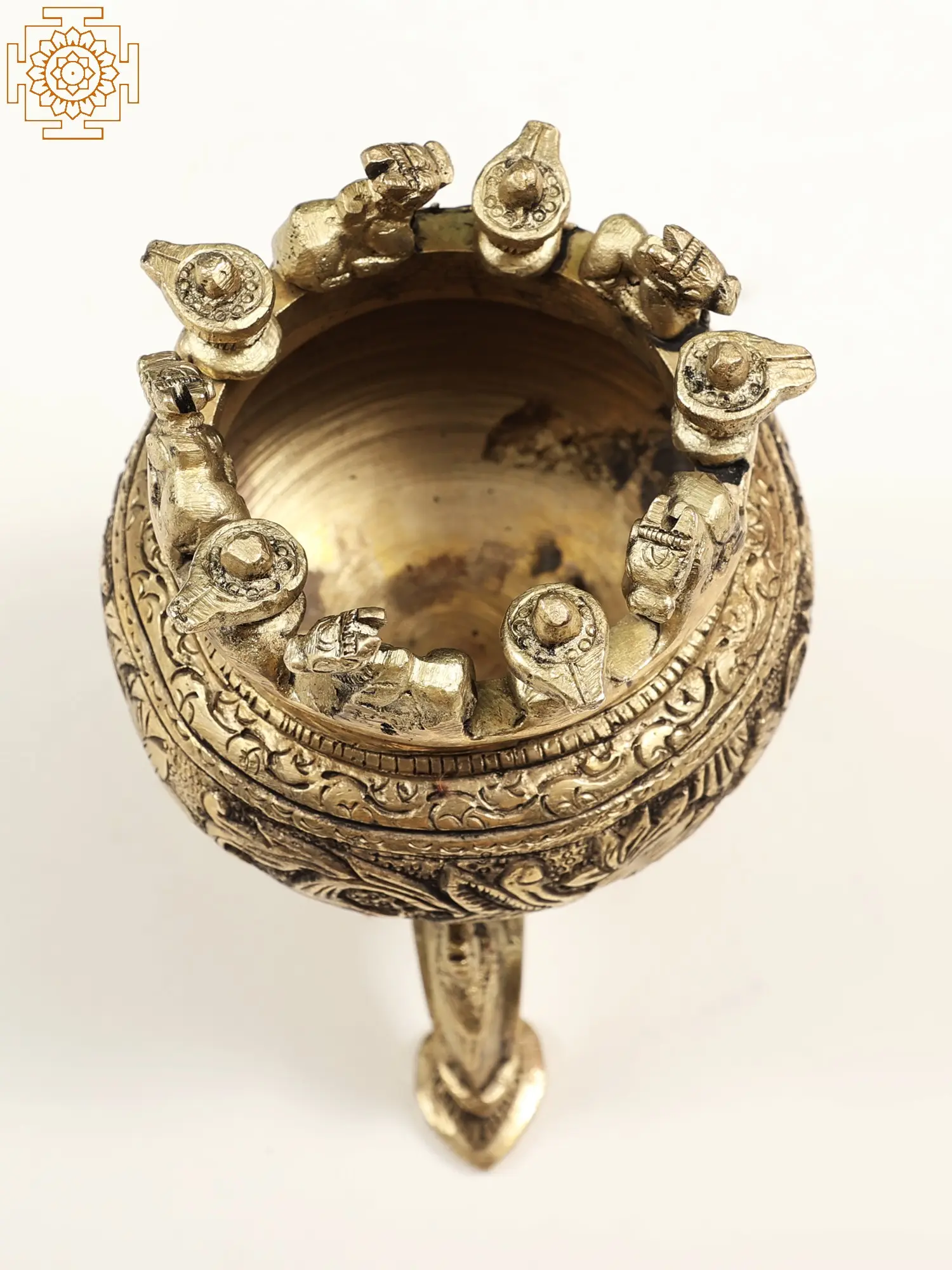 From the exquisite brass shivling, spirituality takes root, flourishing like the sacred banyan tree. The Nandi pot, symbolizing nourishment, cradles the linga like a devoted guardian. The Shivling represents the eternal, a fusion of consciousness and bliss. As water is poured over it, the gushing sound becomes a divine echo, awakening our senses to the sanctity of life’s flow. This artistic ode to devotion reminds us that amidst life’s chaos, there lies a tranquil core, where the union of energies unveils the essence of existence.