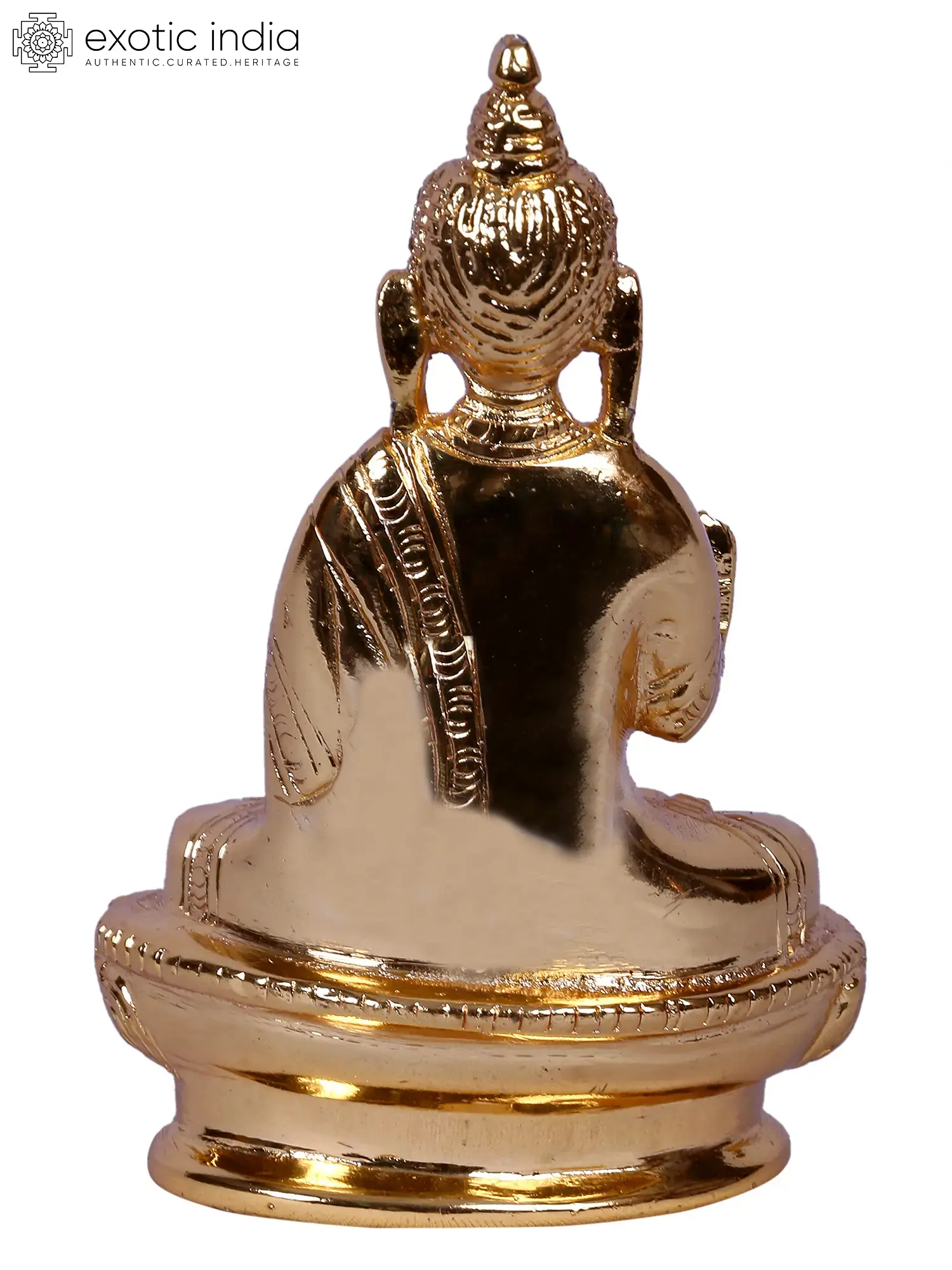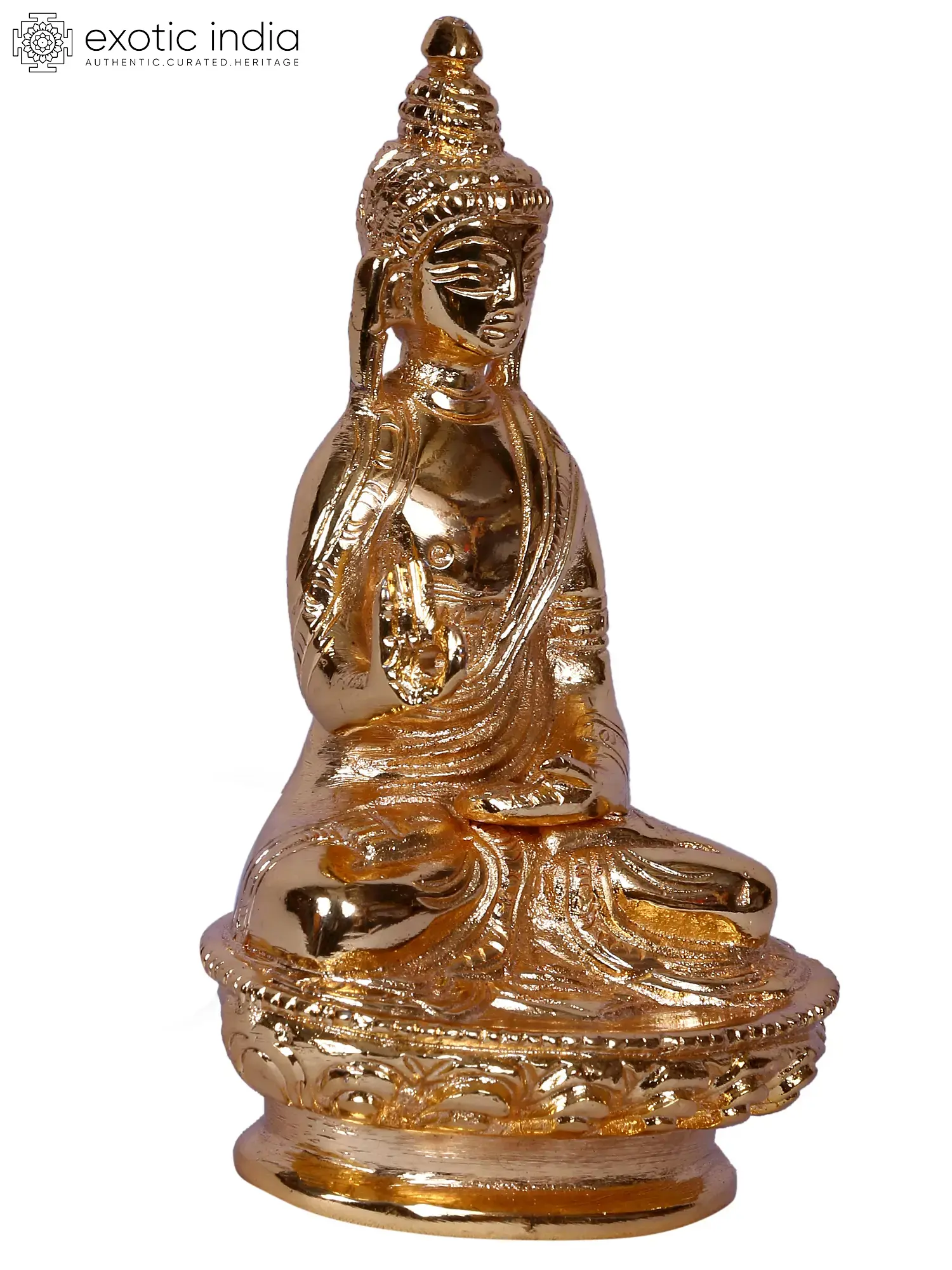 This Gautama Buddha statue, plated in gold, exudes spiritual allure and grace. This oil painting on canvas depicts the calm presence of the Buddha in a golden tint, exuding knowledge and tranquillity. The Buddha's closed eyelids convey a deep state of meditation, encouraging people to develop a relationship with their inner selves.