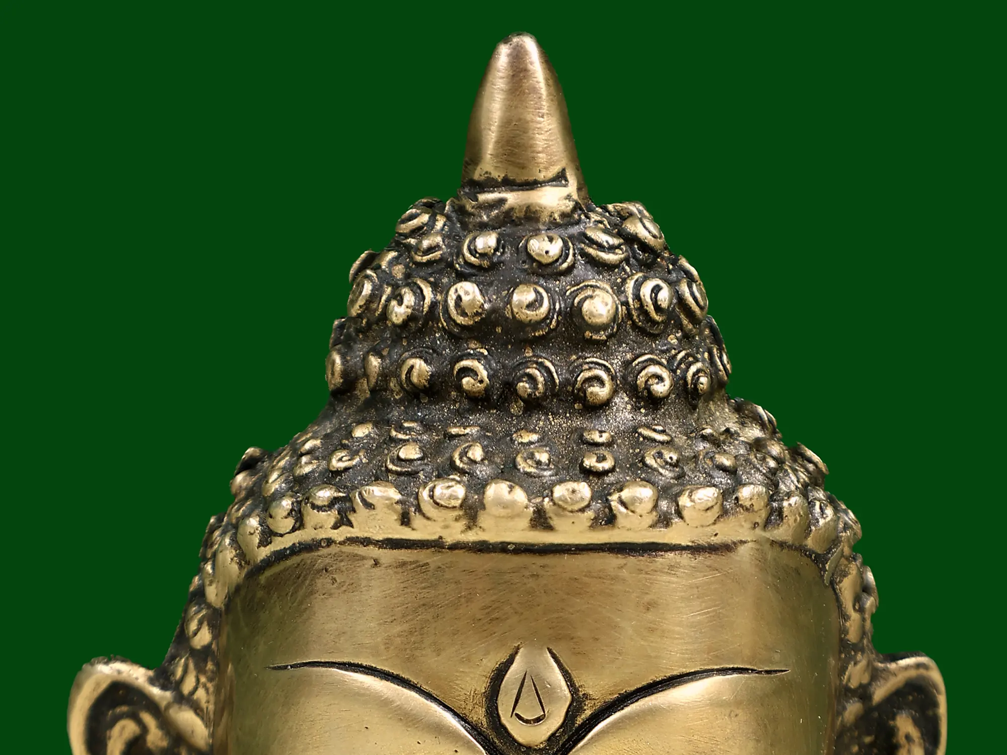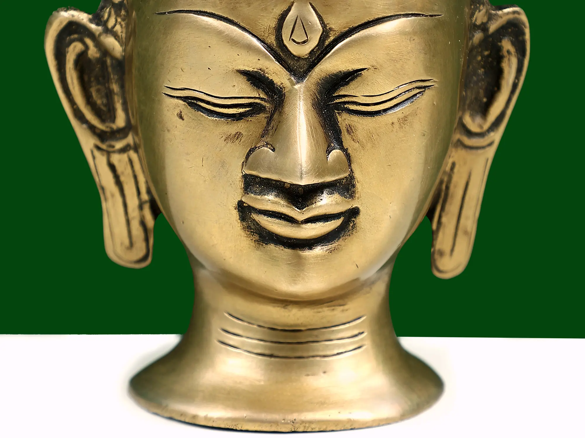 This Buddha bust in brass is a timeless symbol of inner peace, wisdom, and spiritual enlightenment. Its presence in your life serves as a reminder of the path to introspection and the profound beauty that can be uncovered through introspection and spiritual growth; reminding us that the true insight and enlightenment are found within, through introspection and meditation.