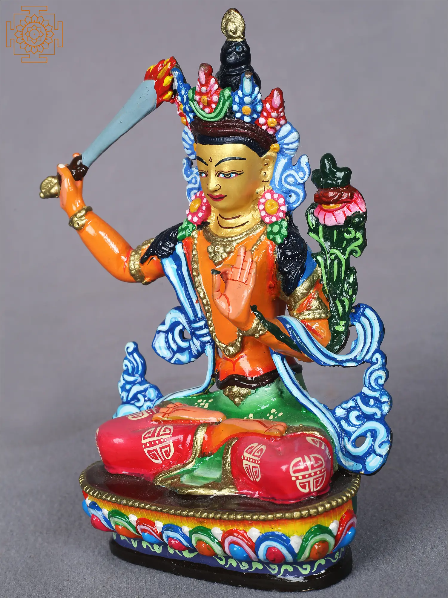 In the cosmic choreography of wisdom, practitioners turn to Manjushri for guidance, reciting his mantra "Om Ah Ra Pa Ca Na Dhih" to invoke the transformative power of enlightened discernment. Manjushri's presence stands as a radiant guide, steering those on the spiritual journey to unravel the mysteries of existence and nurture the luminous light of wisdom within.