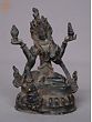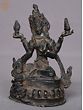 This statue is more than just an object of veneration; it is a piece of art that carries the weight of history and tradition. The copper medium itself has been utilized for centuries in creating sacred icons, prized for its durability and the beautiful patina it develops over time. This piece, with its evident signs of age and its artistic rendering, speaks of its journey through time. It invites contemplation on the enduring power of faith and the artistic legacy of Nepal. Its compact size makes it suitable for a variety of settings, from a personal altar to a curated display of cultural artifacts. ––––––––––––––––––––