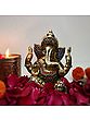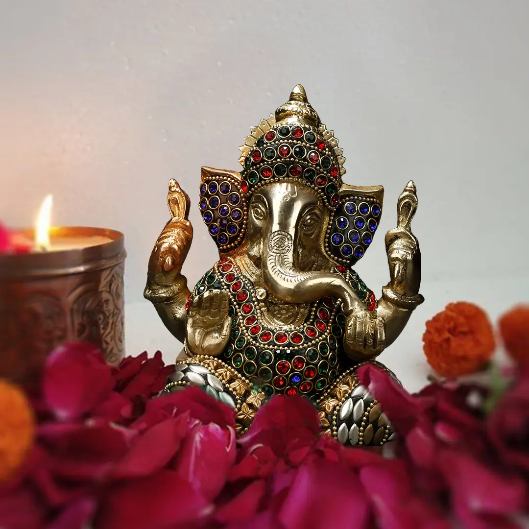His loincloth is gilded in amber gold and copper which displays the elegance of his mien. The paisley motif augments the beauty of the crowned inlay Ganesha.