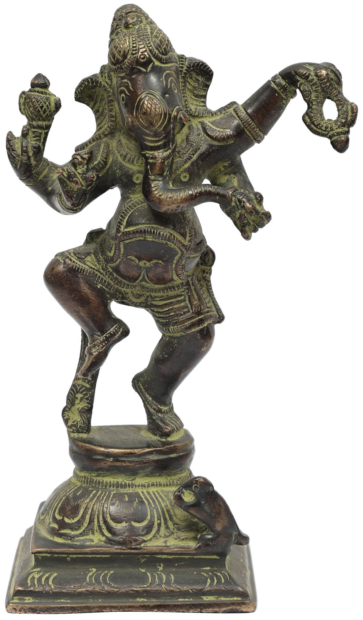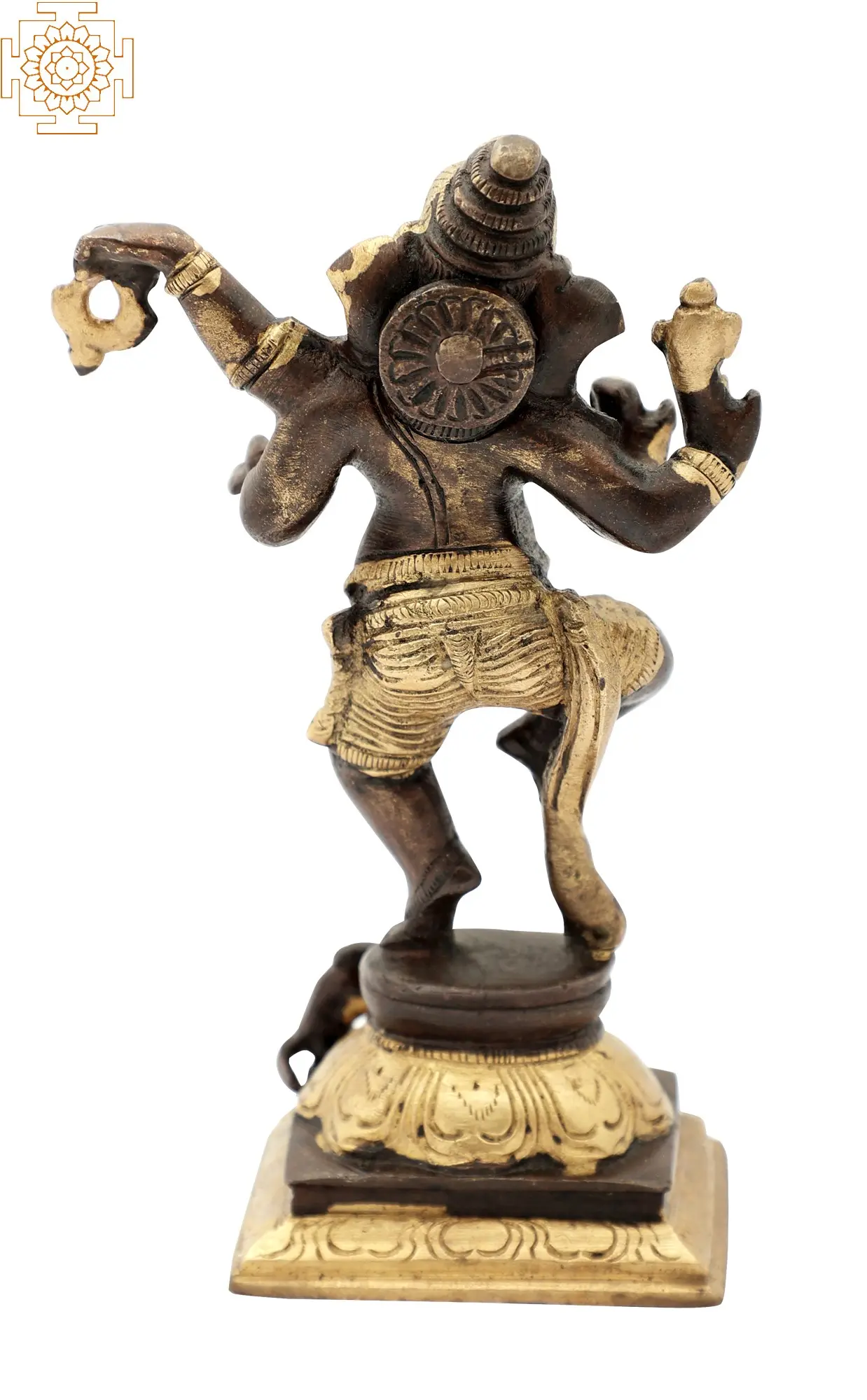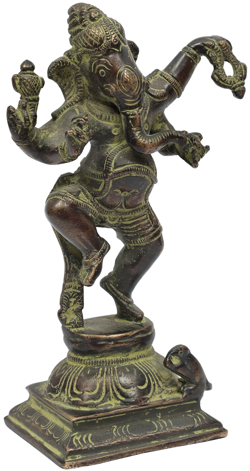 Witness Lord Ganesha in his resplendent dance as Nritya Ganapati, a joyful celebration of life's rhythms. With each graceful step, he reminds us that the dance of existence is a harmonious melody, where obstacles are transformed into opportunities for joy. His dance reflects the creative spirit within us all, inviting us to express ourselves freely and embrace the beauty of life's diverse experiences.
