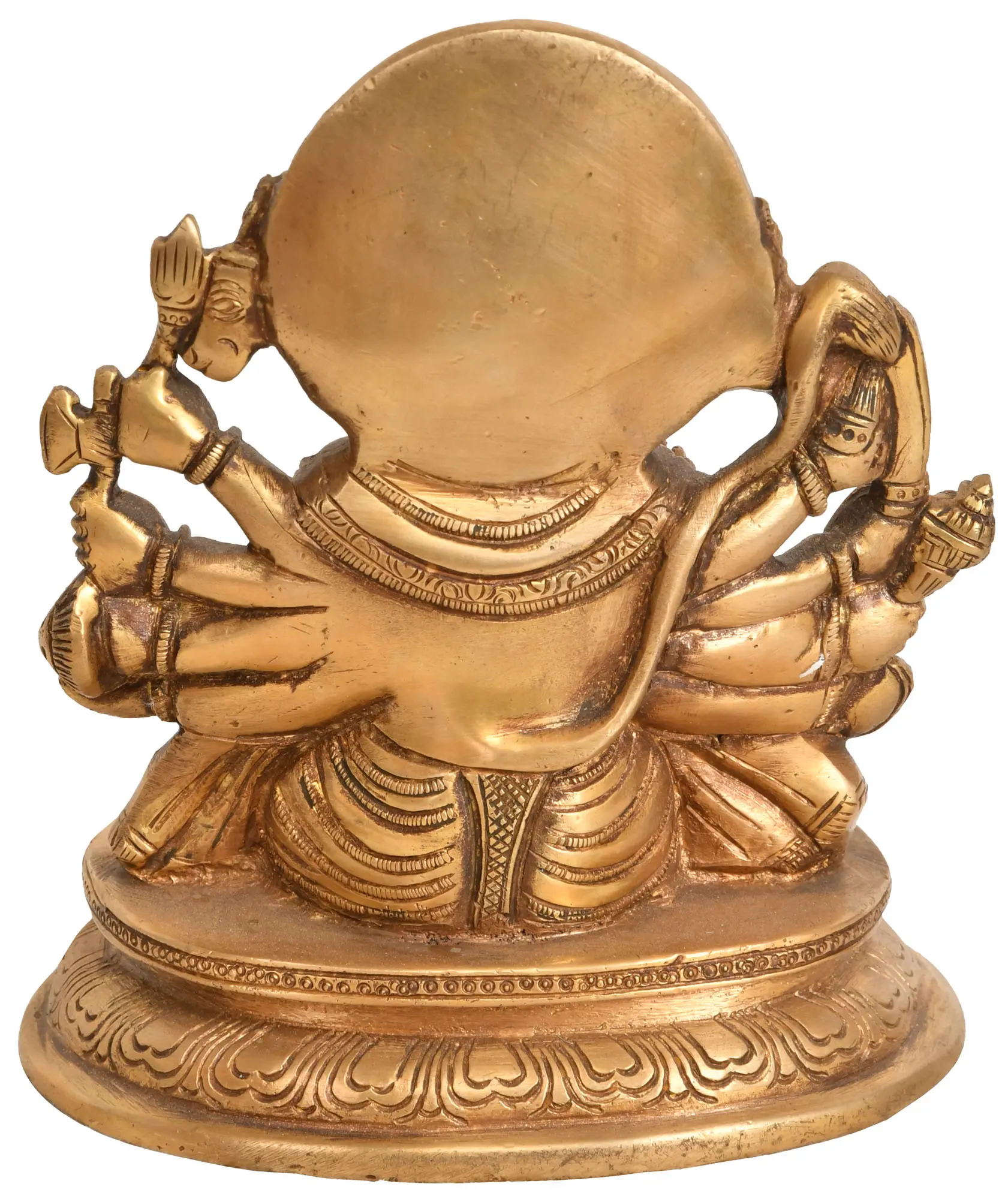 This unique representation of Hanuman is known as Panchamukhi Hanuman or Panchamukha Anjaneya. It features five heads, each depicting a deity associated with Vishnu - Hanuman, Narasimha, Varaha, Garuda, and Hayagriva. This iconography, originating in the Tantra tradition around the 15th century CE, is not mainstream in Hinduism. In a notable narrative, Hanuman rescues Rama and Lakshmana from Ahiravana's captivity in Patala, the netherworld. Hanuman defeats Ahiravana by extinguishing five lamps simultaneously with his five faces, showcasing his divine prowess and multi-faceted nature.