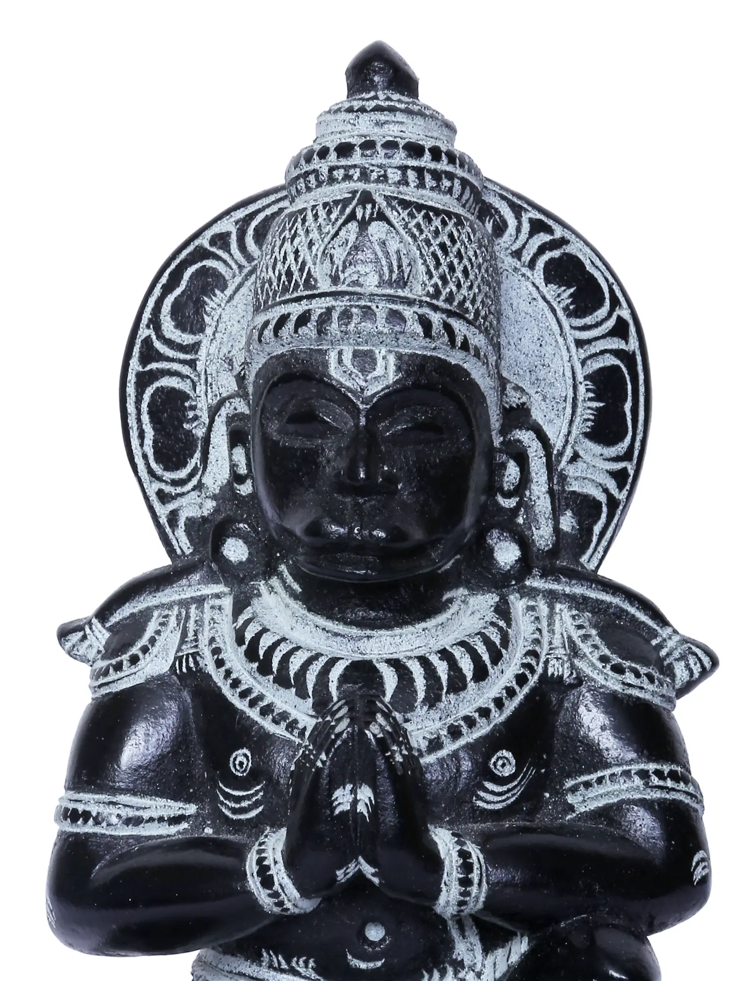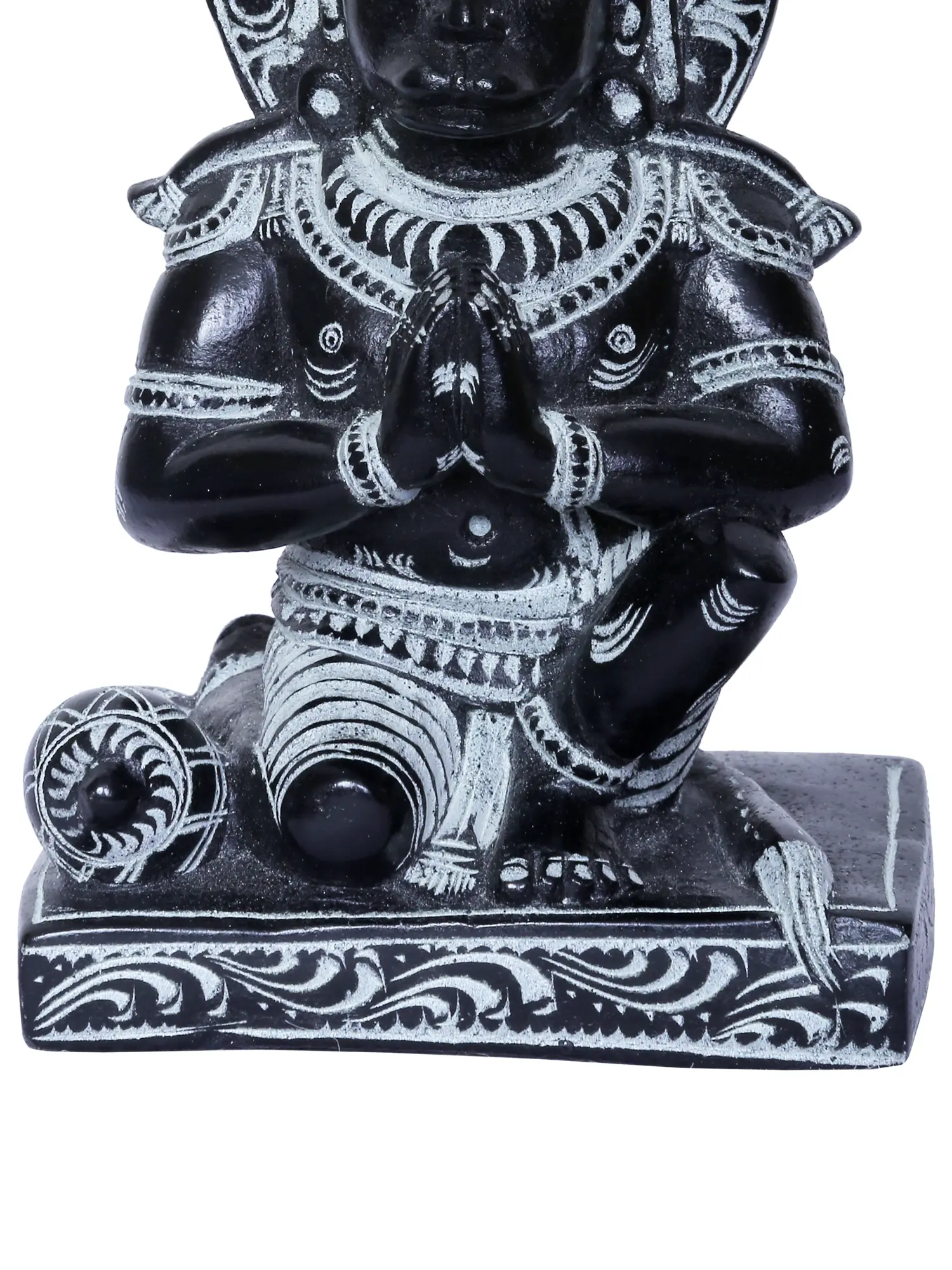This exquisite stone statue captures the divine essence of Hanuman Ji in a posture of profound reverence and humility. With his hands joined in the Namaskara Mudra, he embodies the ultimate devotion and surrender, a quality that defines his legendary role in the epic Ramayana. Hanuman, the devoted disciple of Lord Rama, is a symbol of courage, strength, loyalty, and selfless service. His presence is said to ward off negative energies and bestow blessings of courage and wisdom upon those who seek his grace.