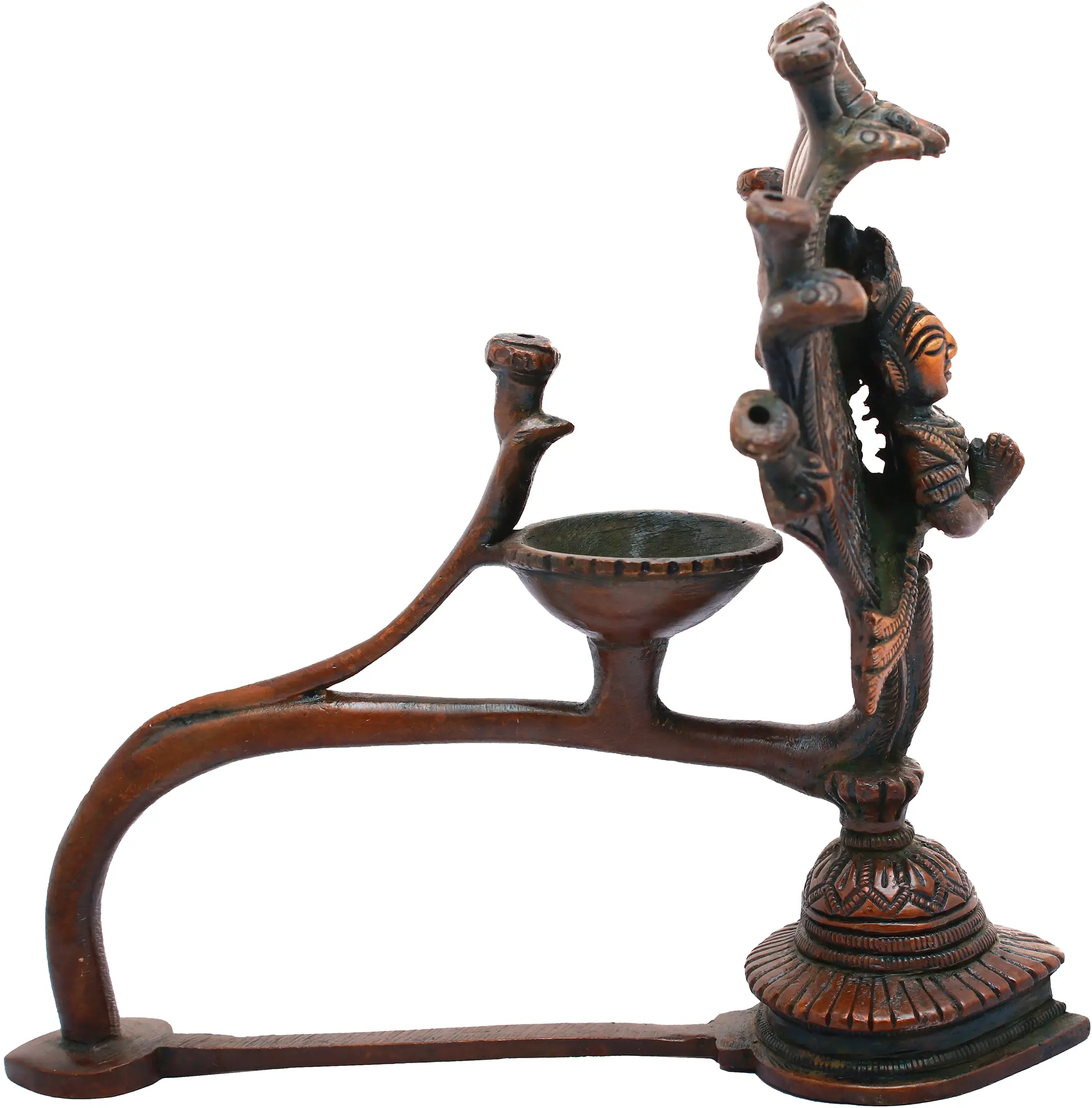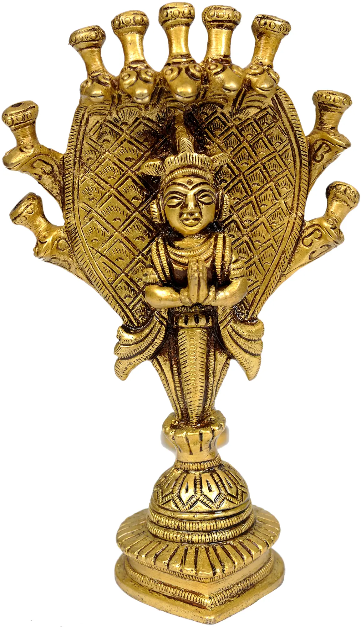 With the grace of a serpent's coiled form, the incense burner provides a sanctuary for ten fragrant sticks. Just as Patanjali's teachings guide seekers through the intricate layers of consciousness, each stick releases its aromatic essence, filling the air with an ambience of tranquillity and introspection. The serpent's hoods, elevated and vigilant, mirror the higher states of awareness attained through dedicated practice. As the fragrant tendrils of incense rise, they echo the ascent of the soul toward enlightenment, weaving a bridge between the material and the spiritual. The figure of Patanjali, the ancient sage and compiler of the Yoga Sutras, rests beside the serpent, symbolising the union of wisdom and serenity. His presence serves as a reminder of the path toward self-realisation and the harmony that can be achieved through the exploration of mind, body, and spirit.
