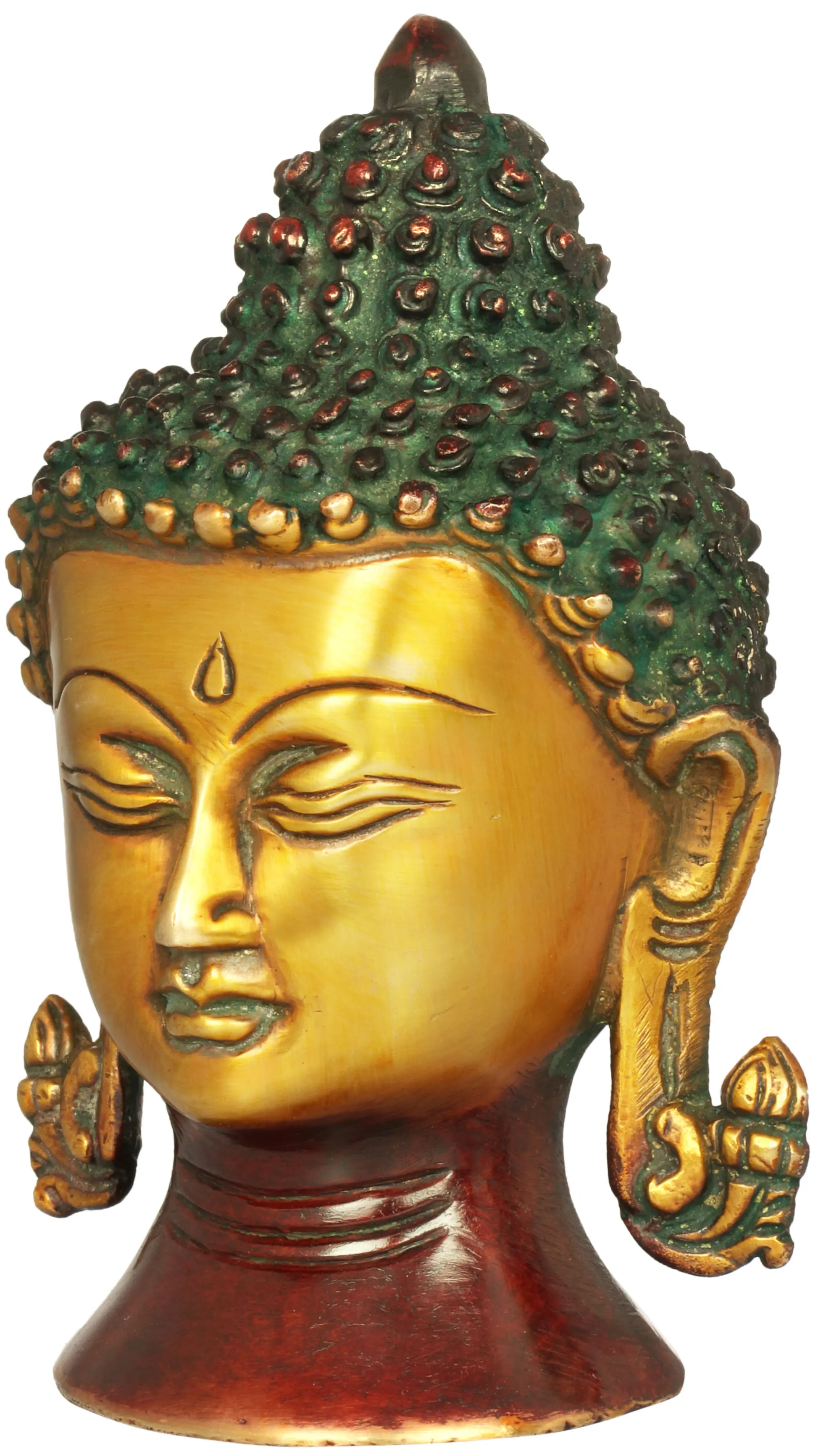 5" Lord Buddha Head - Tibetan Buddhist Brass Idol | Handmade | Made in India