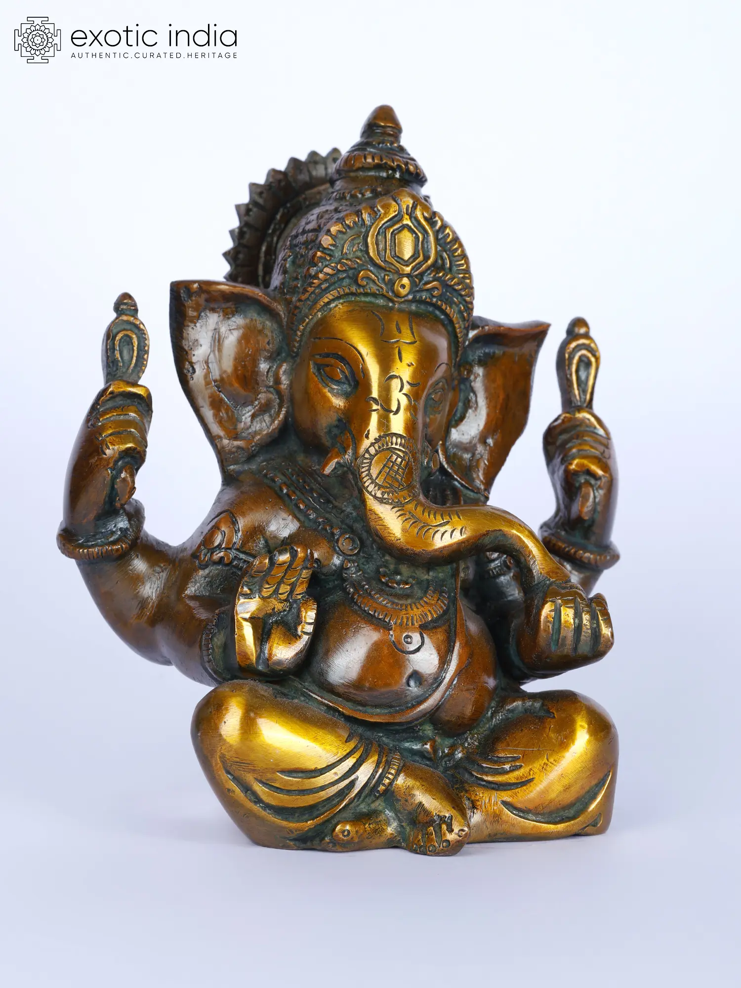 5" Lord Ganesha in Ashirwad Mudra in Brass | Handmade | Made In India