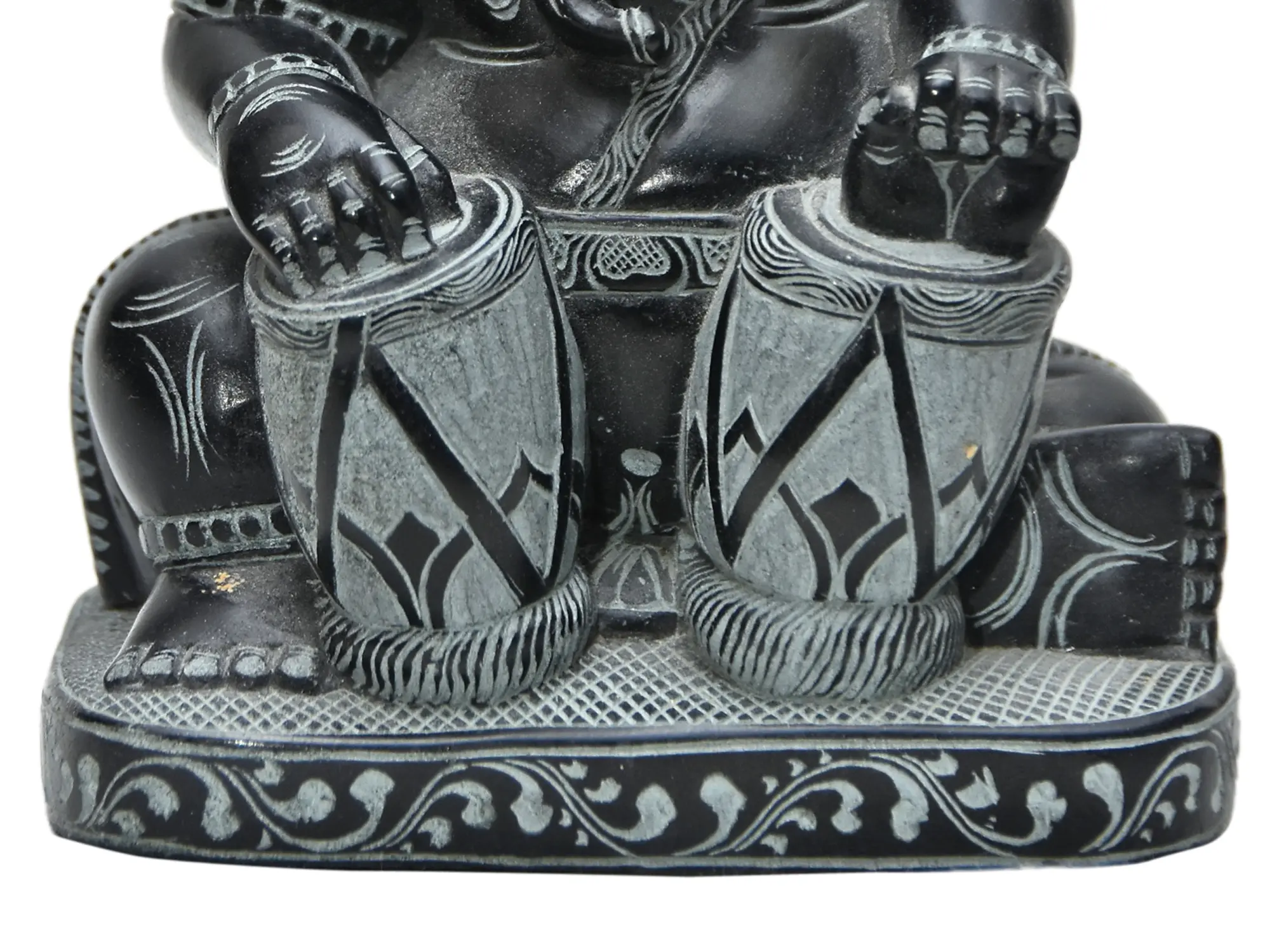 13" Dancing Ganesha While Playing Drum | Orissa Stone Statue | Hand Carved