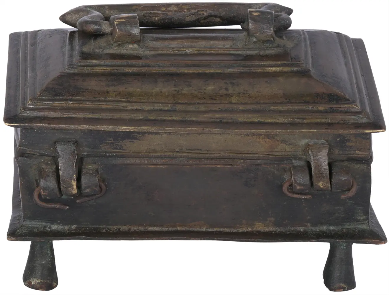 This box is a testament to the enduring artistry of Indian metalwork. Each curve and detail has been shaped by skilled hands, imbuing it with a unique character that mass-produced items simply cannot replicate. The rich patina of the brass speaks of time, its subtle variations adding depth and authenticity to its appearance. Imagine it gracing a mantelpiece, a study desk, or a spiritual altar, its presence adding an air of gravitas and refined elegance. In India, brass has long been revered for its purity and auspicious qualities, often used in religious ceremonies and for crafting sacred objects. This box carries that inherent reverence, a functional piece of art that connects you to generations of skilled artisans.