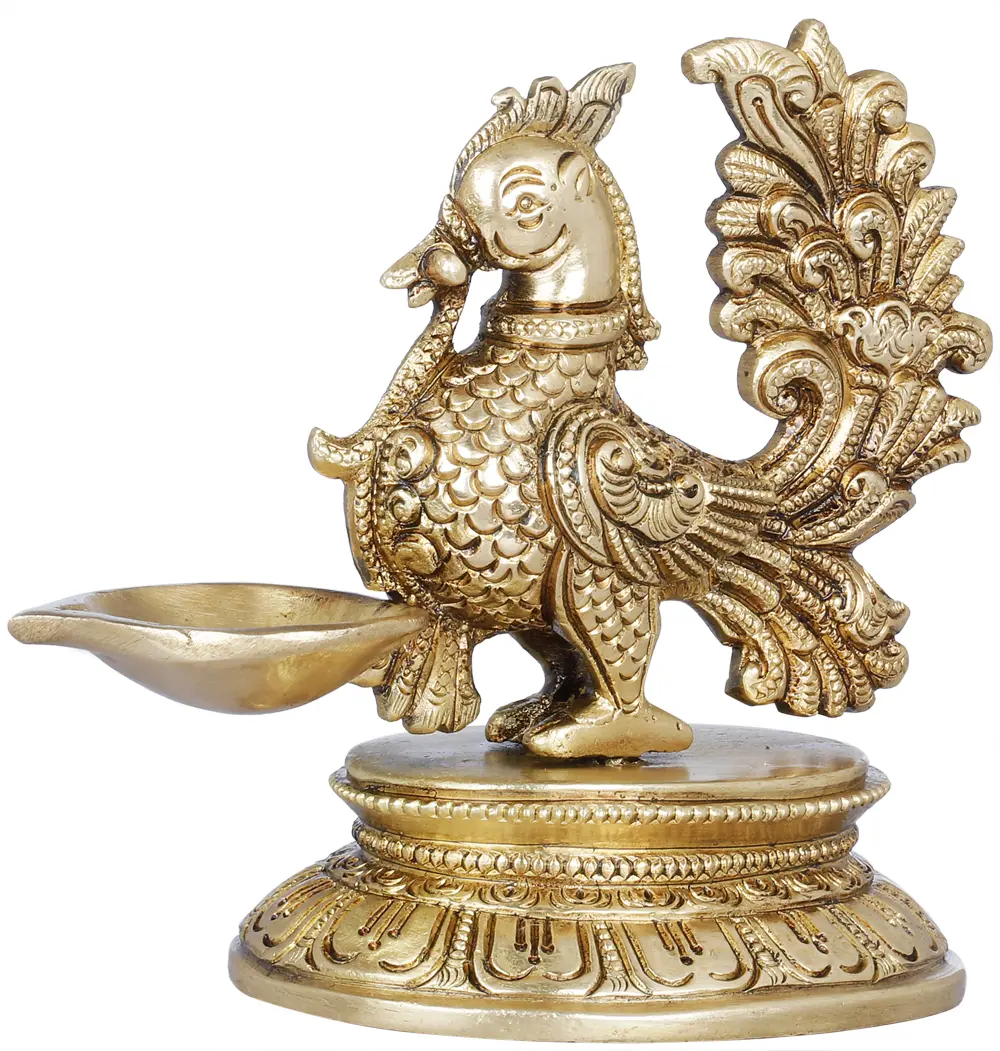 Radiate your space with the grace and elegance of our Peacock Lamp. Cast in India, this brass lamp features intricate peacock motifs, symbolising beauty and spirituality. Lighting the lamp signifies the dispelling of darkness and the awakening of inner light. The peacock adds an element of artistry and charm to your puja rituals. As you kindle the flame in this beautiful lamp, let it fill your space with the divine aura of beauty and radiance.
