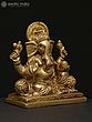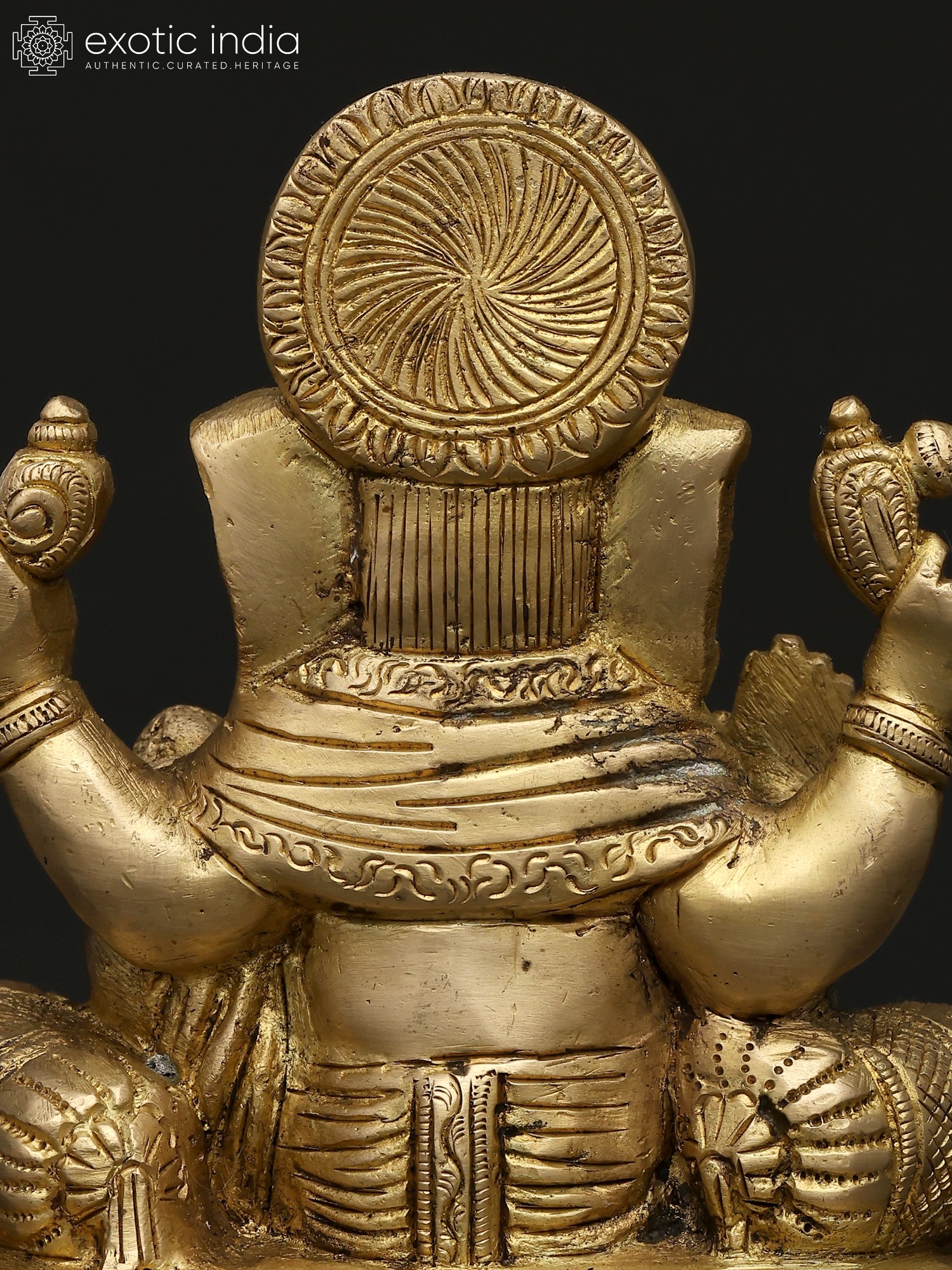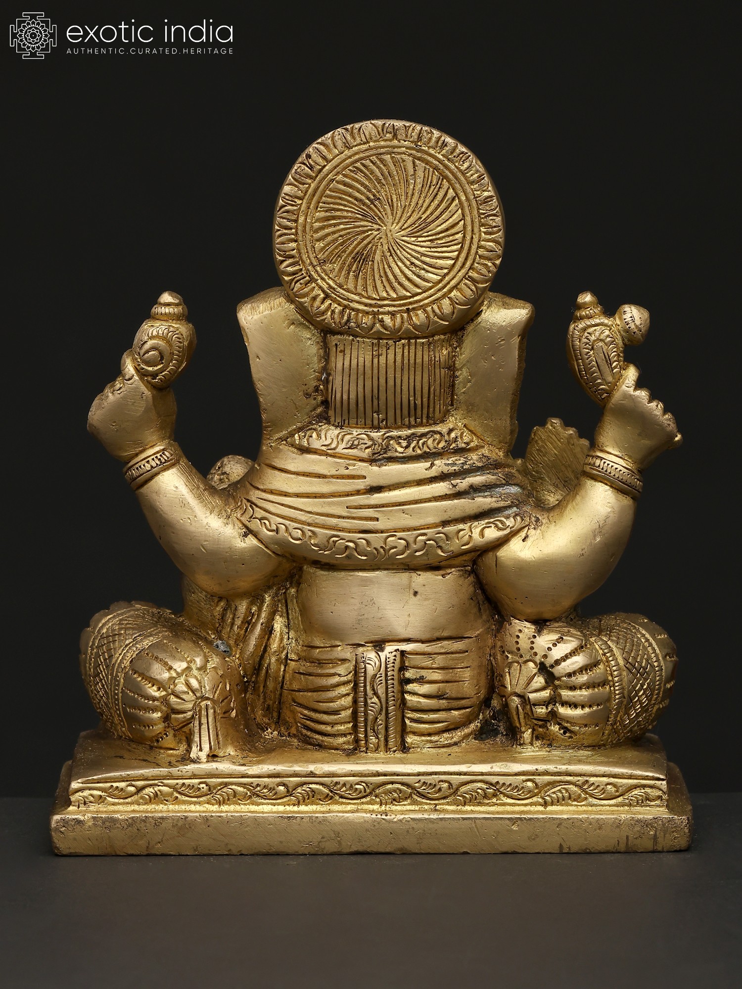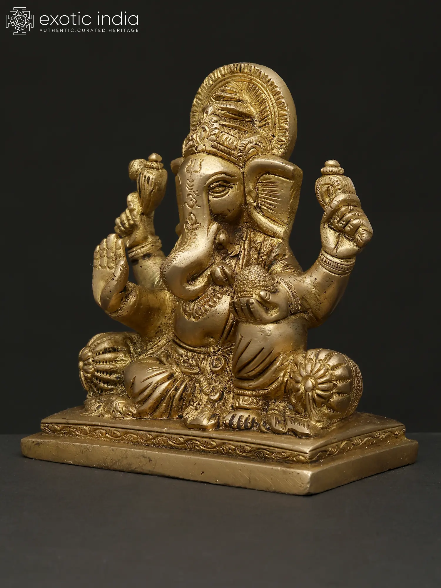 22" Sitting Chaturbhuja Lord Ganesha in Blessing Gesture | Brass Statue with Inlay Work