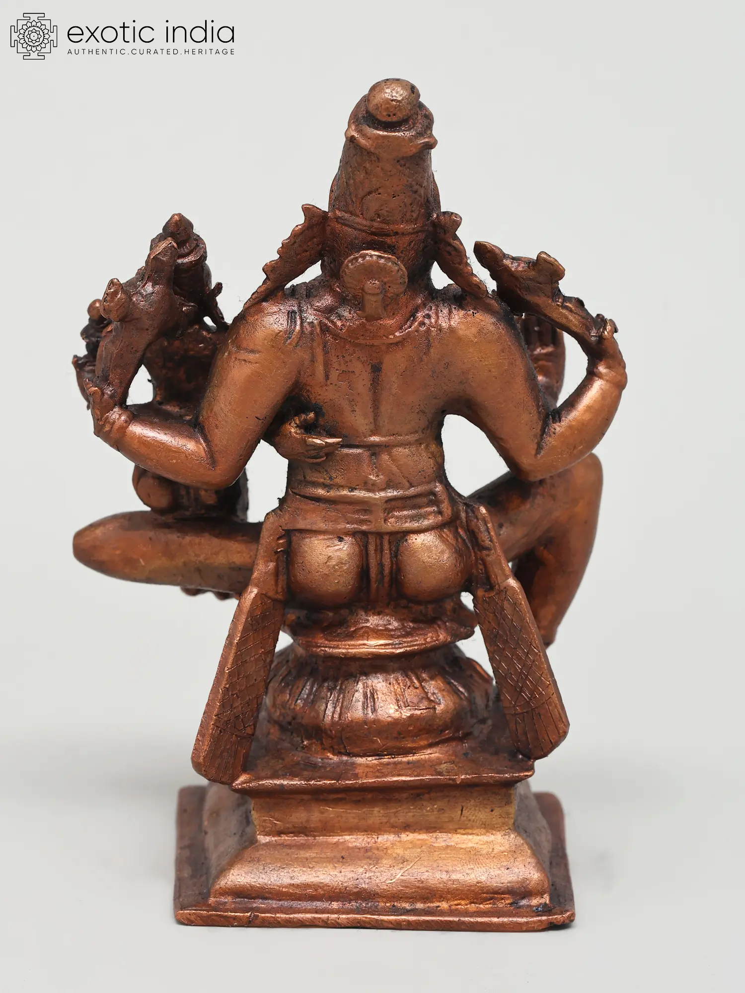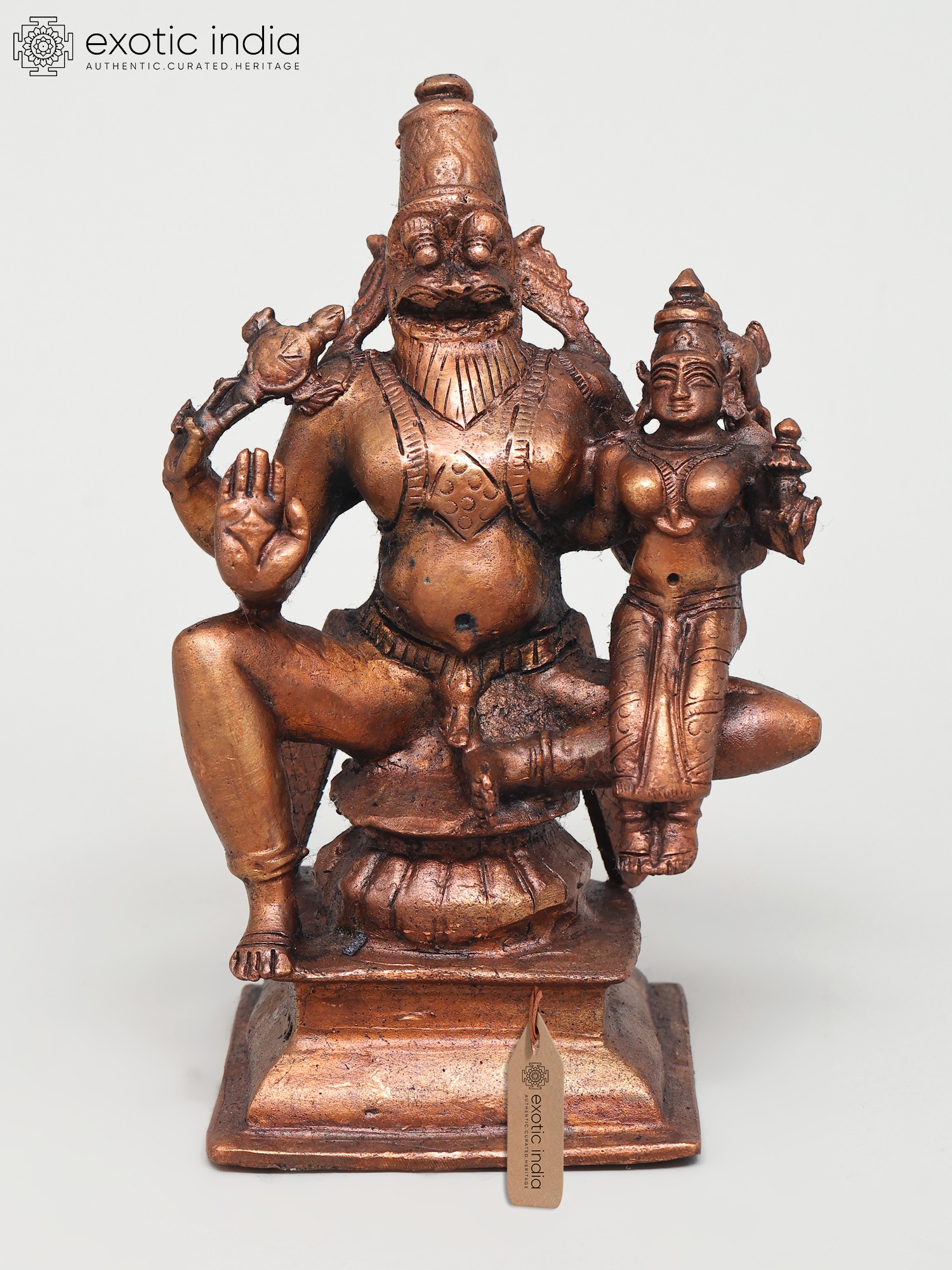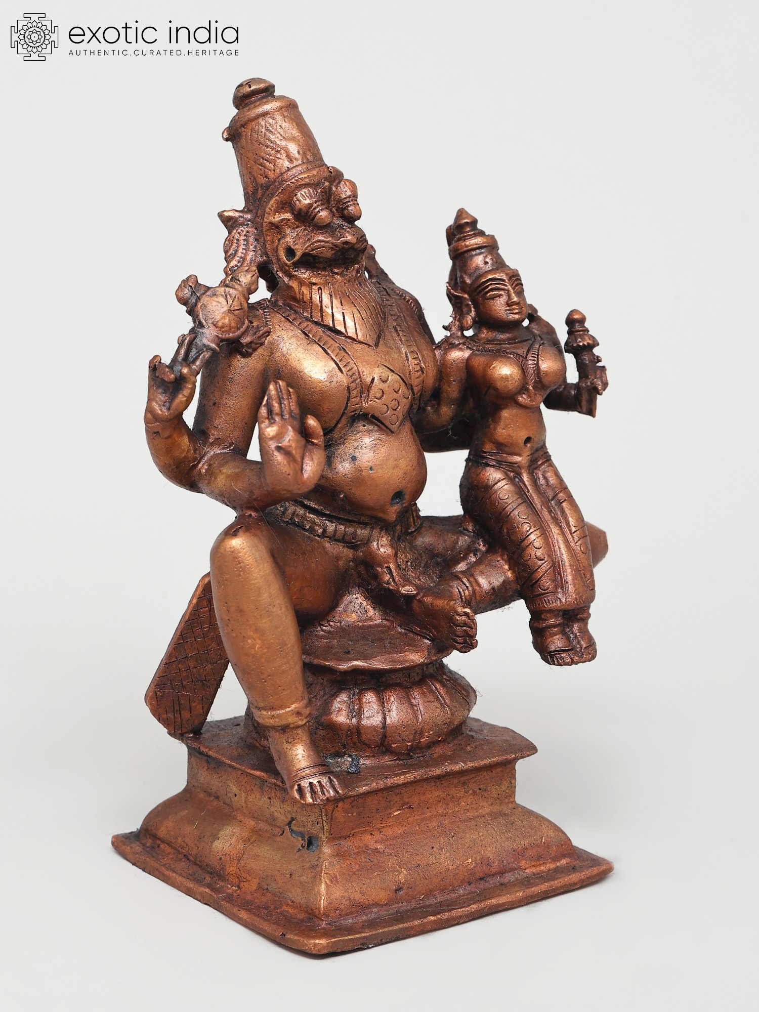 4" Small Lord Narasimha Seated with Devi Lakshmi | Copper Statue