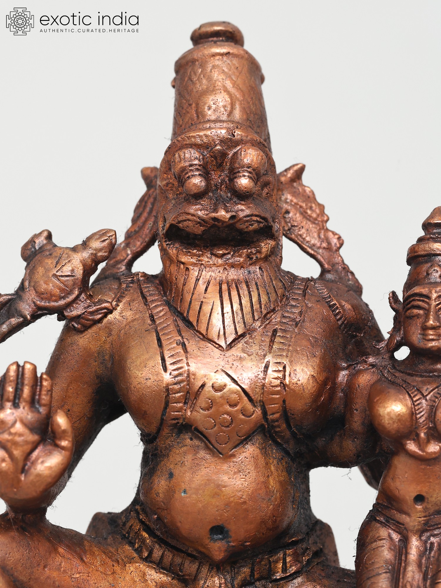 6" Small Standing Lord Narasimha with Goddess Lakshmi | Copper Statue