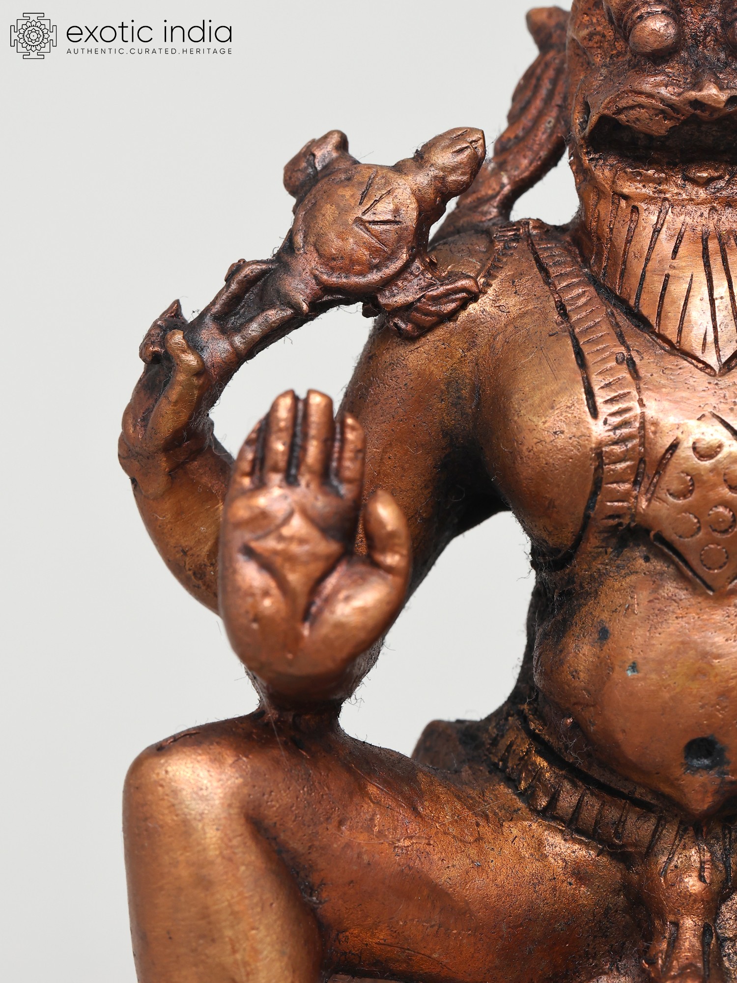5" Small Copper Idol of Lord Narasimha Killing Demon Hiranyakashipu