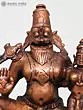 6" Small Eighteen Armed Lord Narasimha Killing Hiranyakashipu | Copper Statue