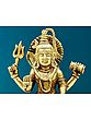 There is a glorious sunburst at the back of his head emitting divinely rays. He has beautiful textured matted hair (jata), tied like a multilayered temple top from where the sacred river Ganga flows. This river is a purifying agent and Lord Shiva, who is its abode is the personification of purity. This idol has four hands, where right hand is in a posture of blessing the worshippers and left hand is holding a kamandalu, in which sacred water is kept, used for purification, while the other two hands are holding a trishul (trident) and a small drum (damru) respectively. Trishul is a weapon used to punish the evil doers on all spiritual, subtle and physical planes. The damru when shakes, makes the evil shake and the wise awake. It produces a sound that denotes Nada, the cosmic sound of Om that can be heard during meditation. He has a crescent moon on his hair in the right side representing continuous change of time due to waning and waxing of moon.