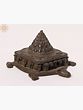 This exquisite brass representation of the Shri Yantra, a sacred geometric symbol of prosperity and well-being, is elevated by its grounding upon the back of a cosmic tortoise. In many cultures, the tortoise symbolizes longevity, stability, and the creation of the universe itself. According to Hindu mythology, the world rests upon the back of a giant tortoise named Akupara, who in turn is supported by a multitude of elephants, and beneath them all lies the cosmic ocean. This intricate sculpture captures that profound symbolism, suggesting a powerful foundation for abundance and good fortune. The Shri Yantra, also known as the Sri Chakra, is considered the mother of all Yantras. It is a diagram of the cosmic creation and the universe, composed of nine interlocking triangles representing the divine masculine and feminine energies. The central bindu, or dot, signifies the source of all creation. Meditating on or worshipping the Shri Yantra is believed to attract wealth, health, success, and spiritual growth. Its complex geometric patterns are said to resonate with the subtle energies of the universe, bringing harmony and balance to its surroundings. Crafted from durable brass, this piece is not only a powerful spiritual tool but also a beautiful decorative item. The rich, aged patina of the brass lends an air of antiquity and sacredness, making it a timeless addition to any home or sacred space. The detailed craftsmanship is evident in the precise rendering of the Yantra’s intricate lines and the sturdy, lifelike form of the tortoise. The Yantra itself features a layered, pyramidal structure, culminating in a point, symbolizing the ascent towards higher consciousness and the realization of one's desires. The tortoise, with its distinct head and eight limbs, appears ready to carry this powerful energetic diagram across the planes of existence. This sculpture is an ideal piece for altars, meditation rooms, or any area where one wishes to invite positive energy and attract prosperity. Its compact size makes it versatile for placement on desks, bookshelves, or side tables. Whether you are a seasoned practitioner of Vedic traditions or simply seeking to infuse your life with greater abundance and stability, this Shri Yantra on a tortoise back offers a potent and beautiful focal point for your intentions. It serves as a constant reminder of the interconnectedness of all things and the potential for limitless growth and well-being when grounded in a solid foundation.