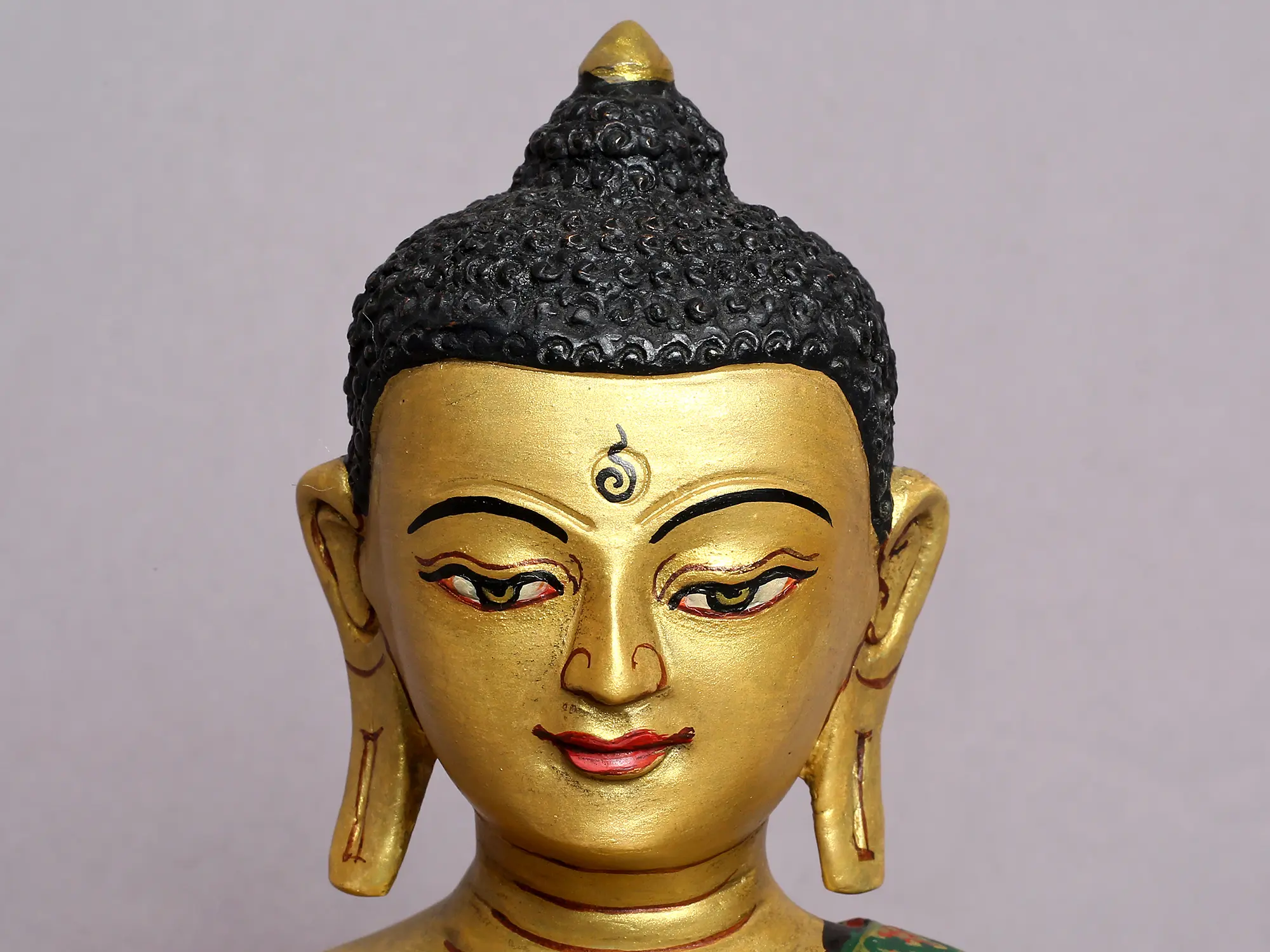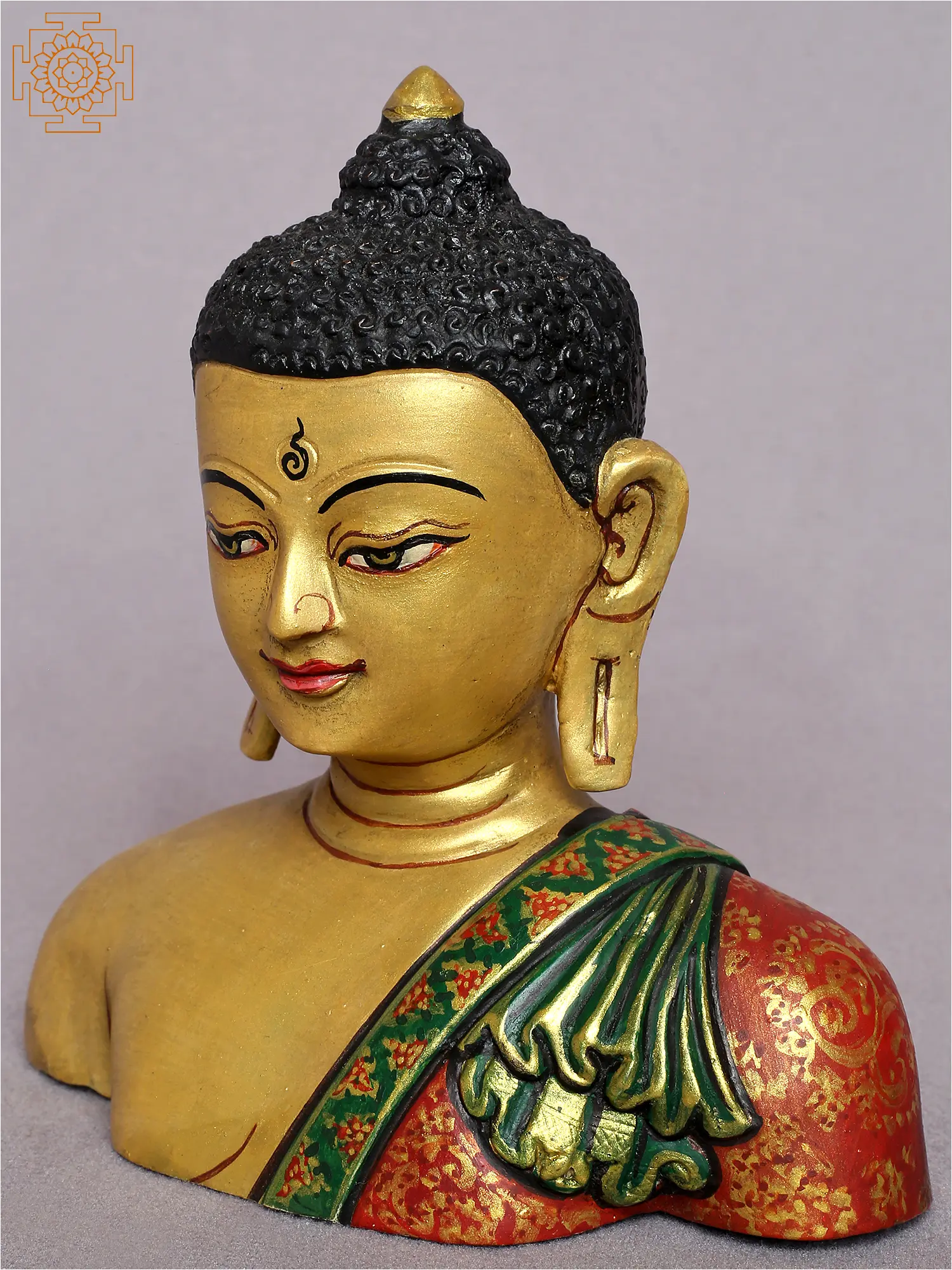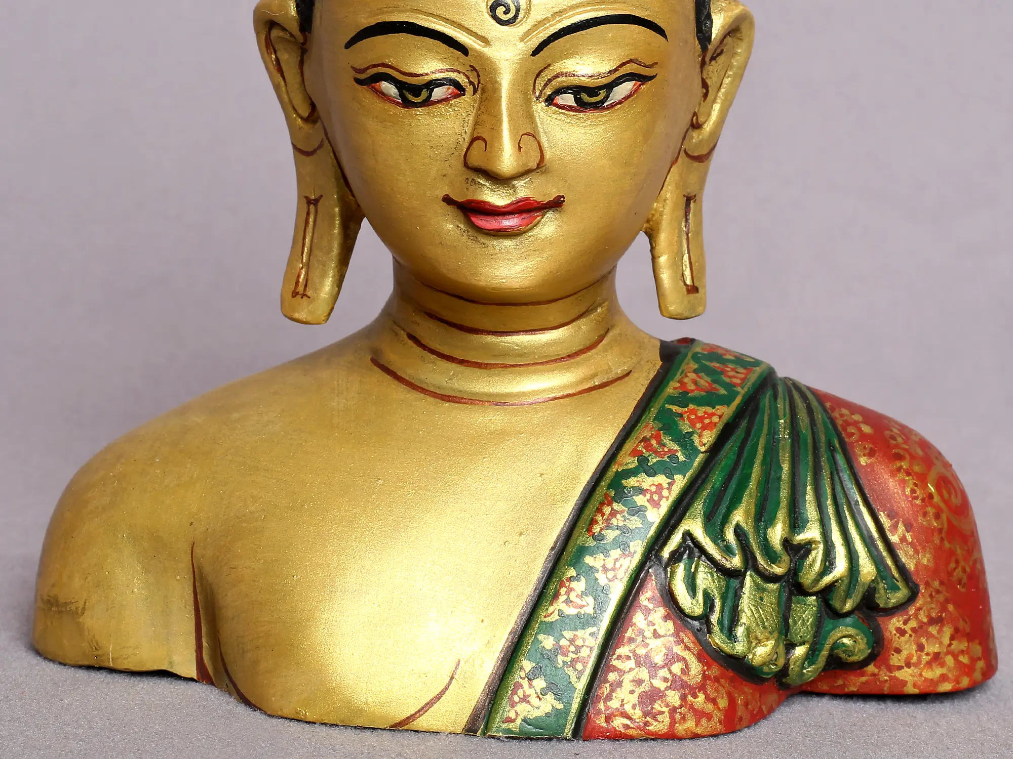 This Buddha Bust showcases the remarkable craftsmanship and detail that is characteristic of Nepalese art. Every curve, contour, and expression of the Buddha's face is intricately sculpted, conveying a sense of inner peace and spiritual truth. The smooth finish and subtle nuances of the sculpture evoke a sense of reverence and serenity, inviting beholders to connect with the profound teachings of the Buddha. Cast in high-quality copper, this Buddha Bust possesses a timeless allure; symbolizing the enduring wisdom and teachings of the Buddha.