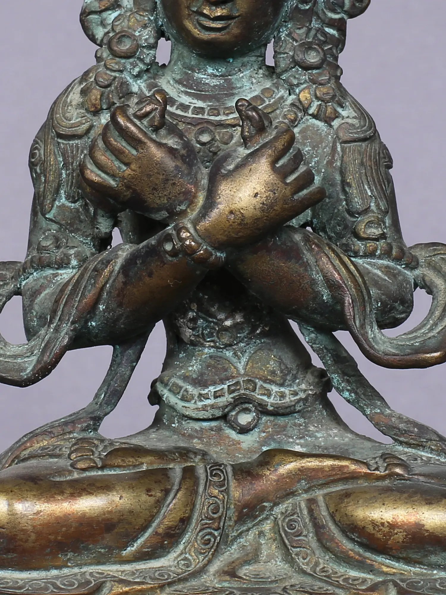 With a serene expression and a crown adorned with symbolic ornaments, he embodies the totality of existence and the boundless wisdom of the Buddha nature. As the primordial source of all Buddhas, Vajradhara illuminates the path to enlightenment, offering boundless inspiration and guidance to those who seek awakening. In his timeless presence, Vajradhara invites practitioners to realize their innate potential and awaken to the truth of existence.