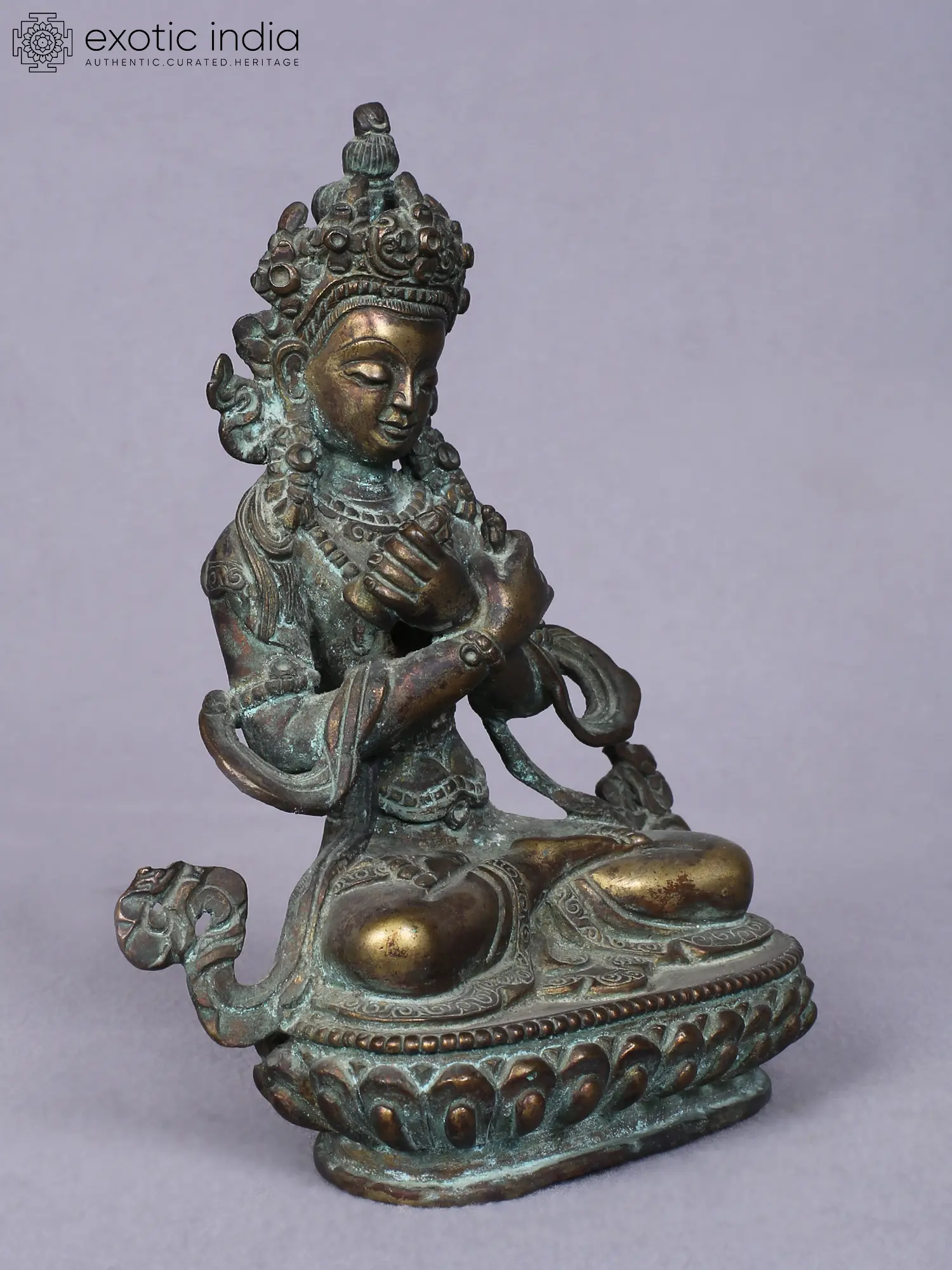 Vajradhara, the Primordial Buddha, embodies the ultimate reality and enlightened awareness in Tibetan Buddhism. Often depicted in union with his consort, Vajravarahi, he symbolizes the inseparability of wisdom (prajna) and compassion (karuna), transcending duality and revealing the essence of enlightenment. Adorned with sacred symbols such as the vajra and bell, Vajradhara represents the union of skillful means and wisdom, guiding practitioners on the path to liberation.