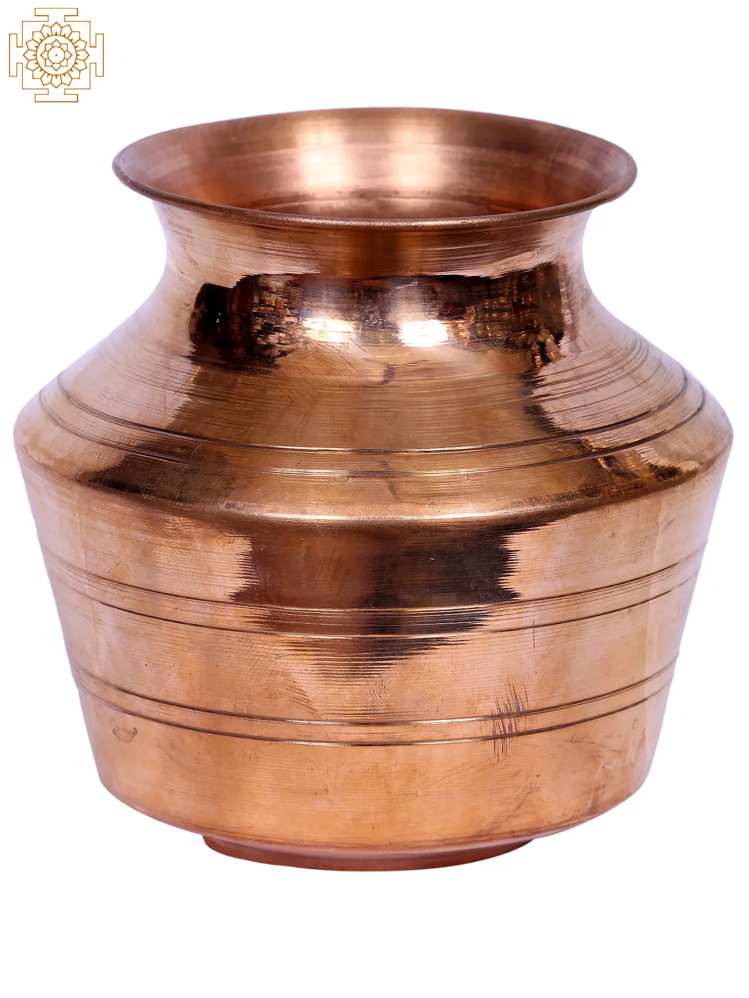 This pitcher made of copper is commonly known as a Kalash. It has a small mouth but a comparatively bigger body and a flat base. This Kalash has a very important role to play in Hindu rituals. It can be used for making the Purna Kalash which is constructed by filling the pitcher with water, drawing a Swastika on the body of the Kalash, then placing an Aam Pallav (five mango leaves) on the mouth of the Kalash and putting a Shri Phal or coconut on top of that. Some flowers and a red cloth or sacred thread are tied over the coconut placed on the top of the Kalash. This Kalash can also be used for keeping water that is essential for Pujas. The presence of copper as a material enriched the water with its good qualities and made the water perfectly fit for rituals.