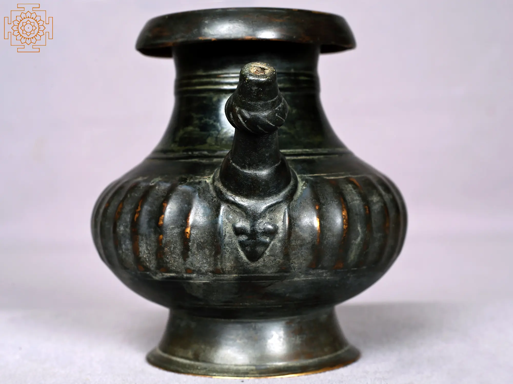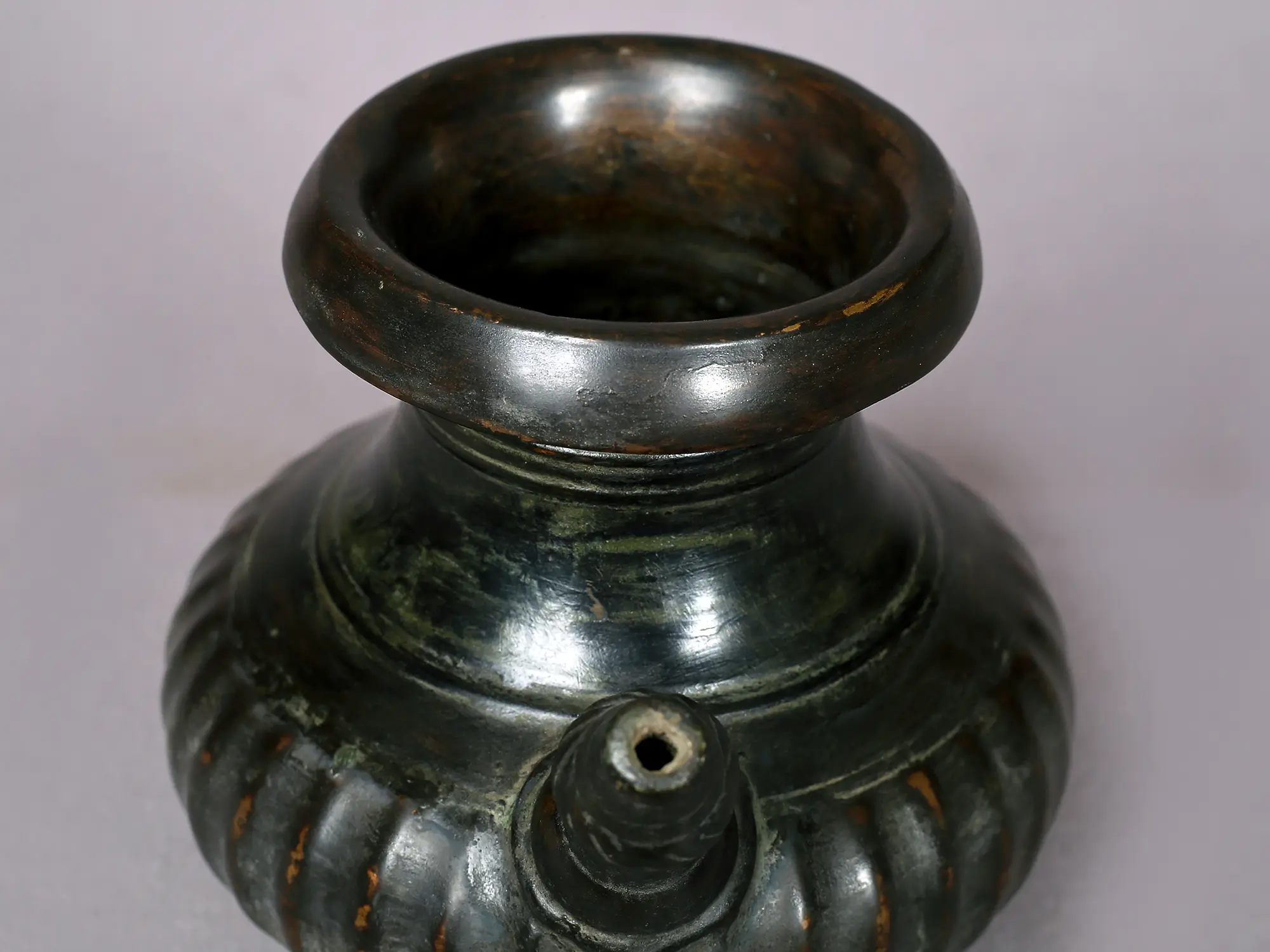 Cast in copper, this Karuwa is a traditional Nepalese and North Indian vessel, usually used for serving water, and beverages. In the shape of a pot with a little opening of a pipe - its stout shape almost makes it appear like a kettle. Karuwa is an important object for the ritualistic aspects of not just Nepalese weddings but also Karuwa Chauth observed by women across Nepal and India for their husbands.