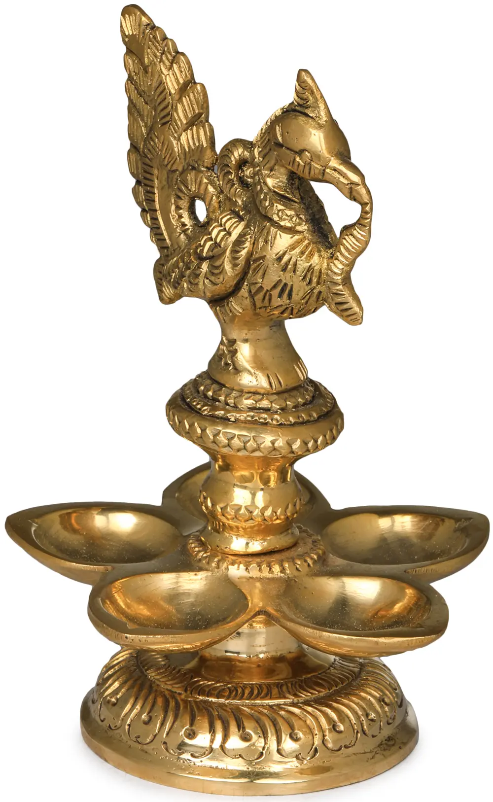 5" Small Five Wicks Peacock Lamp in Brass | Handmade | Made in India