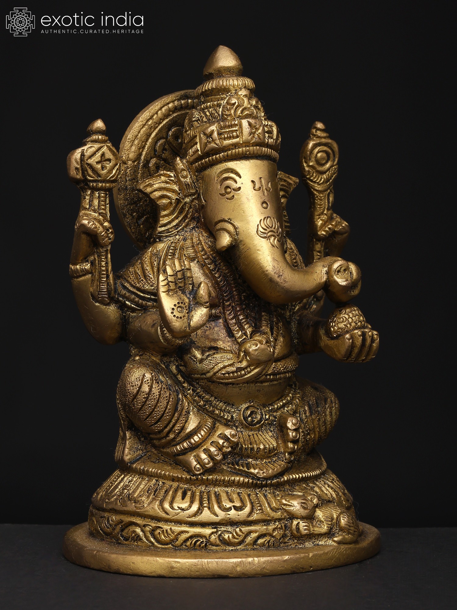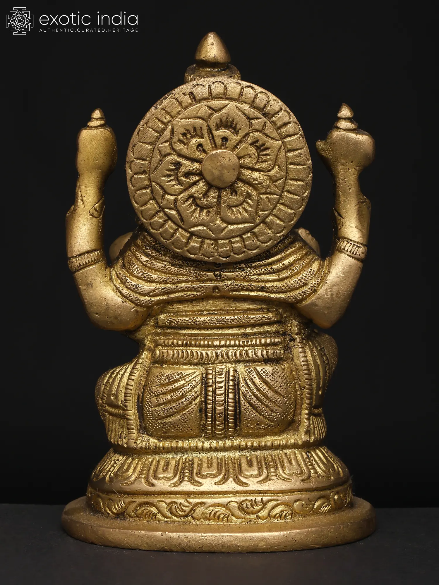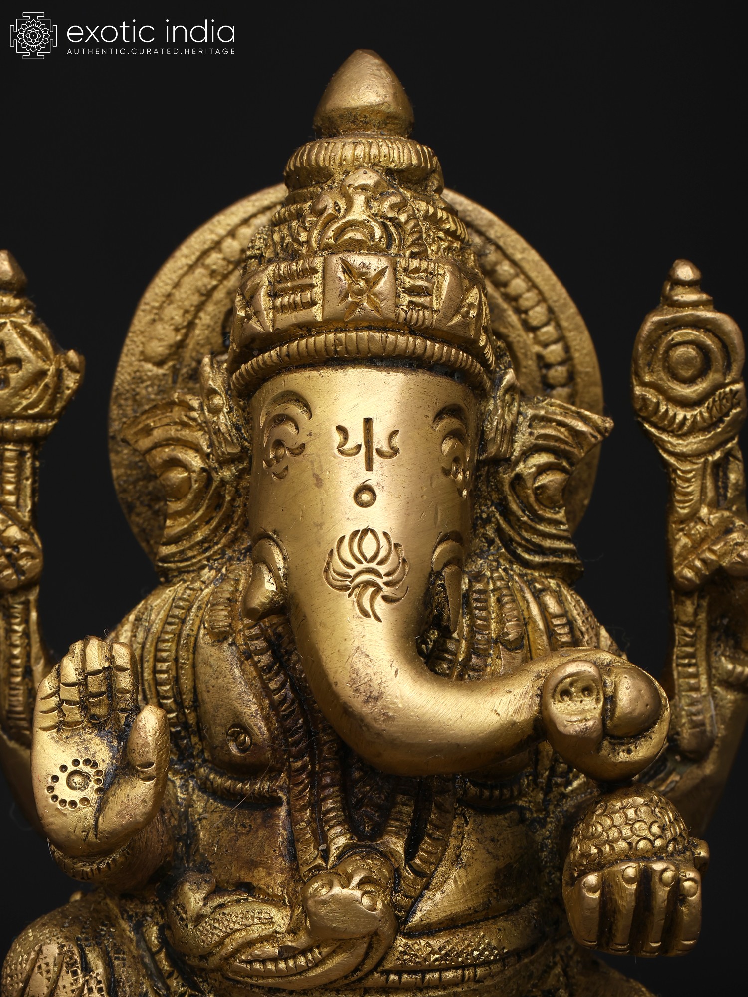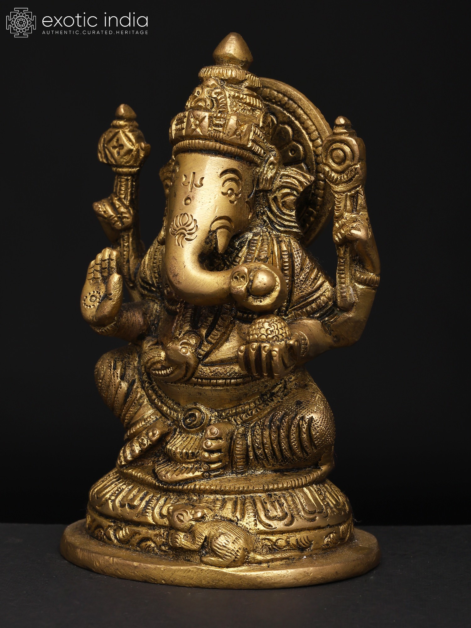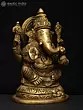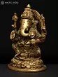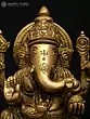 22" Sitting Chaturbhuja Lord Ganesha in Blessing Gesture | Brass Statue with Inlay Work