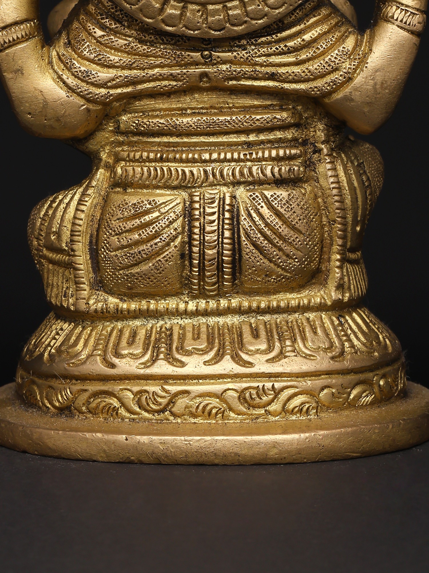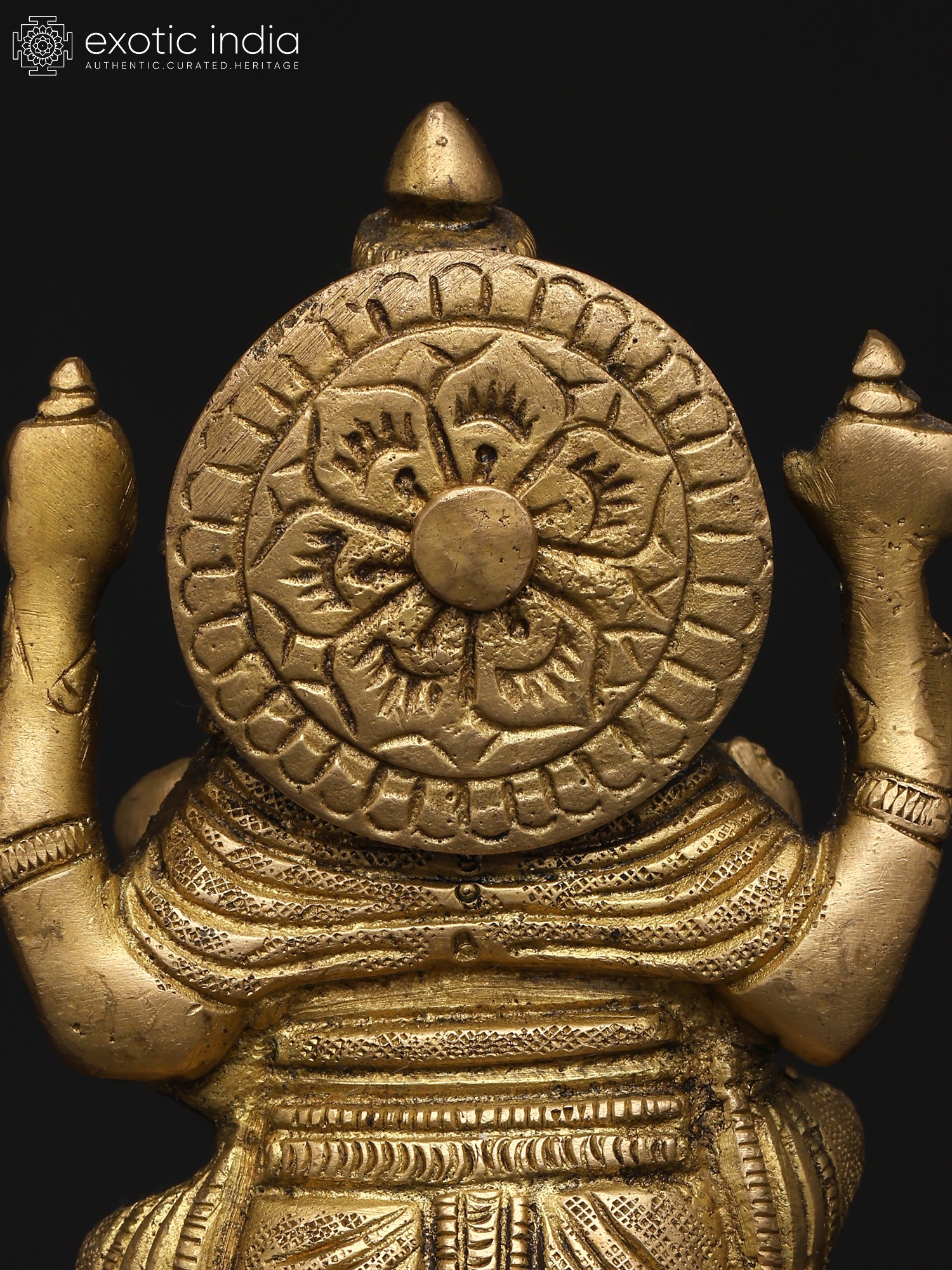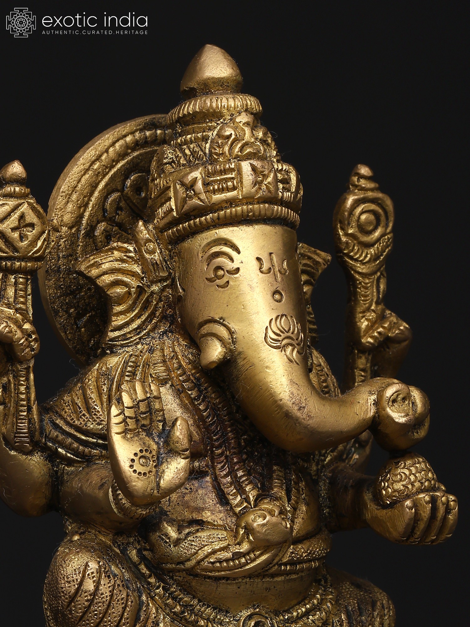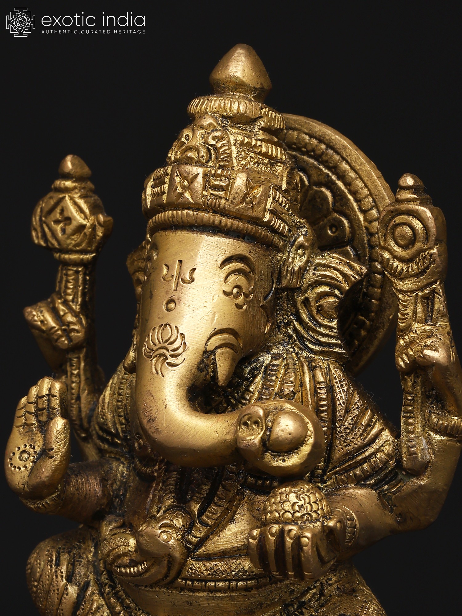 22" Sitting Chaturbhuja Lord Ganesha in Blessing Gesture | Brass Statue with Inlay Work