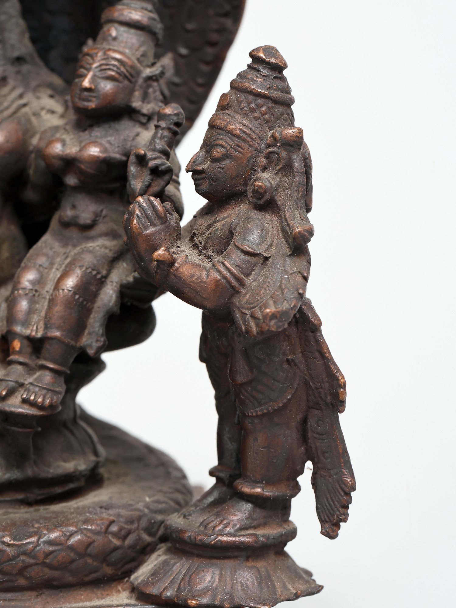 5" Small Lakshmi - Narasimha Seated on Garuda | Copper Statue