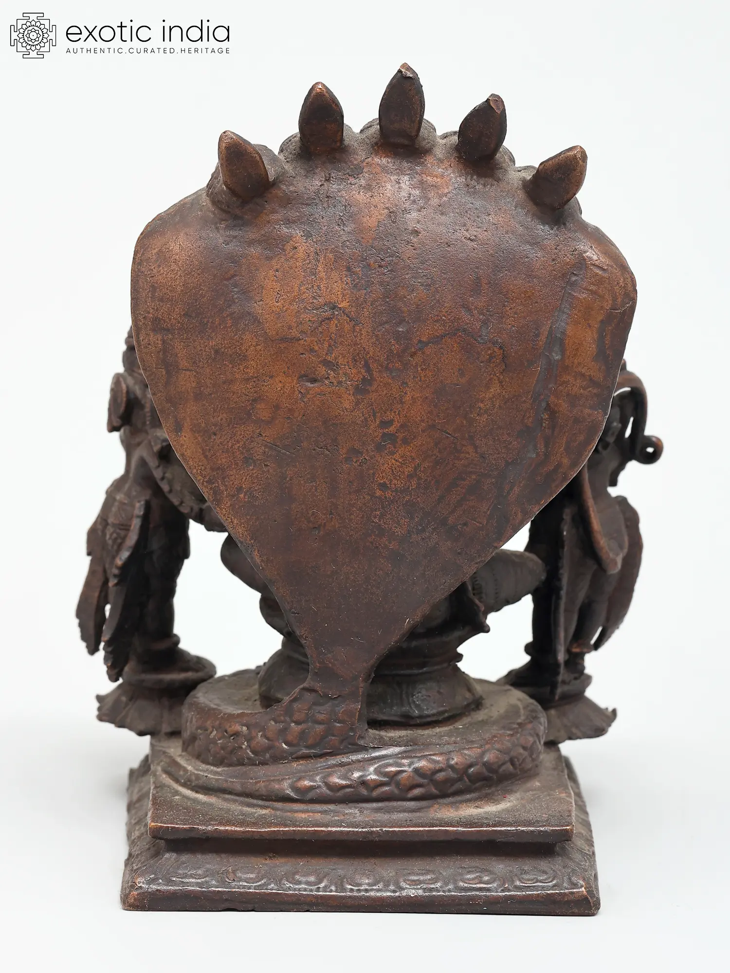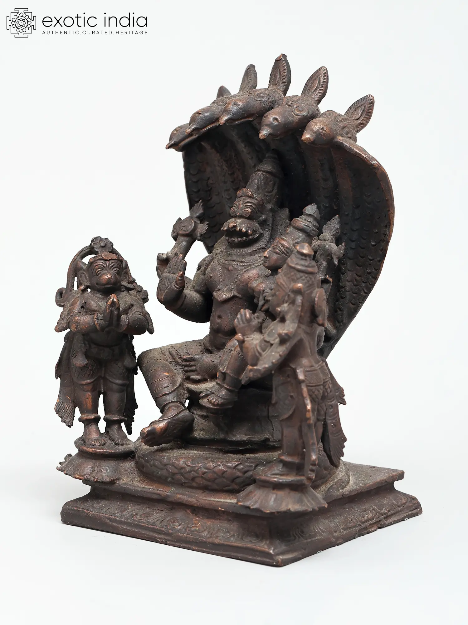 5" Small Lakshmi - Narasimha Seated on Sheshnag | Copper Statue