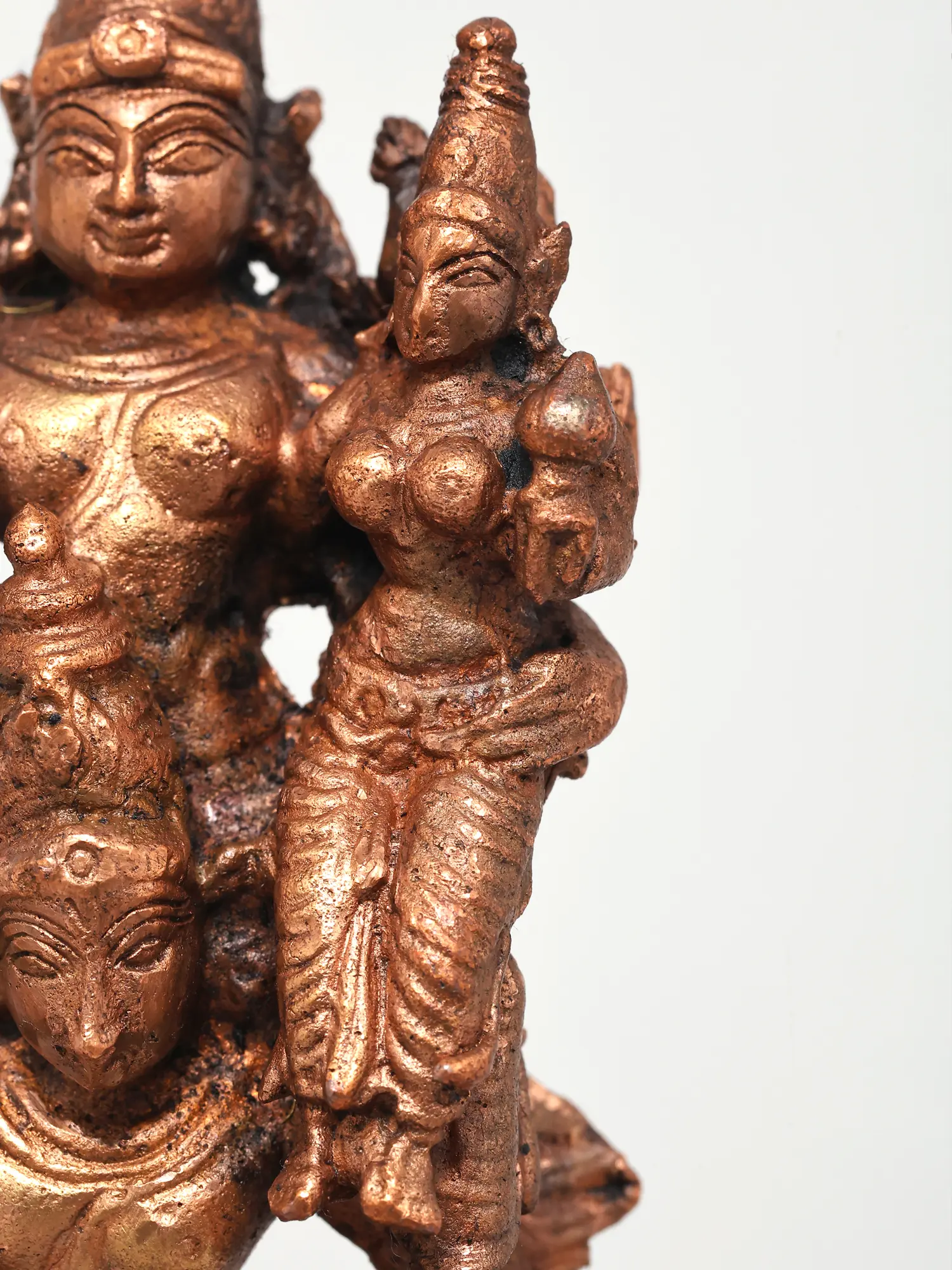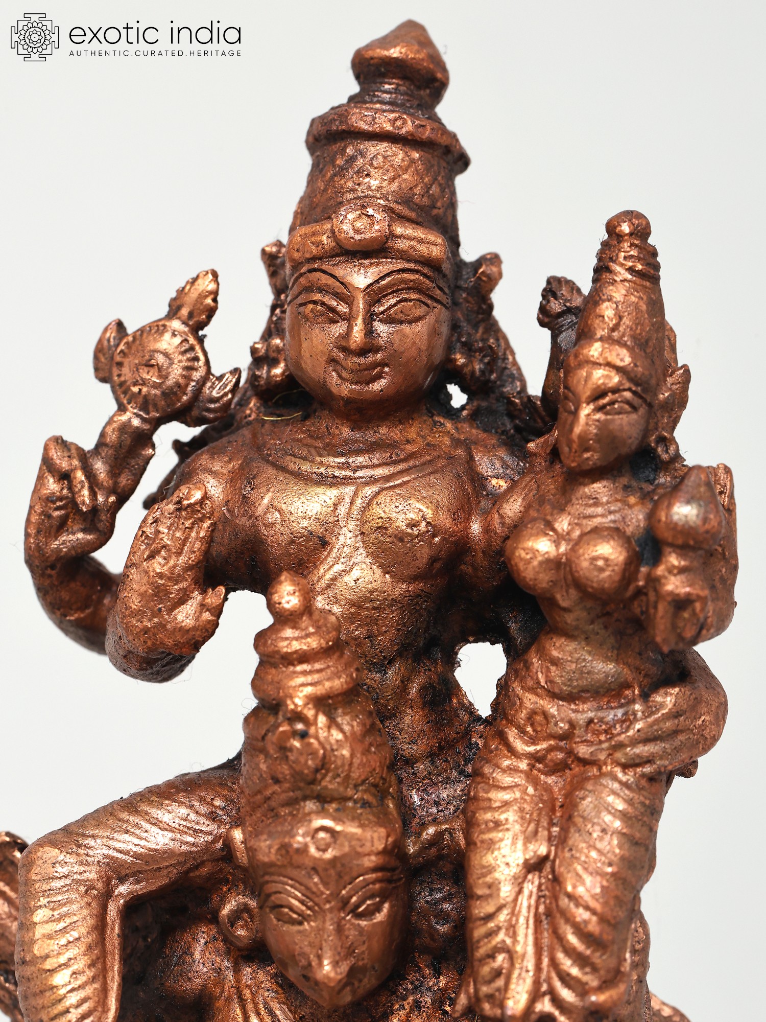 4" Small Lord Vishnu with Devi Lakshmi Seated on Kirtimukha Throne | Copper Statue
