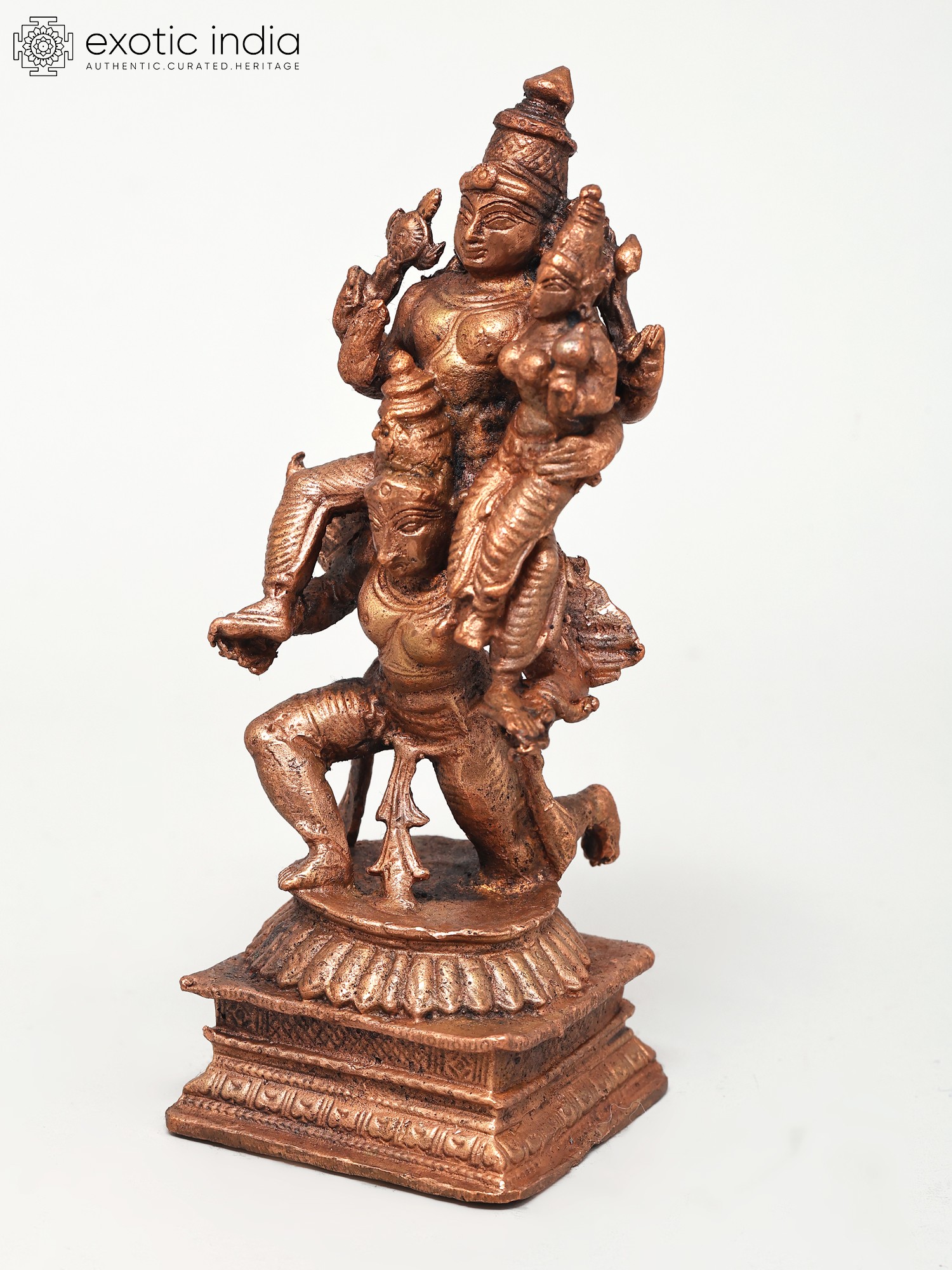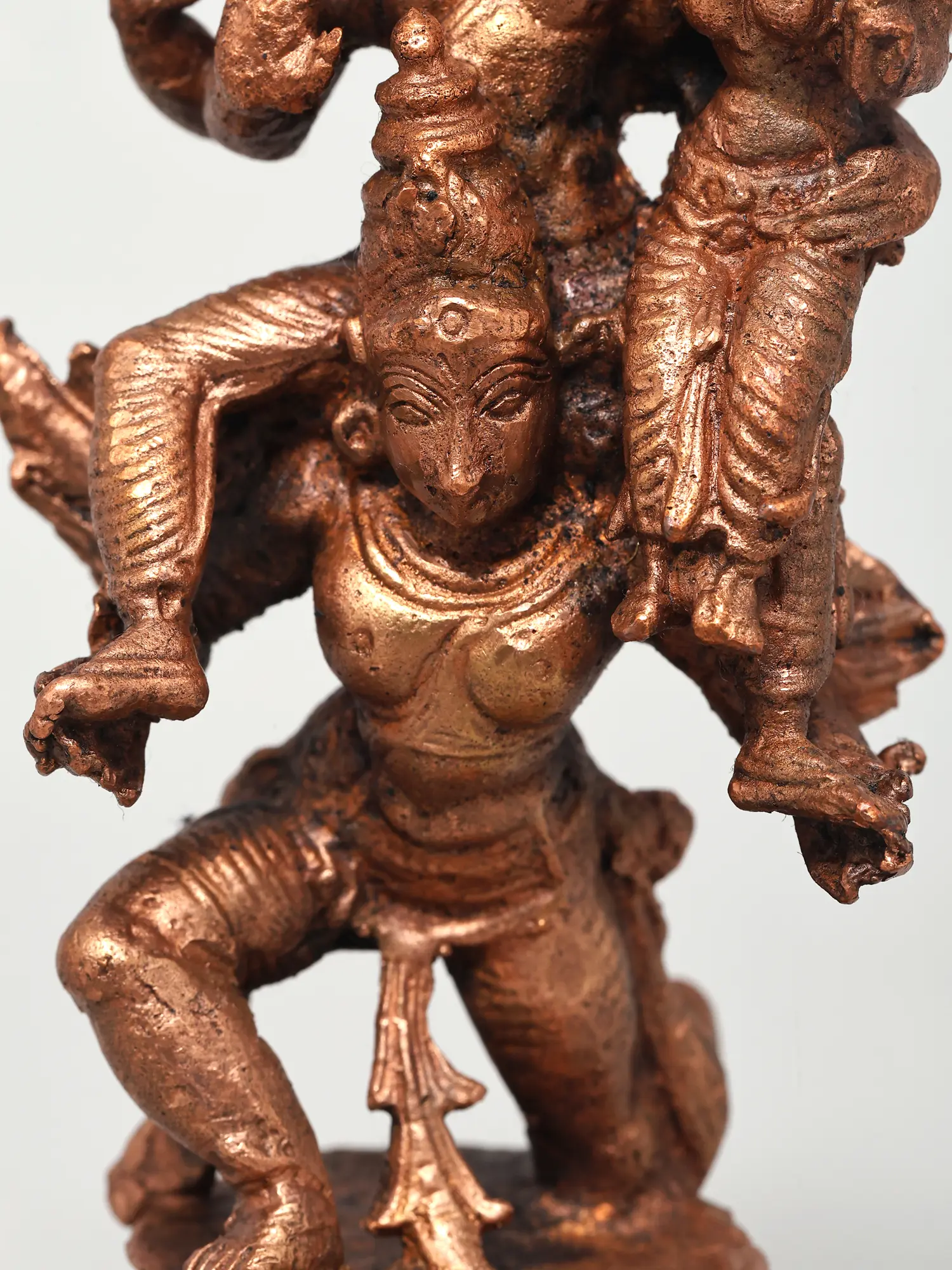 4" Small Lord Narasimha Seated with Devi Lakshmi | Copper Statue